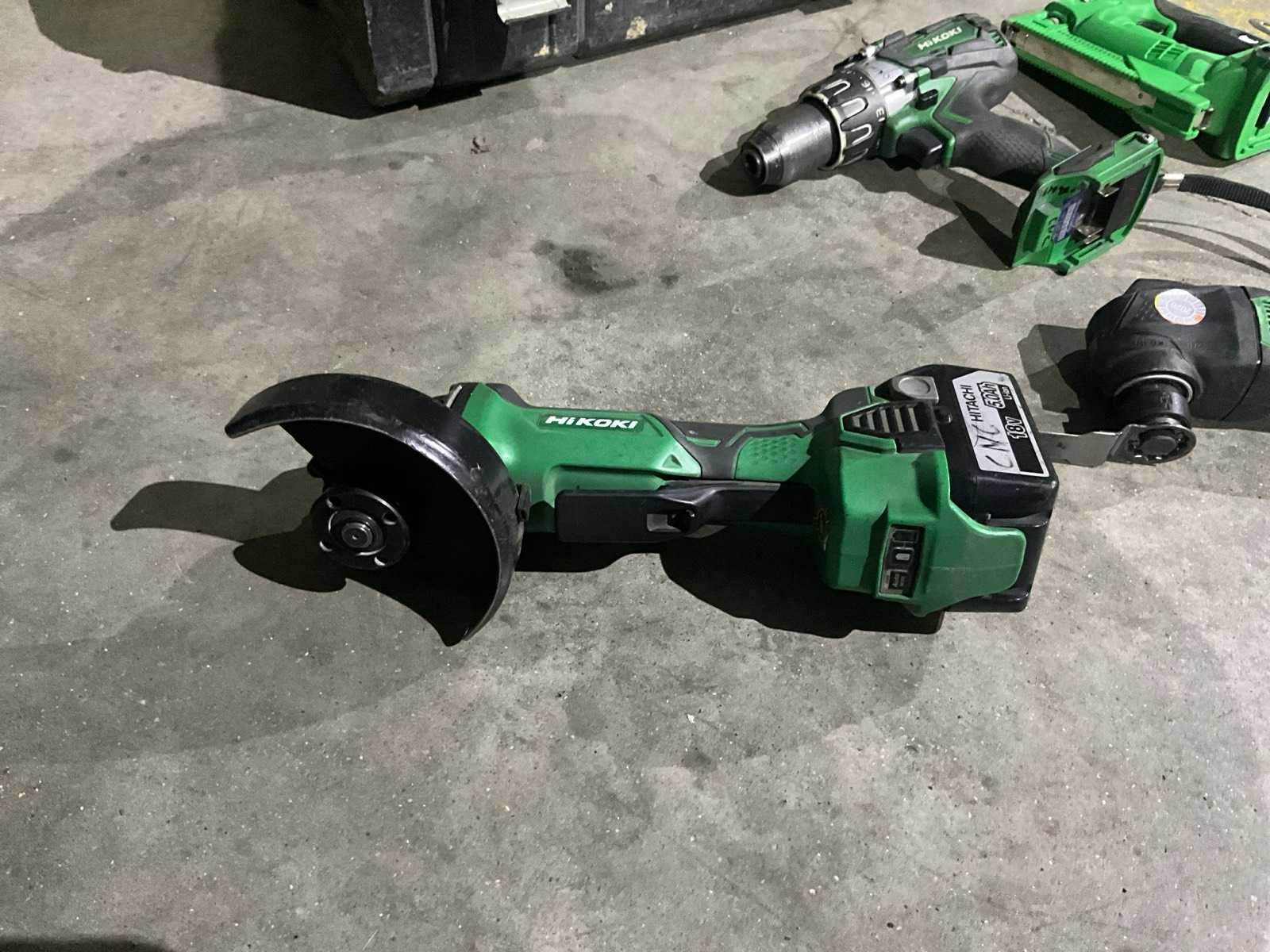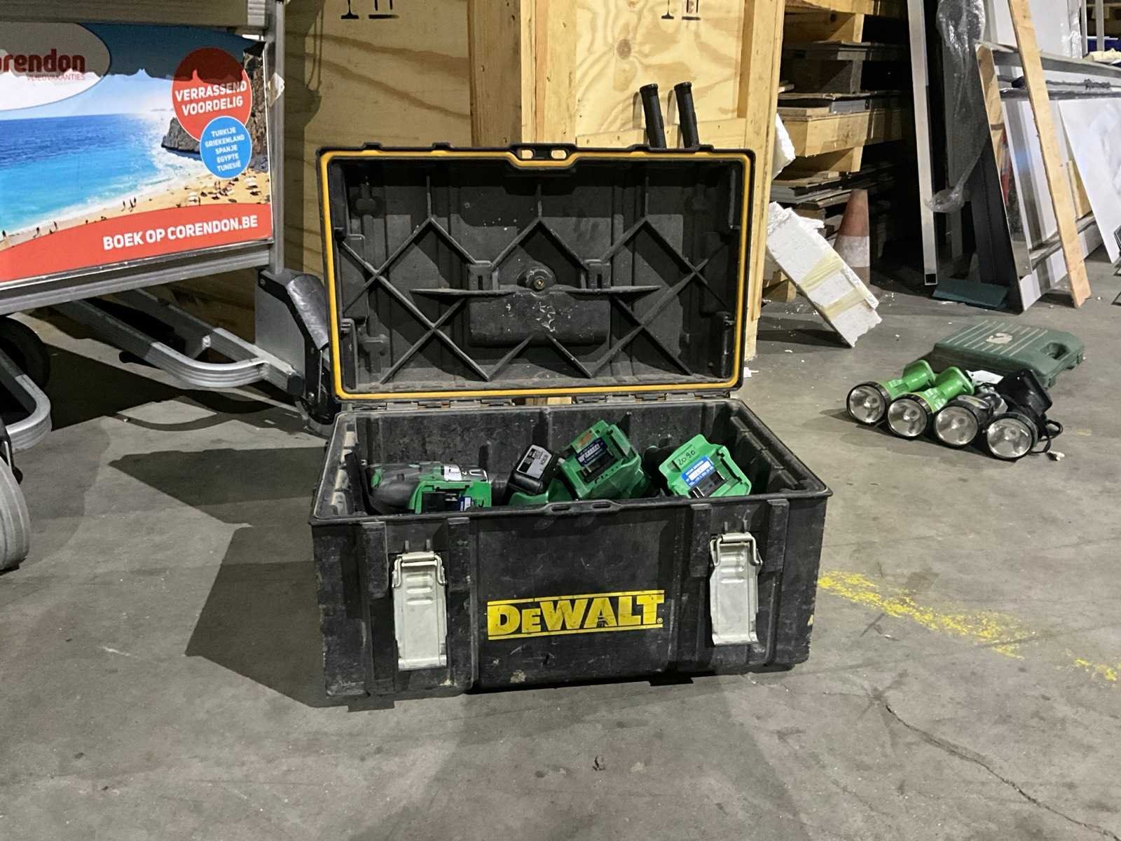 Klopboormachine HIKOKI, haakse slijpmachine HIKOKI G18DBBAL, boormachine HIKOKI DSD18BL 2, nietmachine HIKOKI N 18 dsl, multitool HITACHI CV18DBL in pvc opbergkoffer DEWALT voorzien van 1 batterij Nee