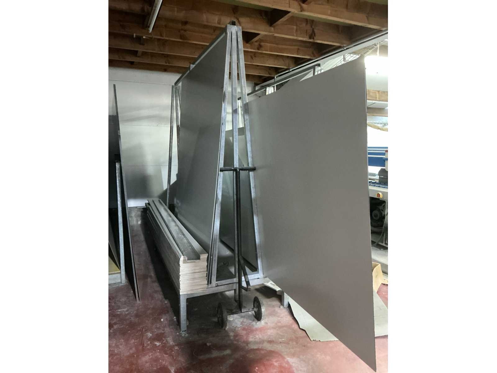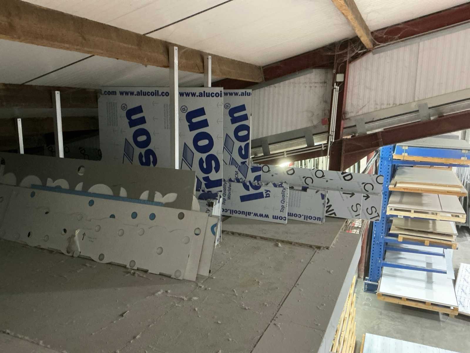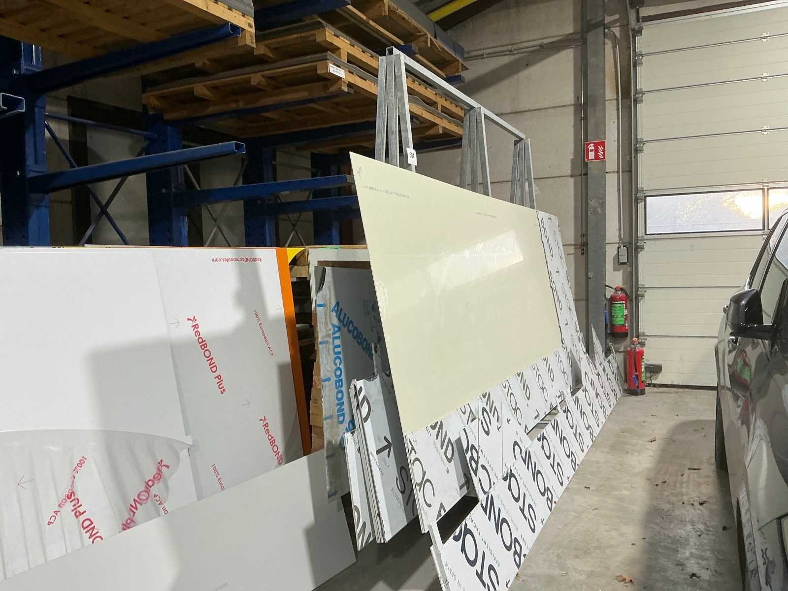 Inhoudende partij diverse aangebroken alupanelen waaronder Alucobond en Stac, compleet met diverse alu en pvc platen waaronder versneden, afgifte volgens aanwijzing, compleet met 1 x hefboom voor kar Nee Afmeting l: 2500mm Afmeting b: 1000mm Afmeting h: 2450mm Staal: true