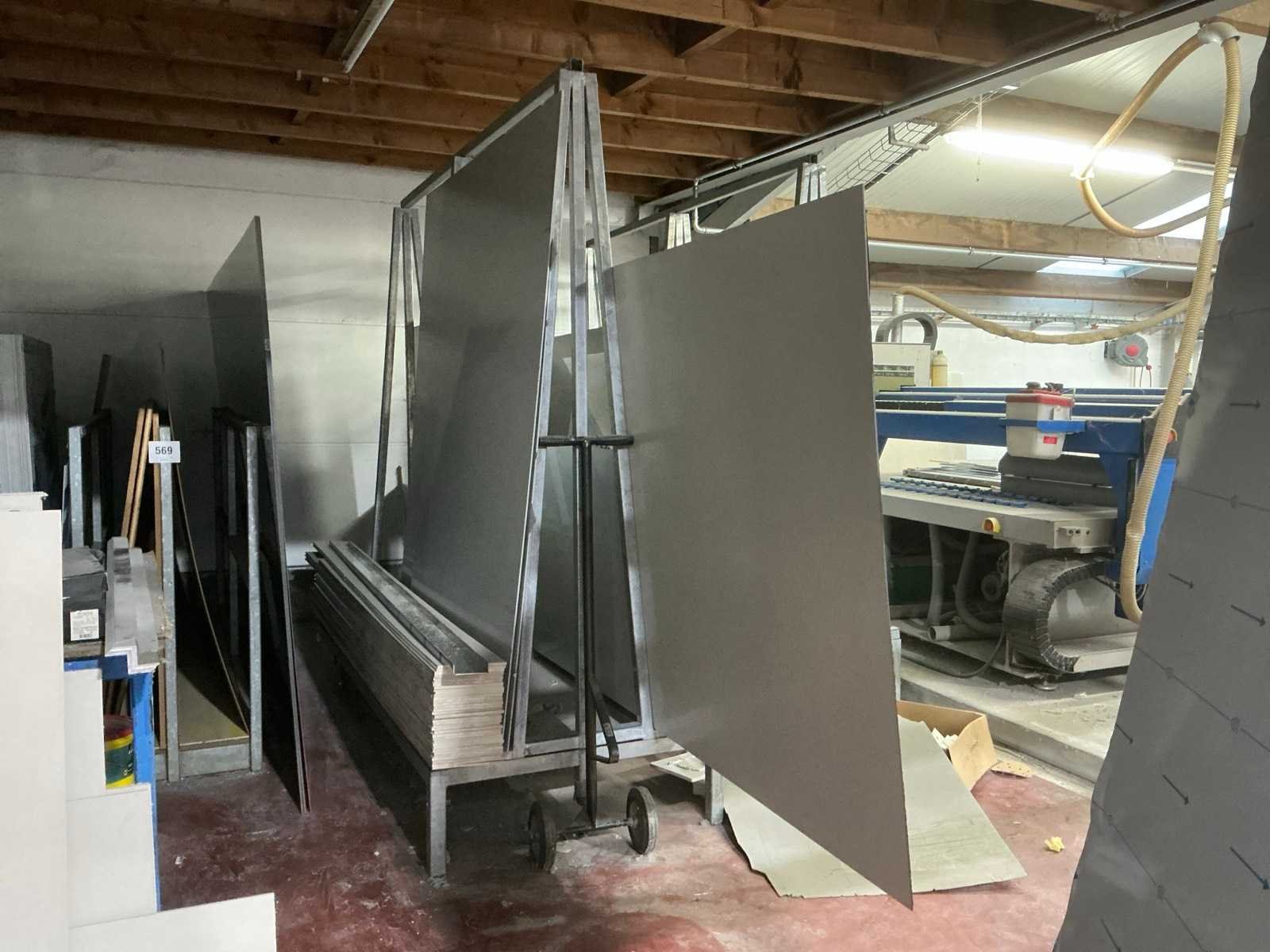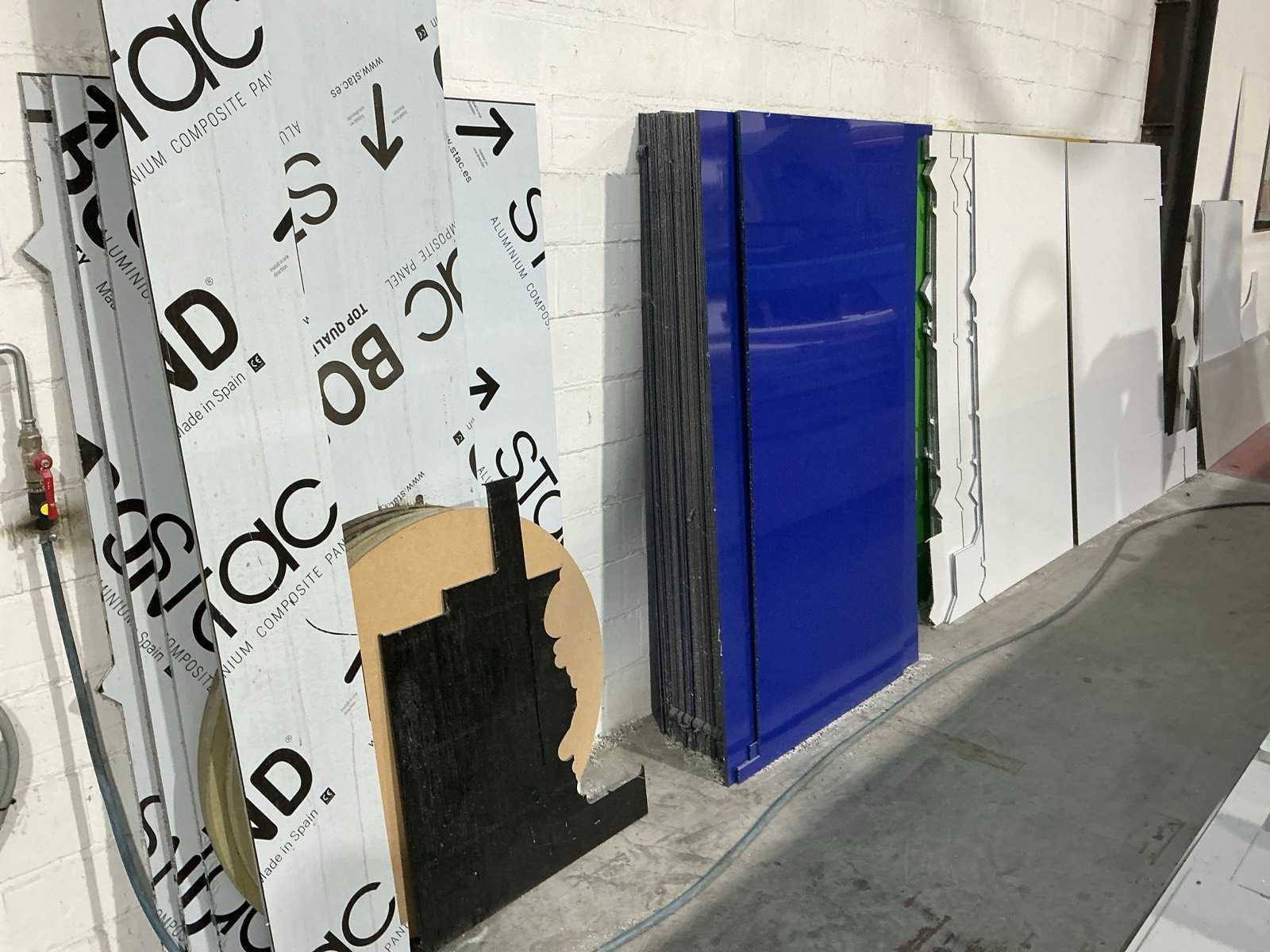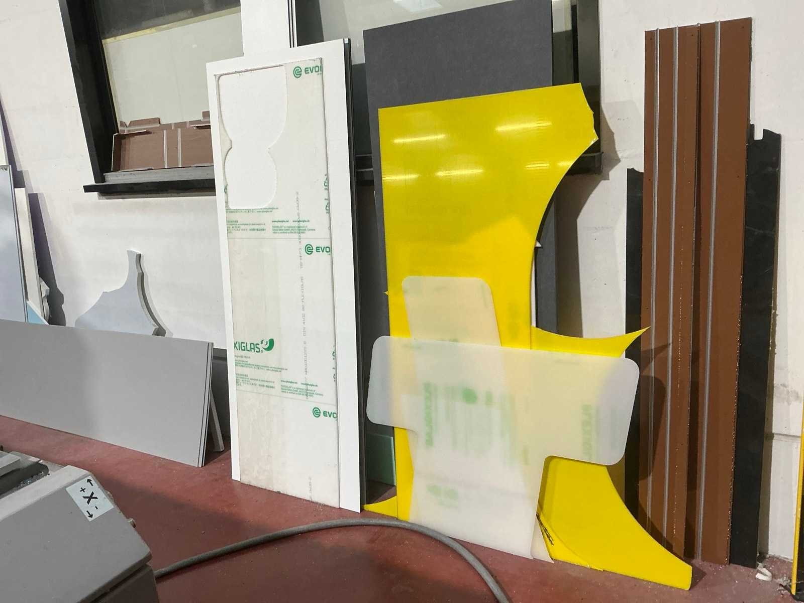 Inhoudende partij diverse aangebroken alupanelen waaronder Alucobond en Stac, compleet met diverse alu en pvc platen waaronder versneden, afgifte volgens aanwijzing, compleet met 1 x hefboom voor kar Nee Afmeting l: 2500mm Afmeting b: 1000mm Afmeting h: 2450mm Staal: true