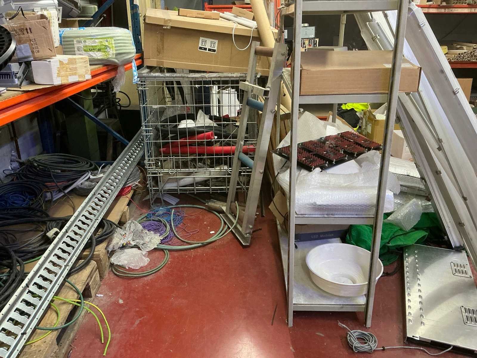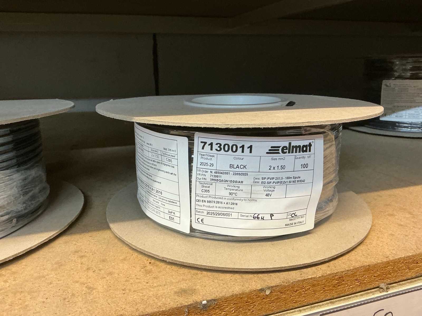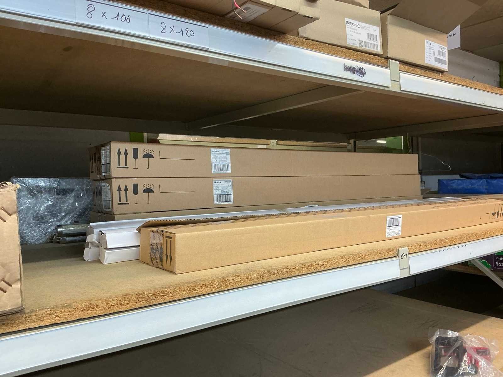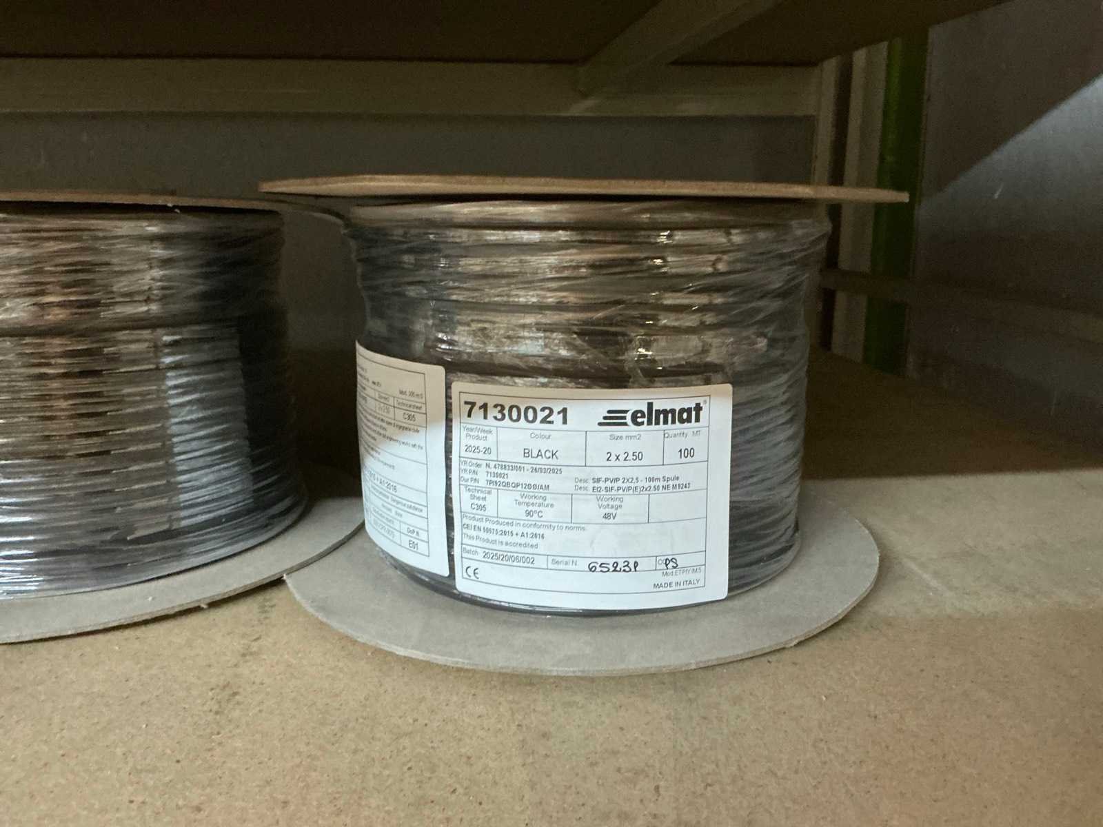 Grote partij diverse bekabeling waaronder ELMAT, aangesproken, recup onderdelen voor verlichting, 4 diverse elektrokabels op haspel, lampen PHILIPS, partij diverse transformatoren waaronder MW en WAECO, partij ledstrips, partij magazijn verlichting, enzovoort. volgens aanwijzing Nee
