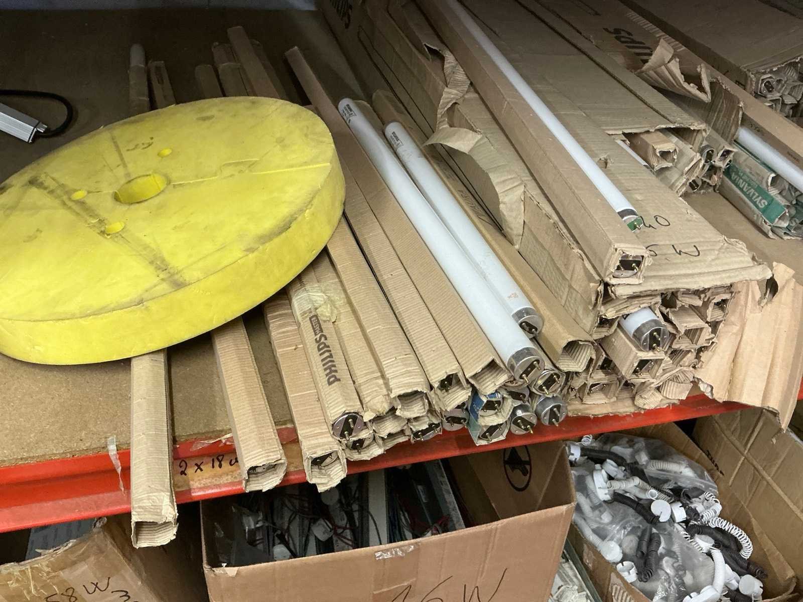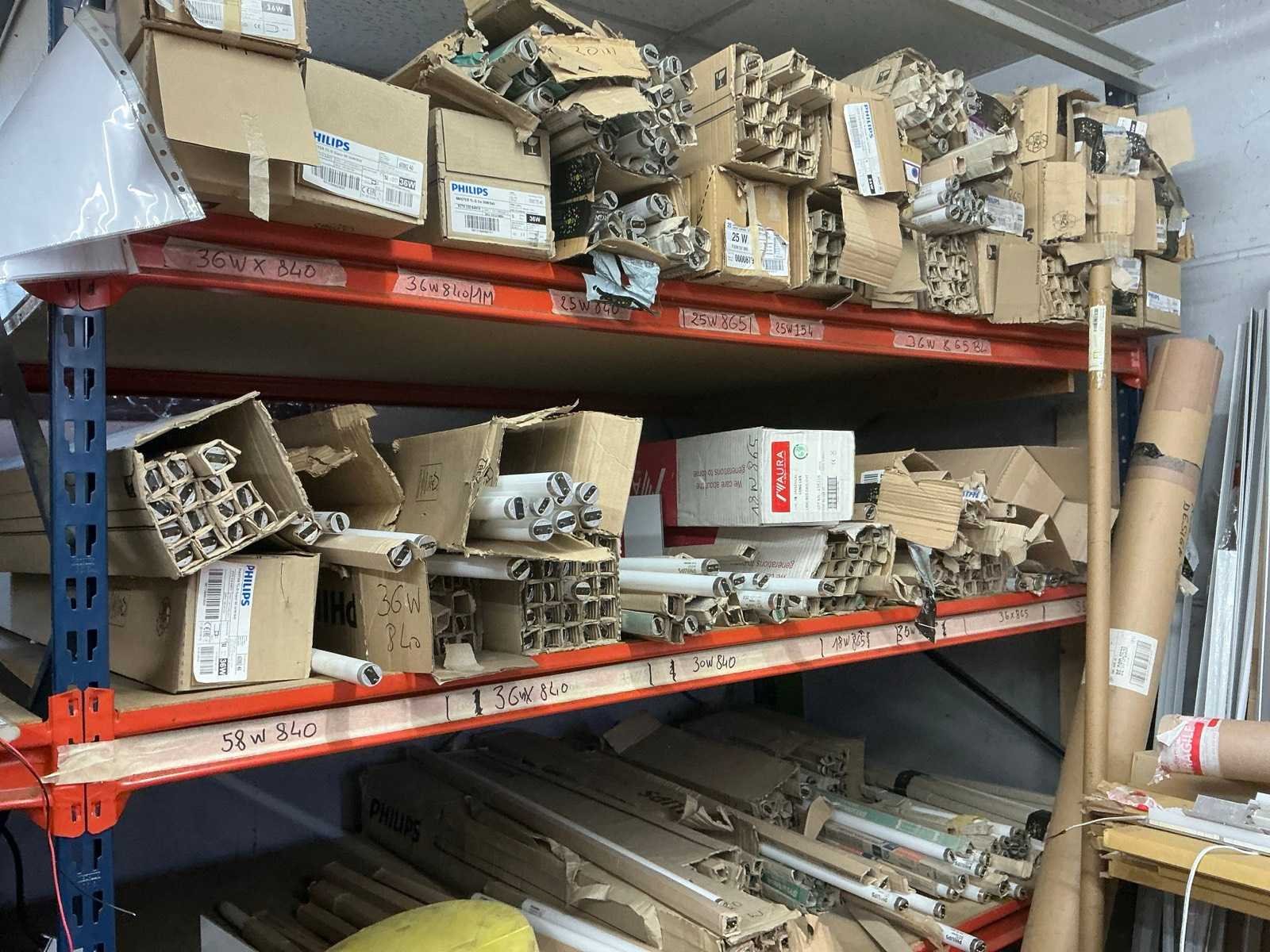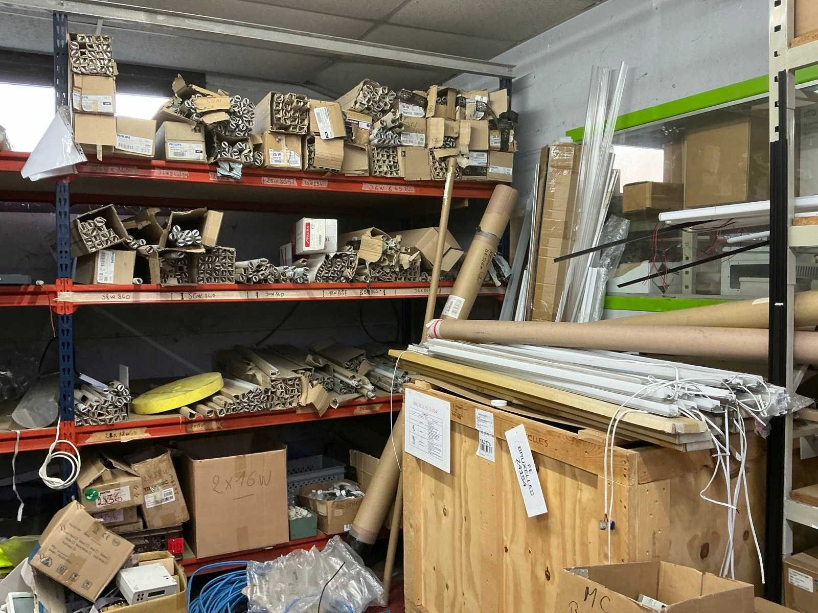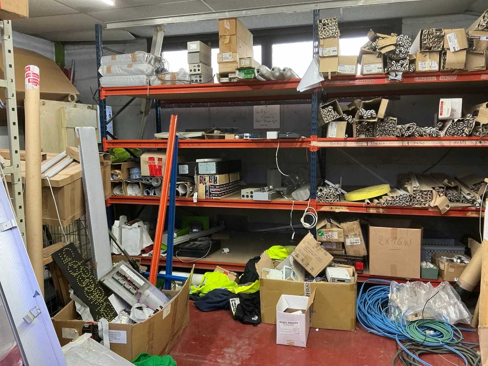 Grote partij diverse bekabeling waaronder ELMAT, aangesproken, recup onderdelen voor verlichting, 4 diverse elektrokabels op haspel, lampen PHILIPS, partij diverse transformatoren waaronder MW en WAECO, partij ledstrips, partij magazijn verlichting, enzovoort. volgens aanwijzing Nee