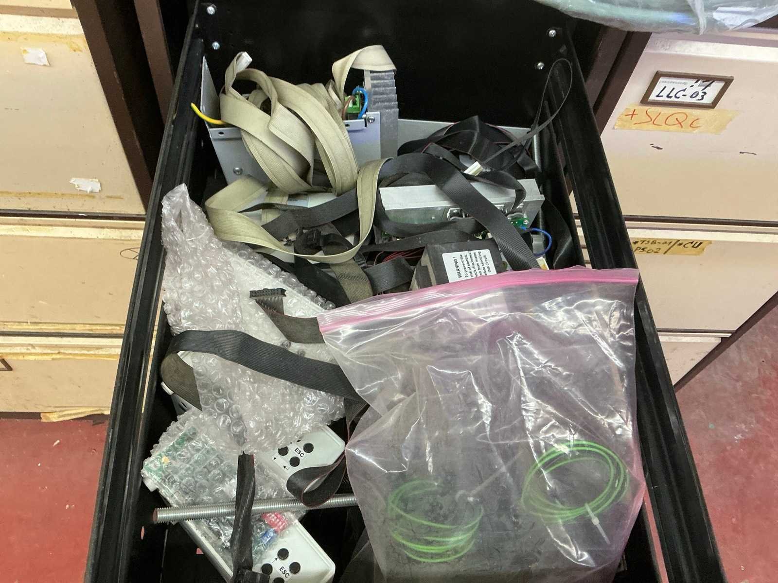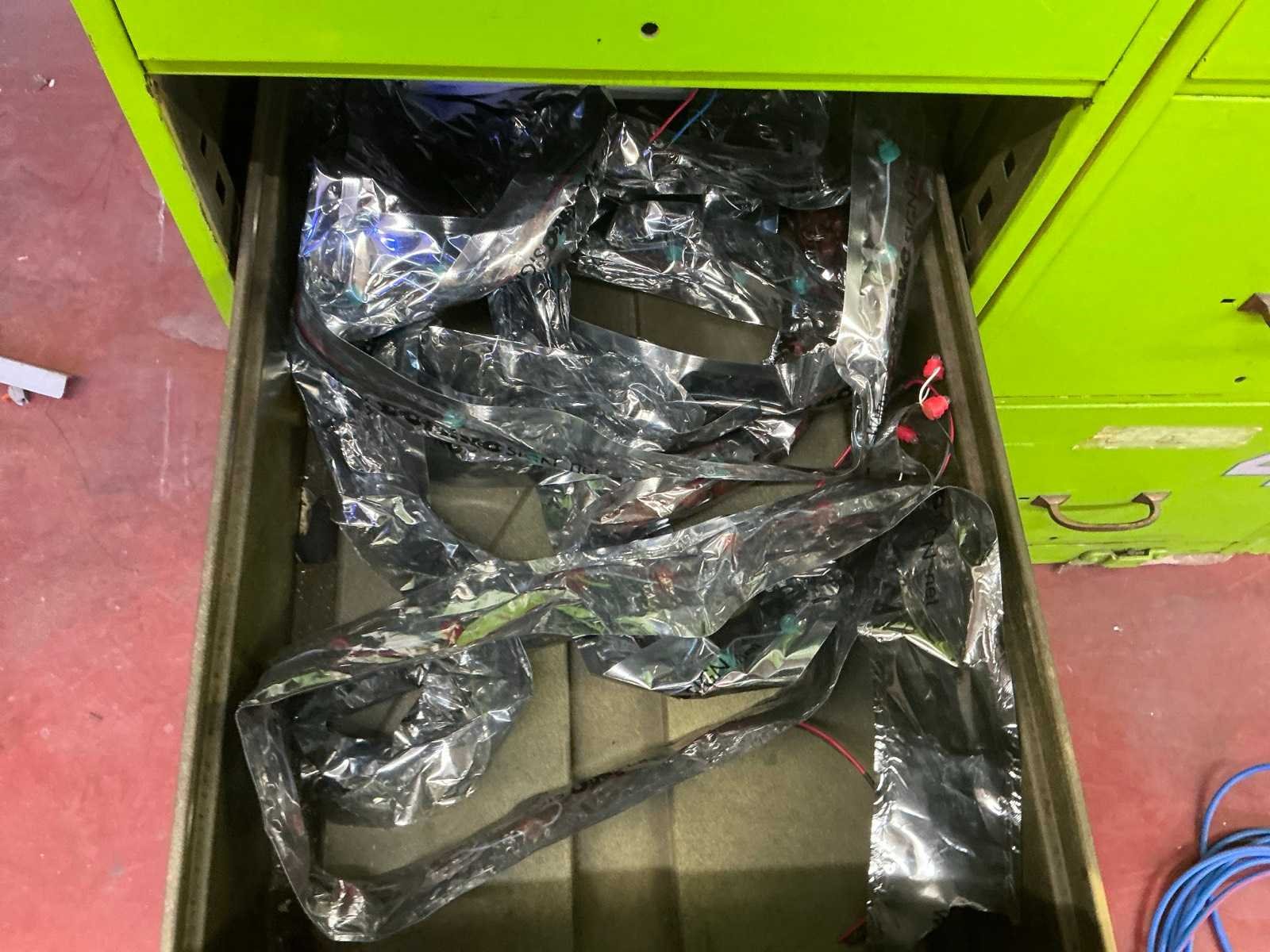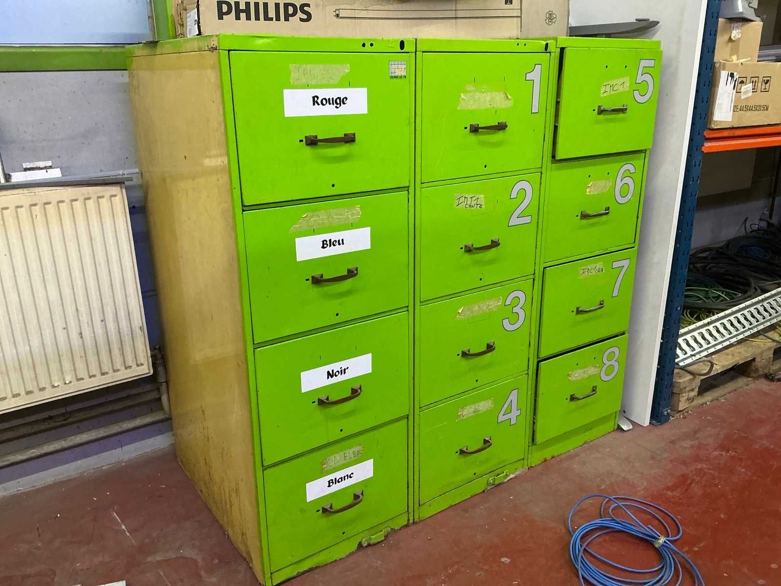 Waaronder afmeting 47 x 62 x 135 cm en 48 x 62 x 105 cm Compleet met inhoud zijnde, partij divers handgereedschap waaronder dopsleutels en bits, diverse spanbanden, siliconespuiten, diverse stroppen, partij houtlijm, aanhangwagen net, tangen, scharen, steeksleutels, hoekklemmen, partij diverse powersupplies, divers elektrotoebehoren, enzovoort Nee
