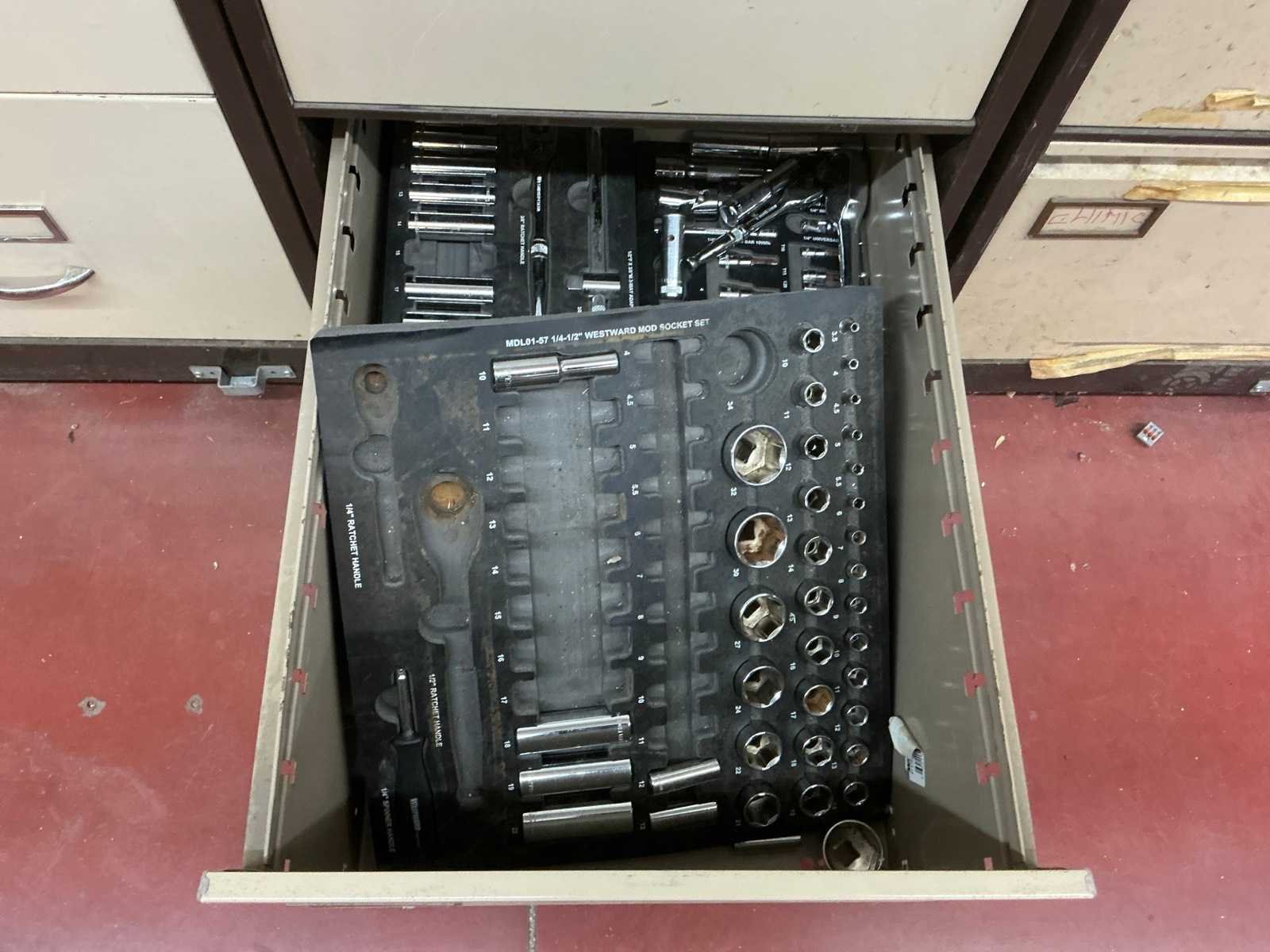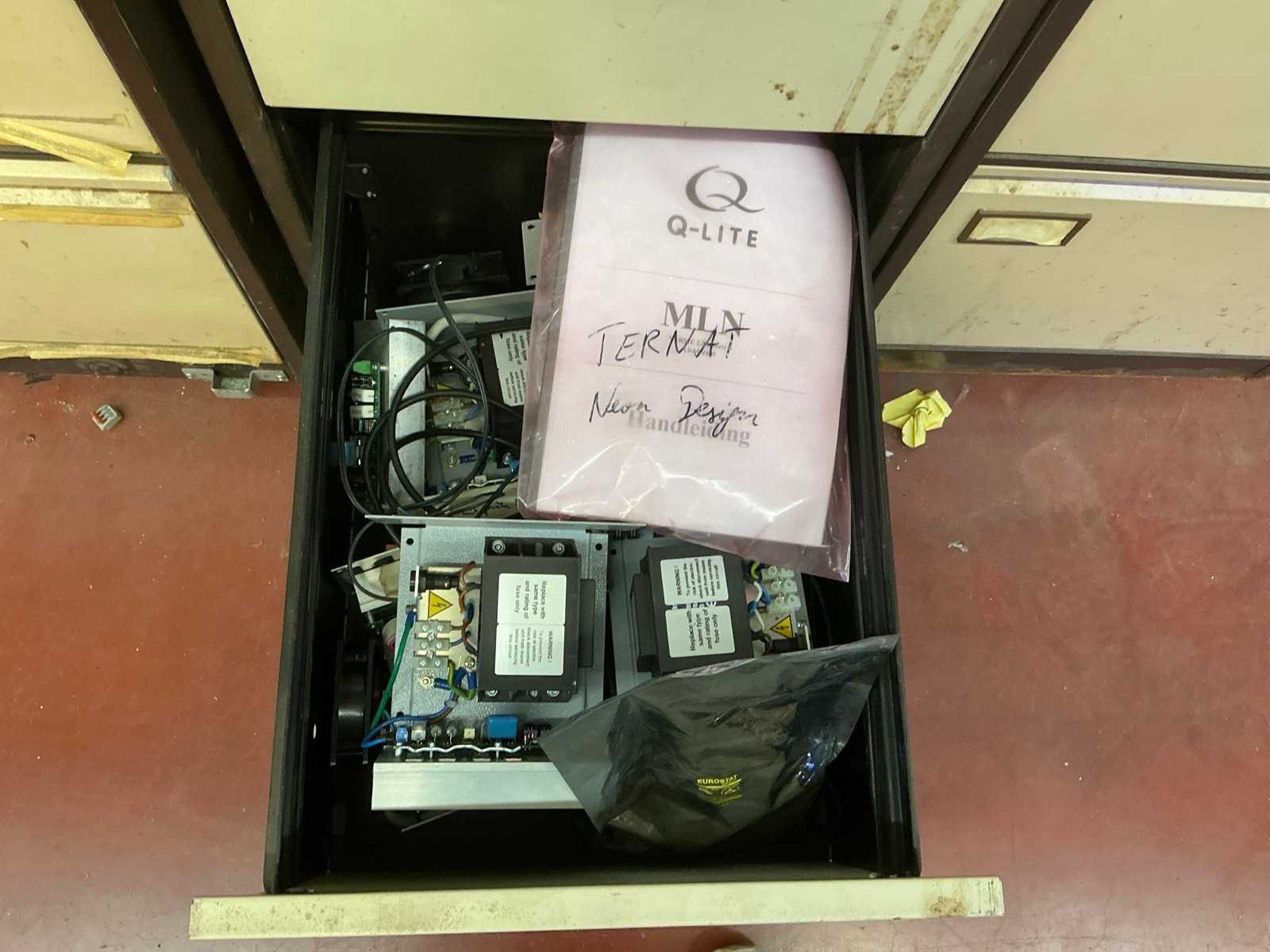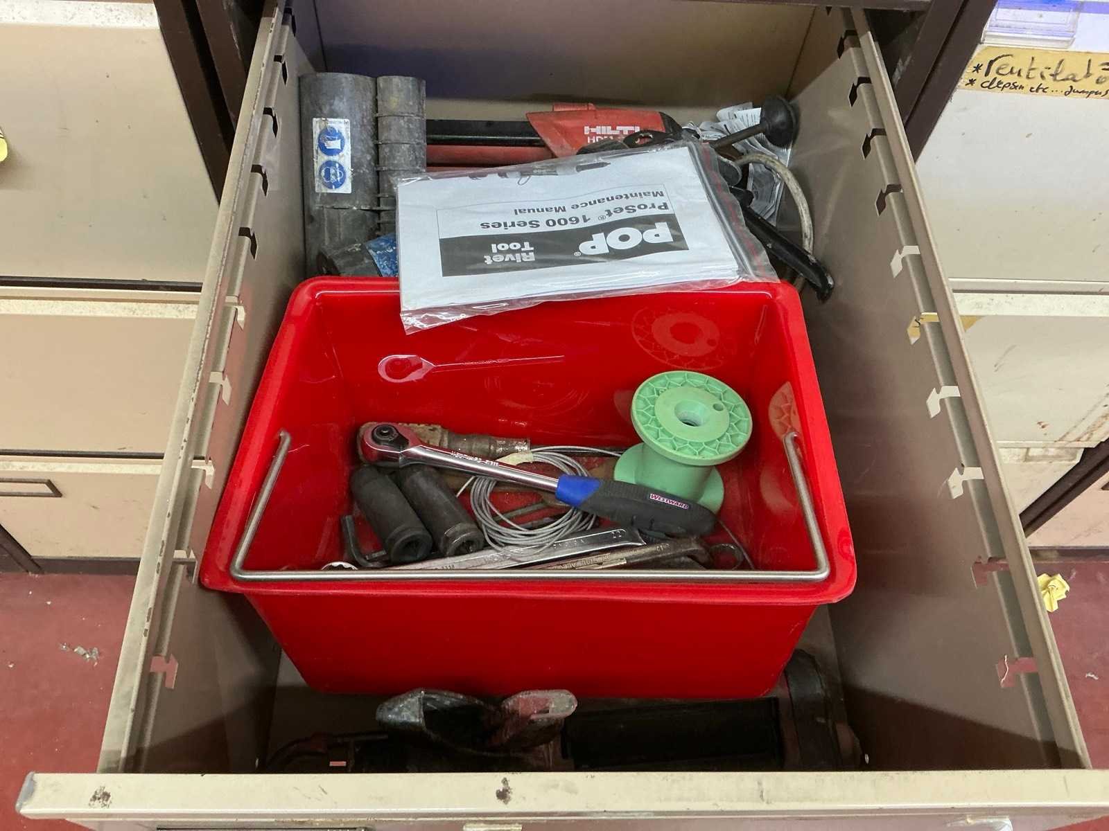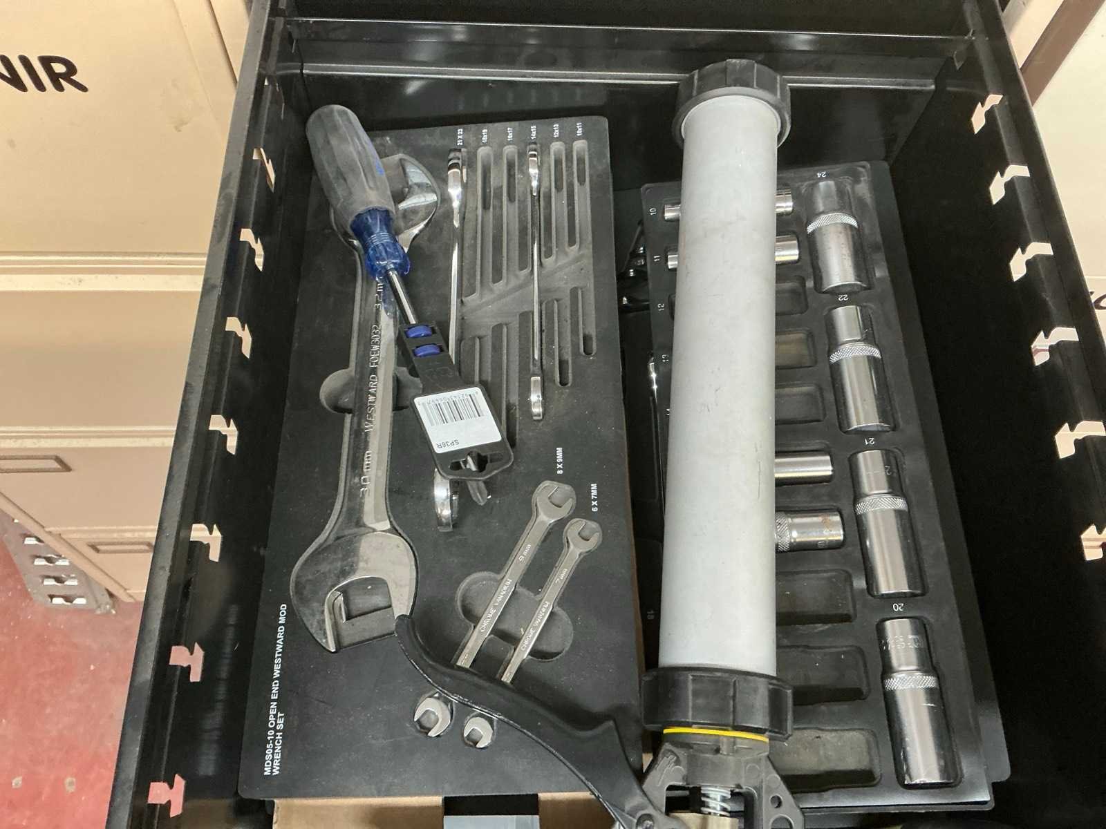 Waaronder afmeting 47 x 62 x 135 cm en 48 x 62 x 105 cm Compleet met inhoud zijnde, partij divers handgereedschap waaronder dopsleutels en bits, diverse spanbanden, siliconespuiten, diverse stroppen, partij houtlijm, aanhangwagen net, tangen, scharen, steeksleutels, hoekklemmen, partij diverse powersupplies, divers elektrotoebehoren, enzovoort Nee