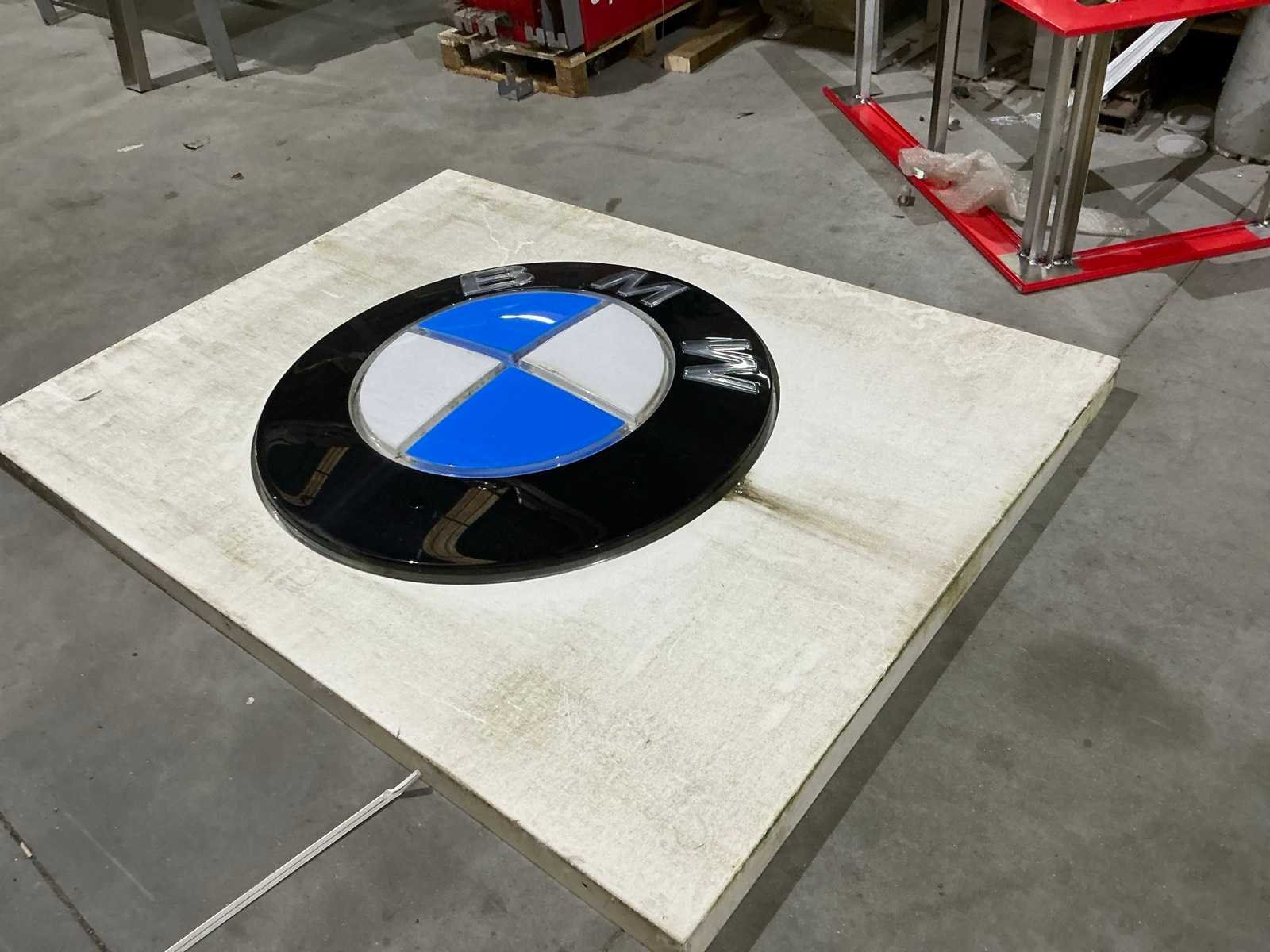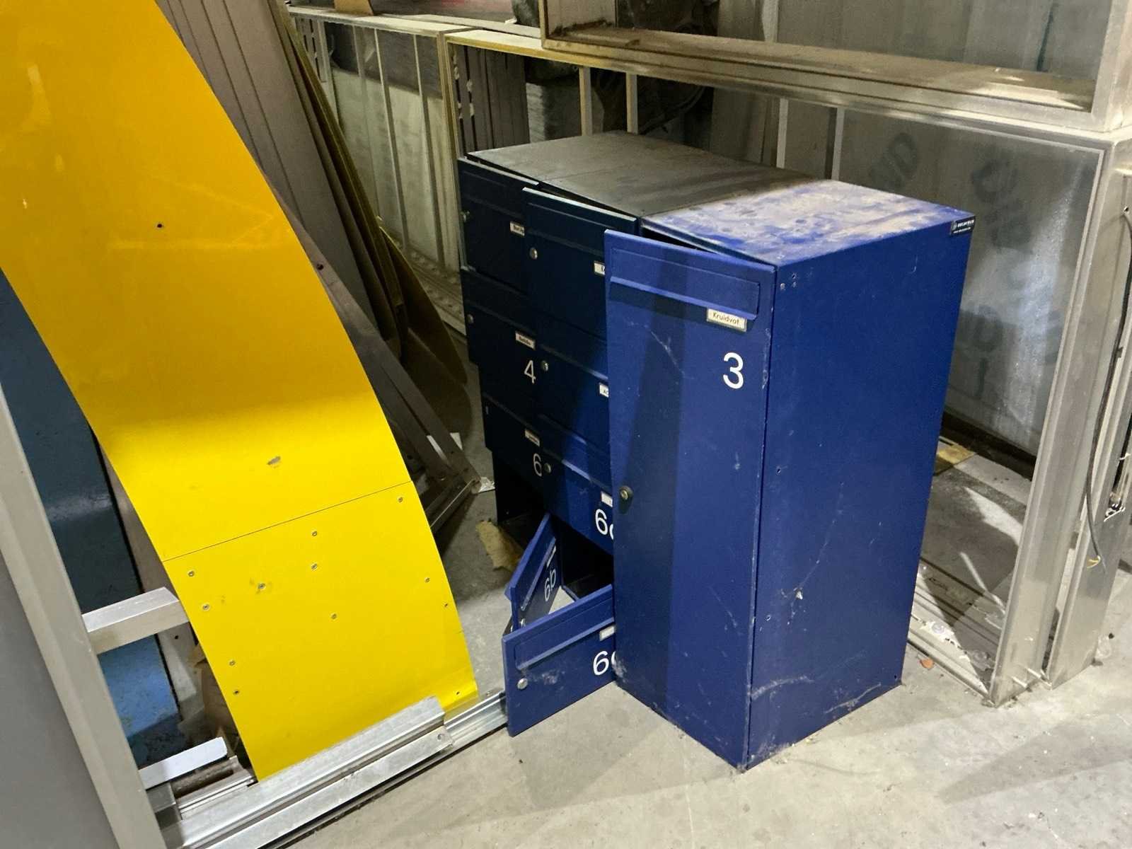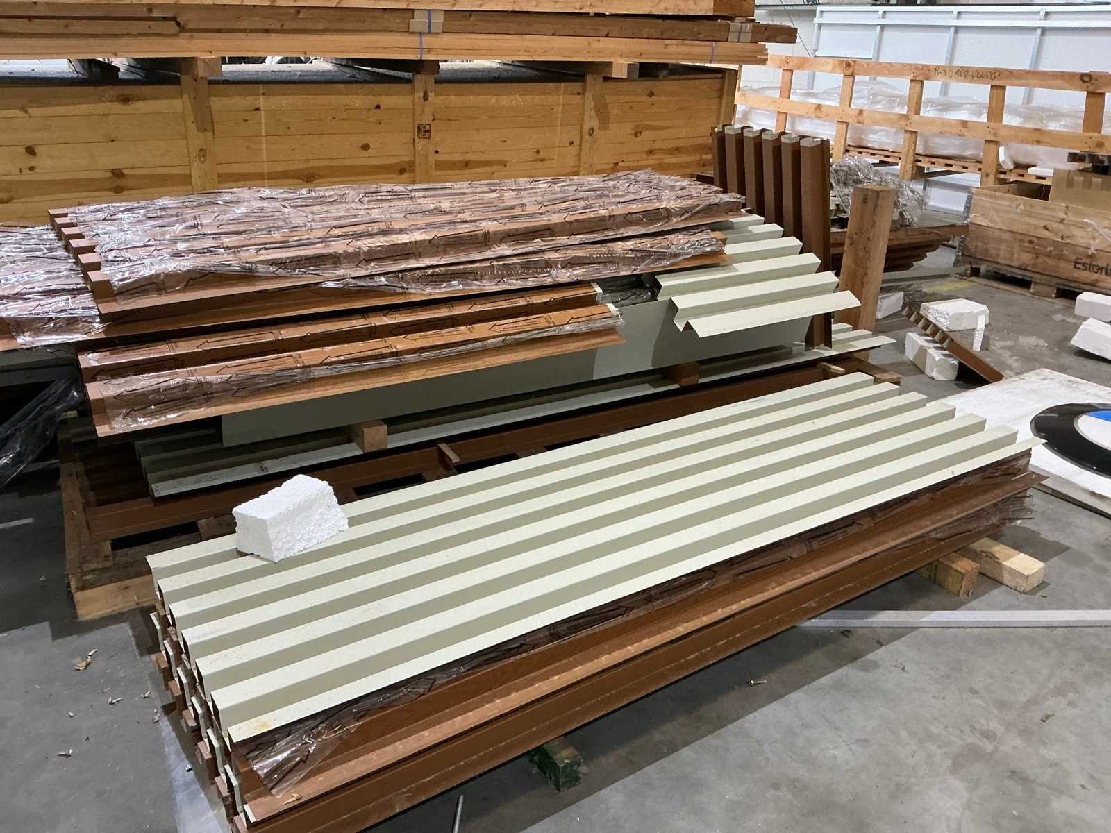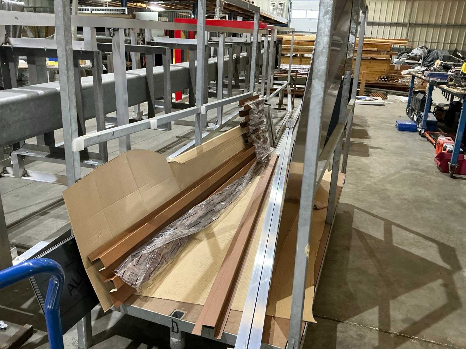 Waaronder bestaande uit partij logo’s , logoletters , alu en pvc platen, alu frames, metalen en alu profielen, in diverse afmetingen en uitvoeringen waaronder profielen met maximale lengte 310 cm en diverse logo’s met maximale afmeting 330 x 175 cm, en alu profielen tot maximale lengte van 250 x 60 cm, compleet met enige rollen folie waaronder aangesproken en diverse lichtbakken waaronder LADBROKES, uitgezonderd genummerde kavels, liggende in 2 houten bokken, 2 metalen dubbelzijdige bokken, 2 verrijdbare transportkarren ( zonder kar), tegen wand onder vlonder en alu draagarmstelling (inclusief), afgifte volgens aanwijzing Nee
