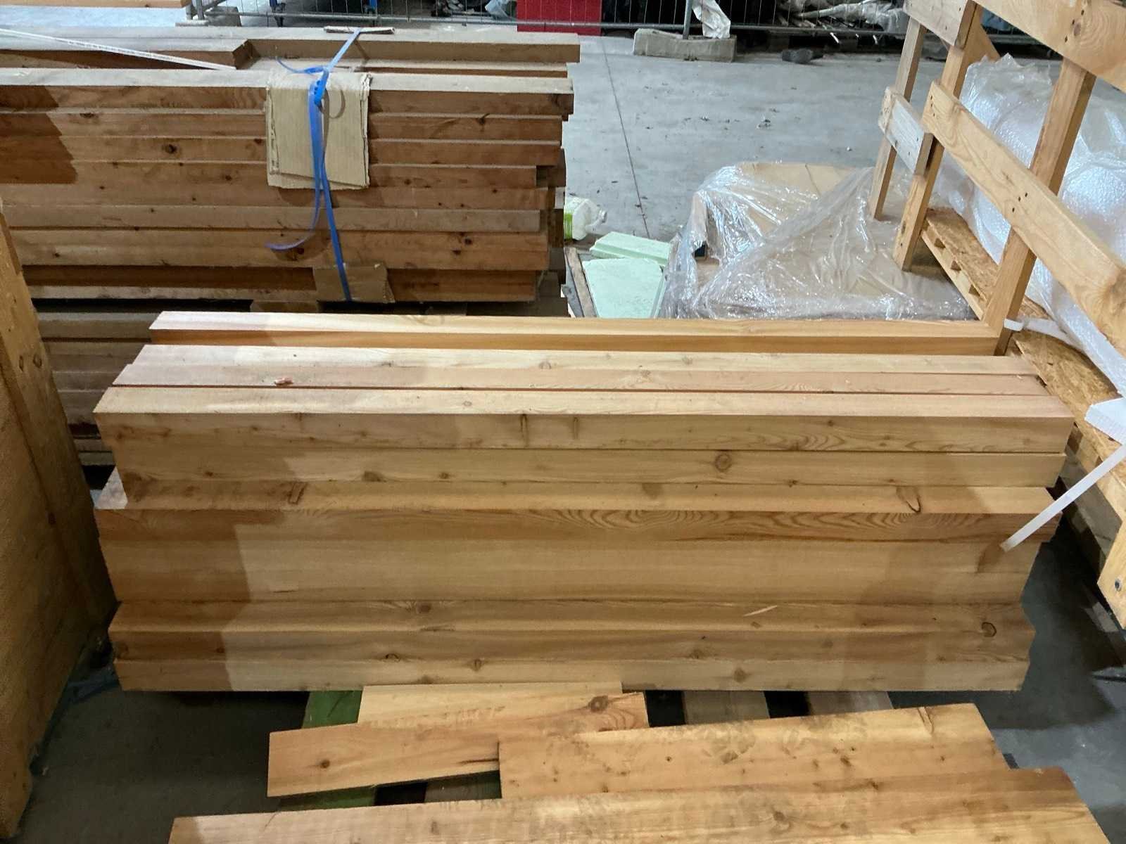Waaronder circa 23 balken met afmeting circa 400 x 20 x 6,5 cm, circa 108 houten planken met afmeting 602 x 14,5 x 4 cm, 22 diverse houten latten waaronder lengte tot 510 cm, compleet met circa 54 houten balkjes met afmeting 155 x 7 x 7 cm, 3 pakken en houten krat met afmeting 406 x 110 x 115 cm Nee