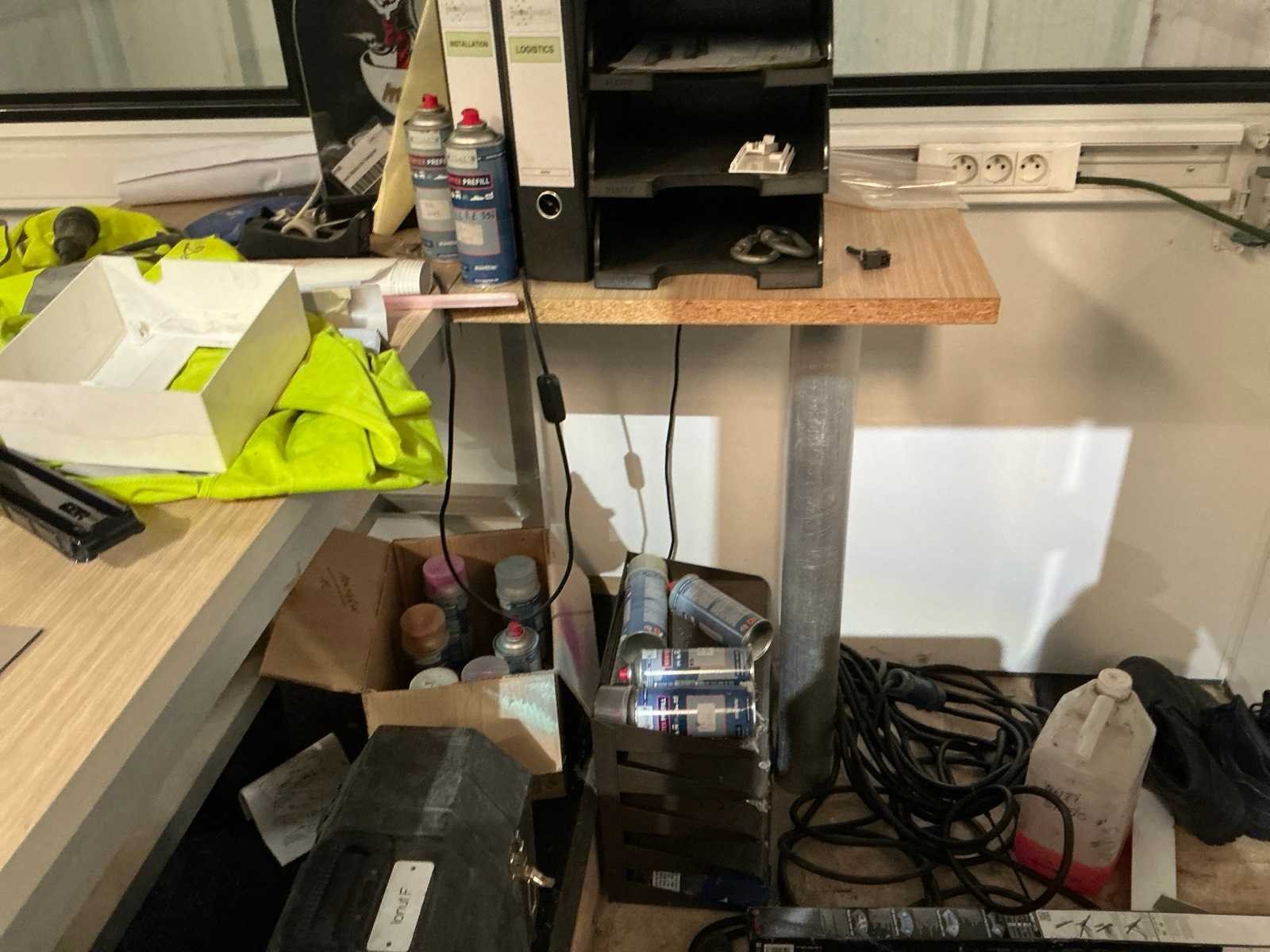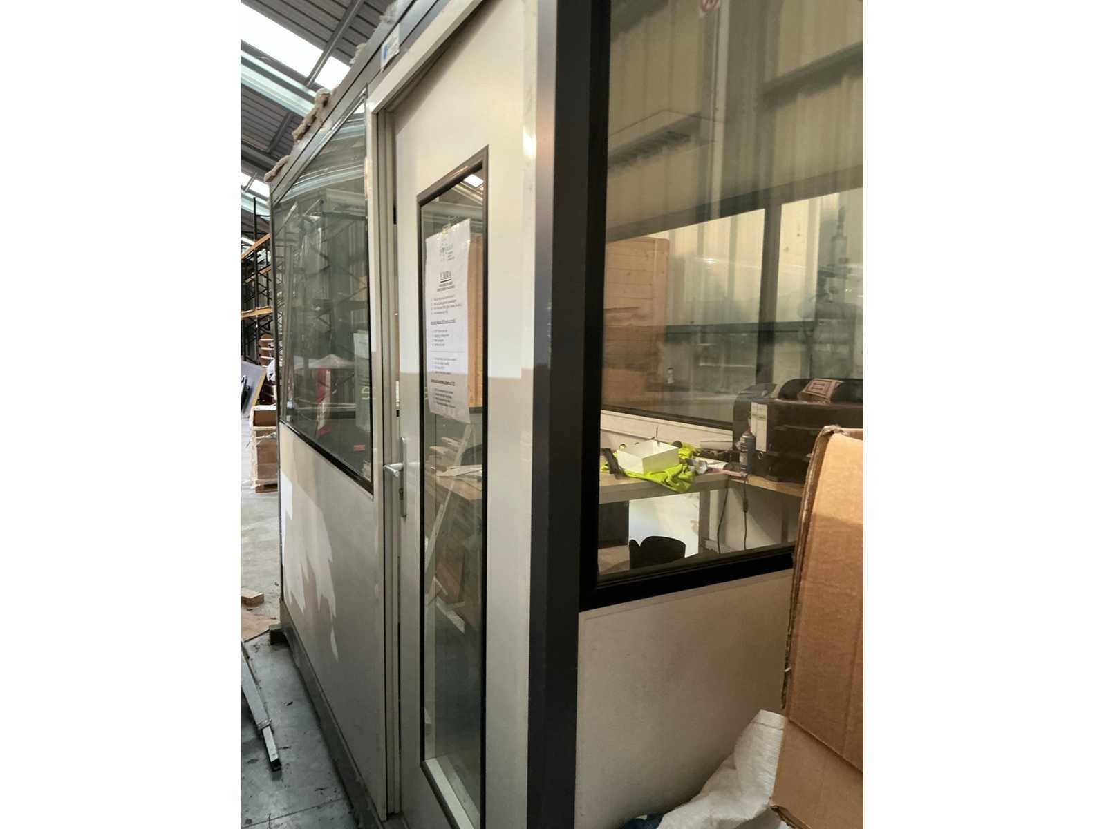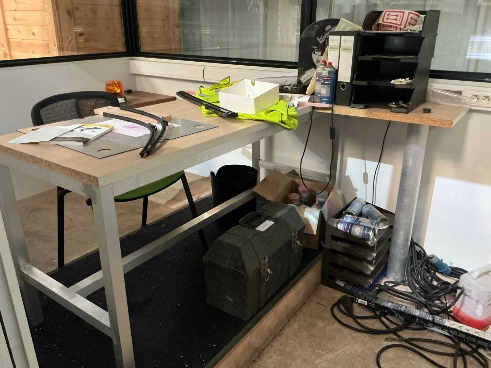 Voorzien van verlichting en deur, Compleet met inhoud zijnde aluminium bureau, bijzetstoel en 2-schuifsladekast en diverse lakken en spuitbussen Nee Merk: Cubistic Aantal ramen: 5 Totale afmeting L: 3100mm Totale afmeting Breedte: 2100mm Totale afmeting Hoogte: 2400mm