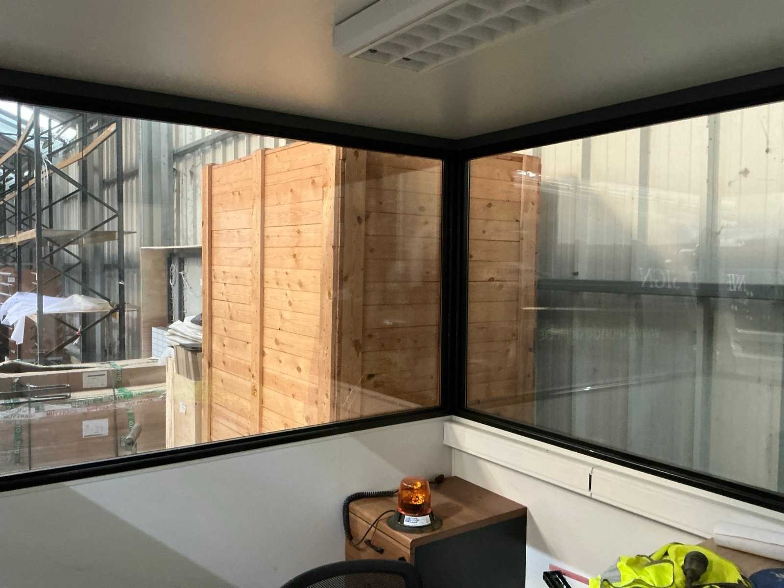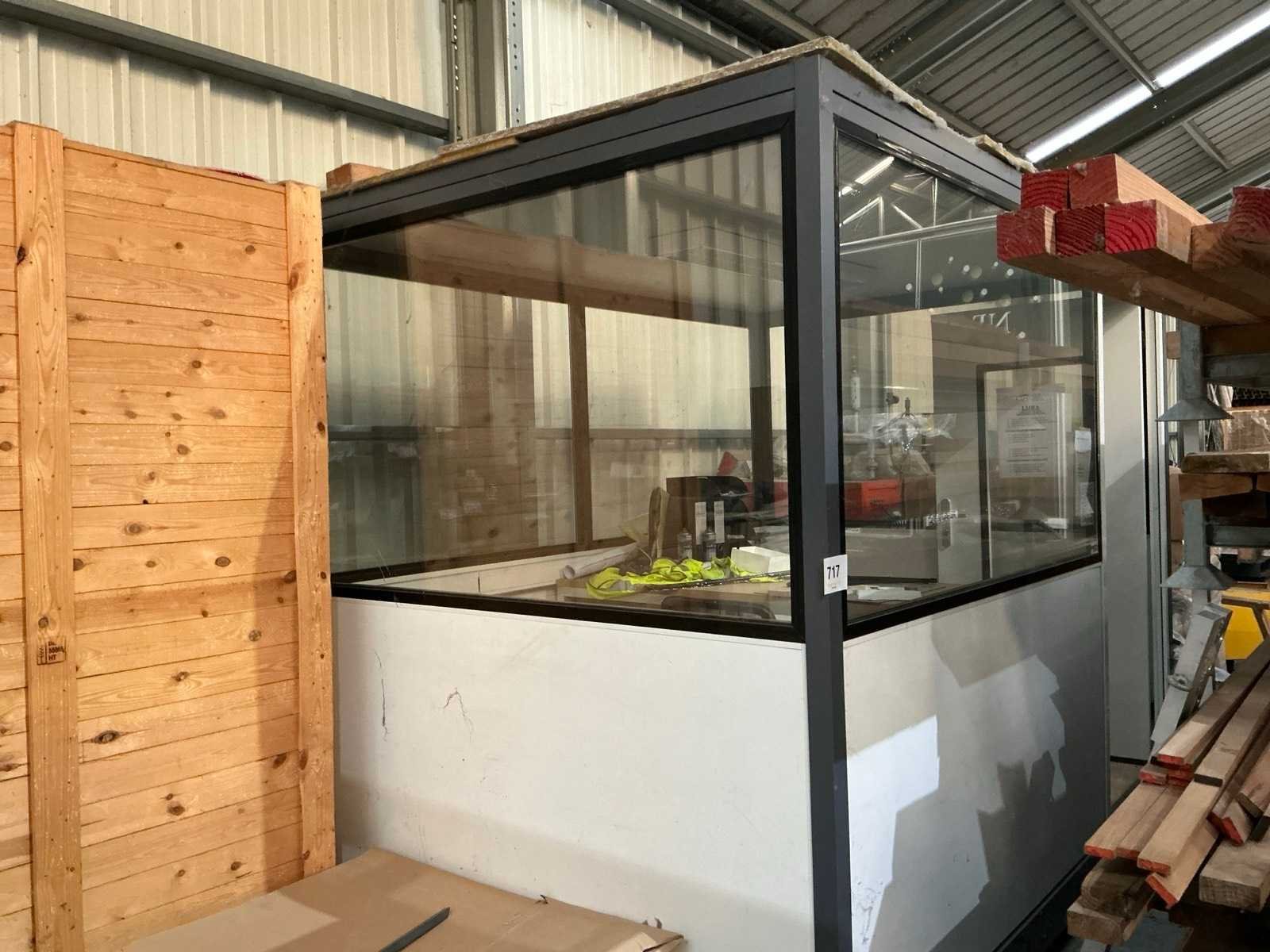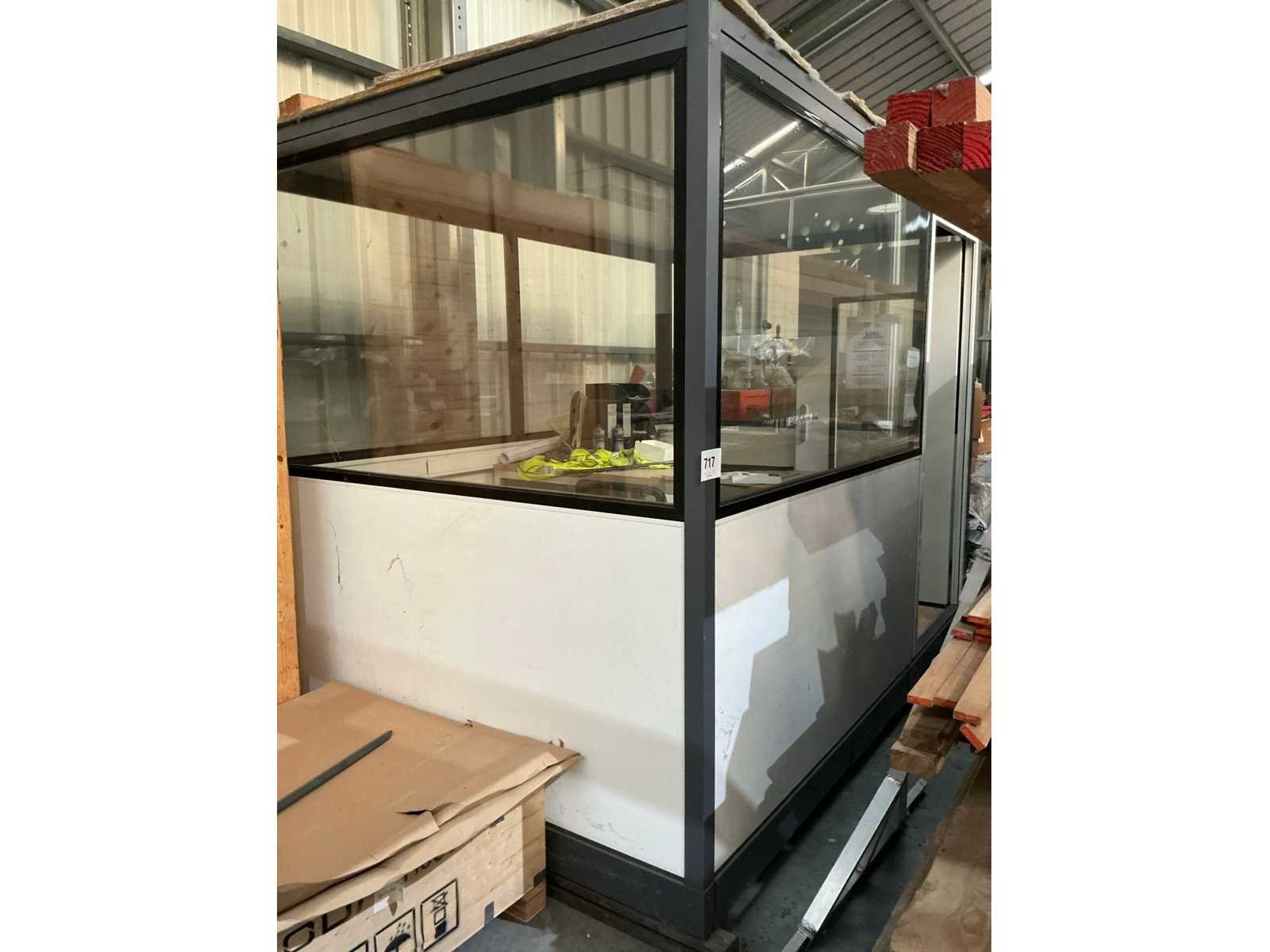 Voorzien van verlichting en deur, Compleet met inhoud zijnde aluminium bureau, bijzetstoel en 2-schuifsladekast en diverse lakken en spuitbussen Nee Merk: Cubistic Aantal ramen: 5 Totale afmeting L: 3100mm Totale afmeting Breedte: 2100mm Totale afmeting Hoogte: 2400mm