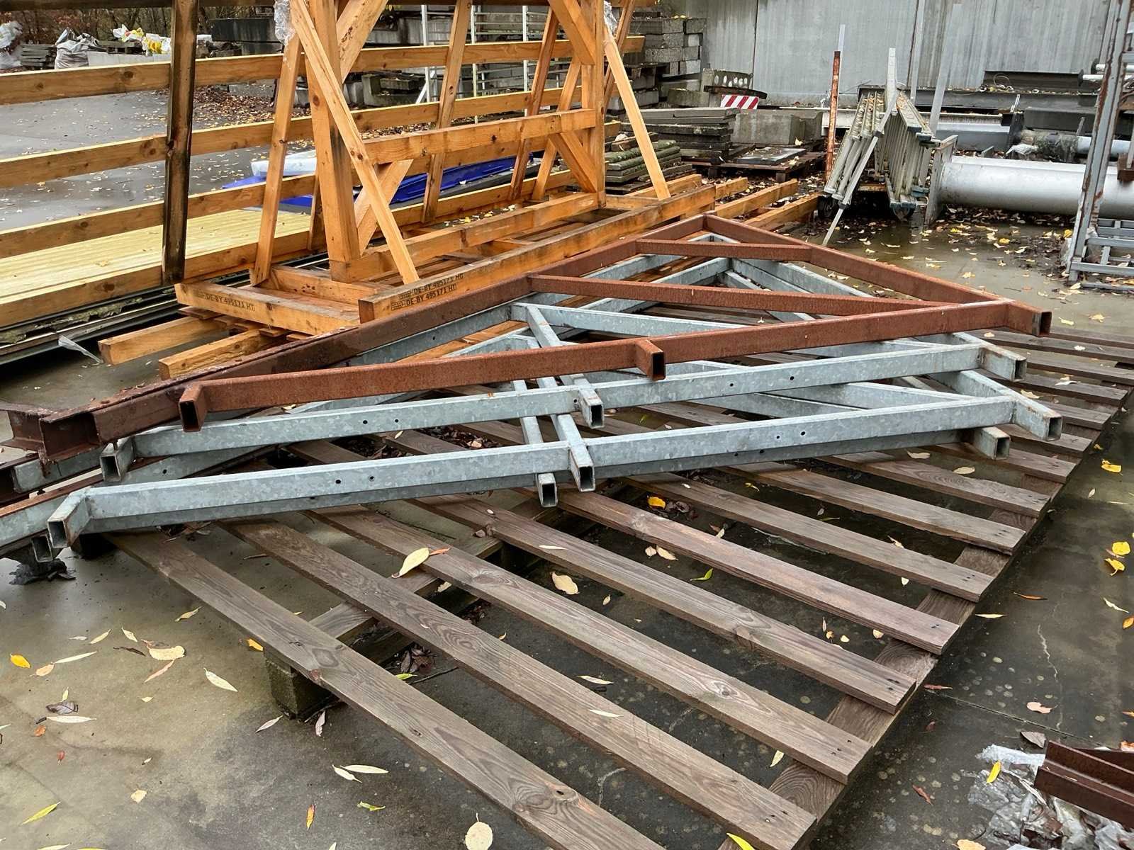 Op 2 palletten en boven op terrein naast aanhanger Nee