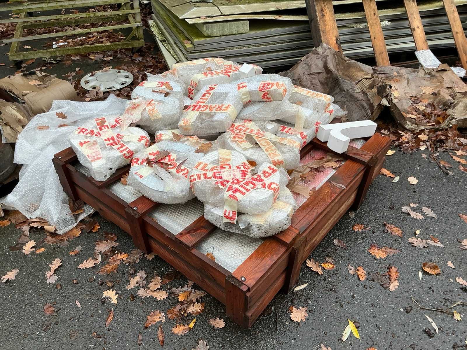 Compleet met 6x aluminium frame, afmeting circa. 300x150cm en diverse pvc letters Nee Lengte: 360 Hoogte: 190