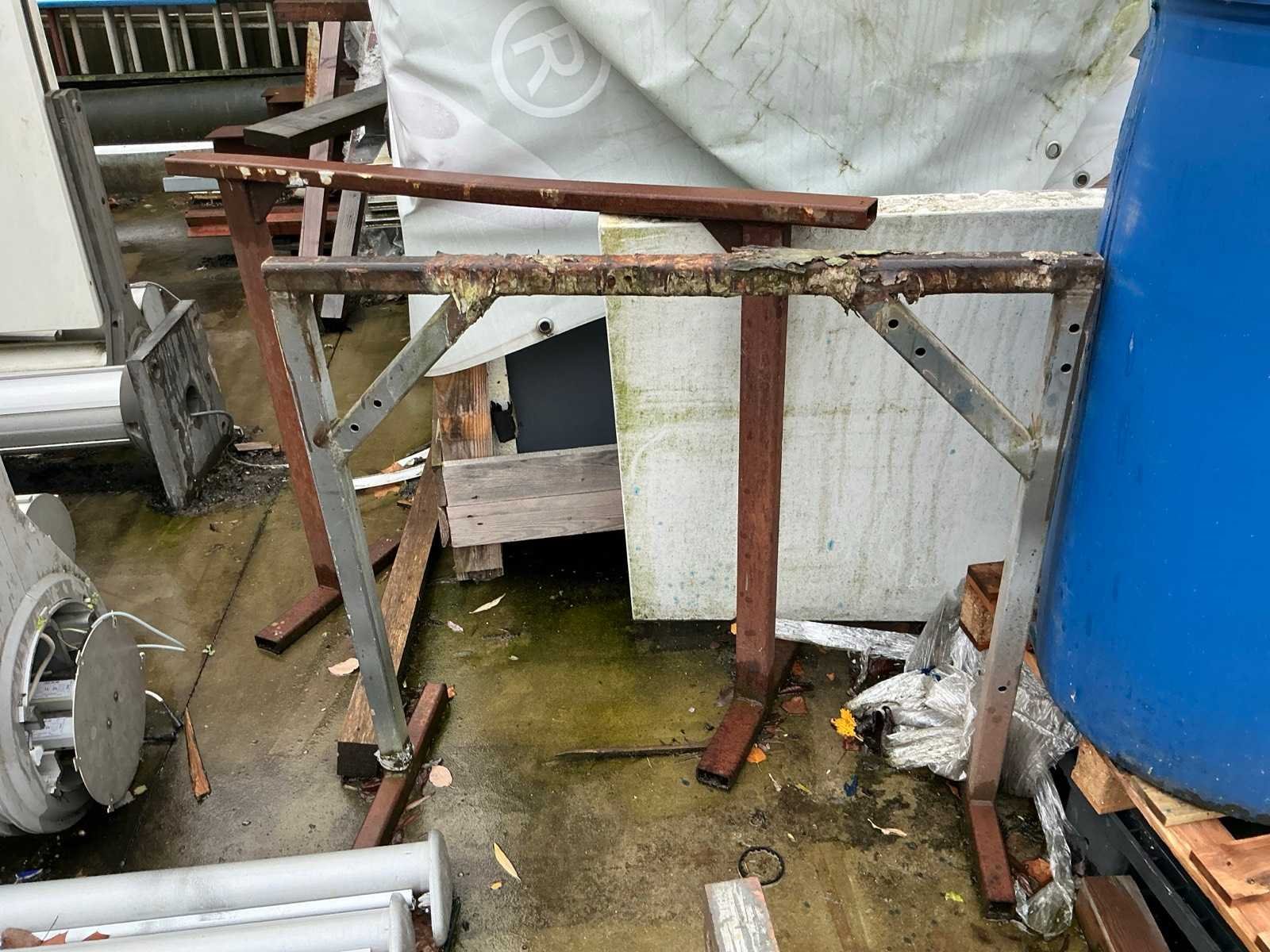 Compleet met 4 metalen schragen Nee Merk: Vincotte Bouwjaar: 1984 Totale afmeting L: 1050mm Totale afmeting Breedte: 770mm Totale afmeting Hoogte: 940mm