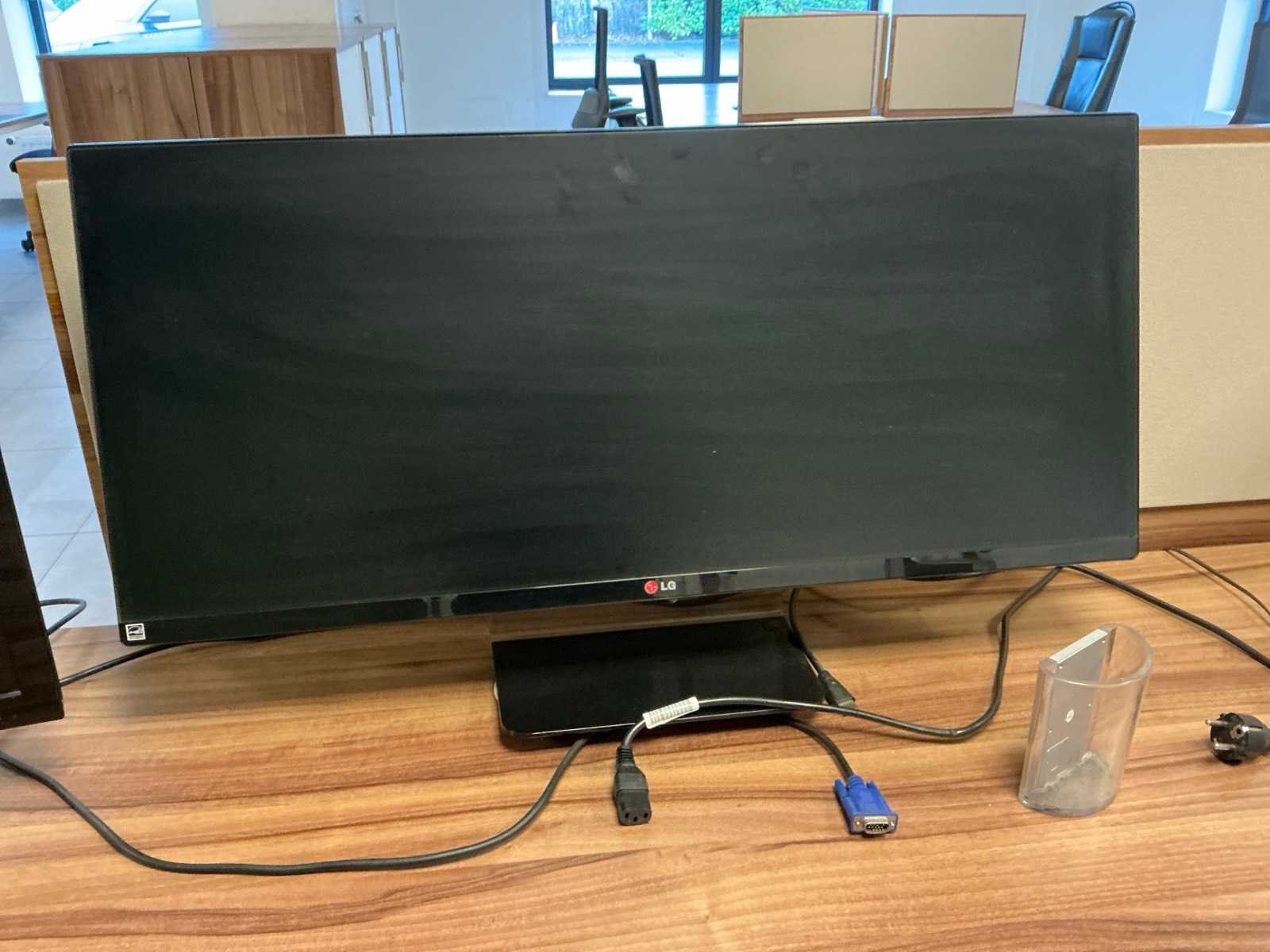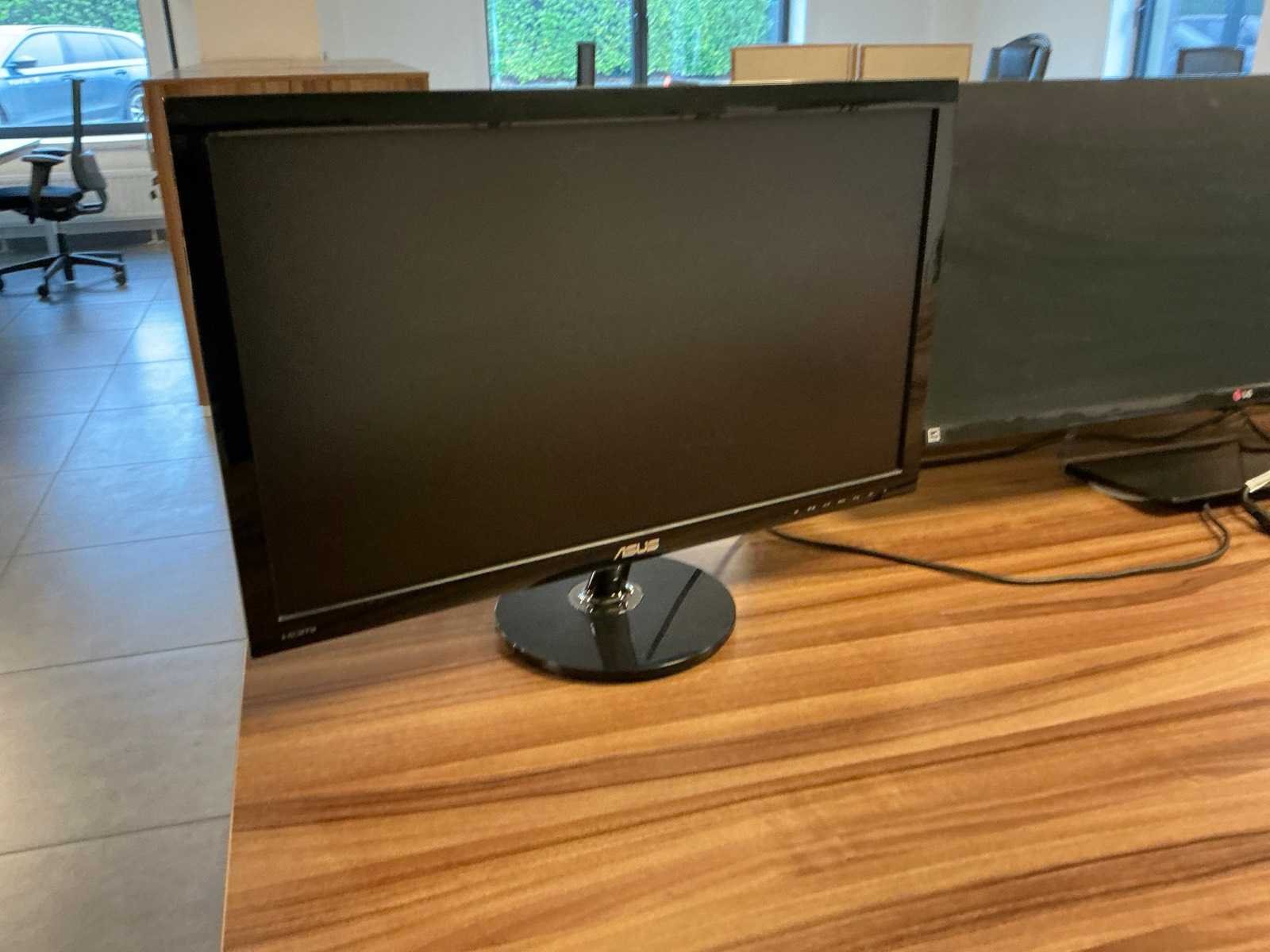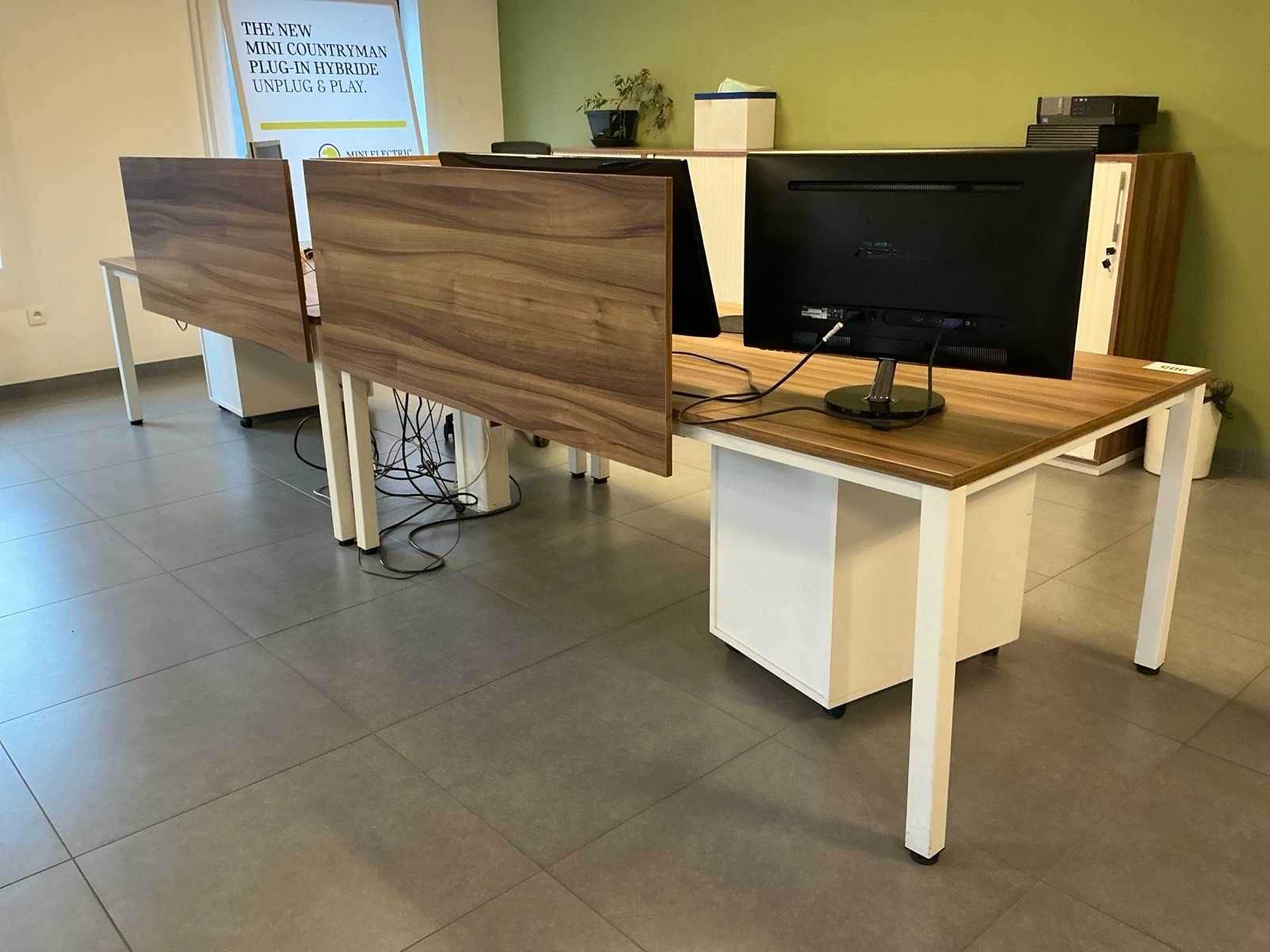 Bestaande uit 2 delen elk van afmeting circa 200 x 90 x 76 cm waaronder 2 voorzien van tussenwanden, 3 diverse monitors LG 34UM65, PHILIPS, ASUS, toetsenbord en muis DELL, 2 ladenblokken waaronder 1 voorzien van 4 laden en 1 voorzien van 3 laden, 1 bureaustoel waaronder voorzien van stoffen bekleding Nee