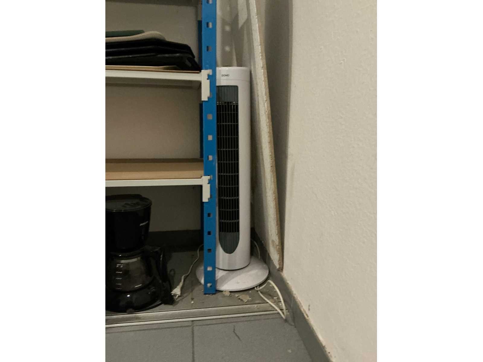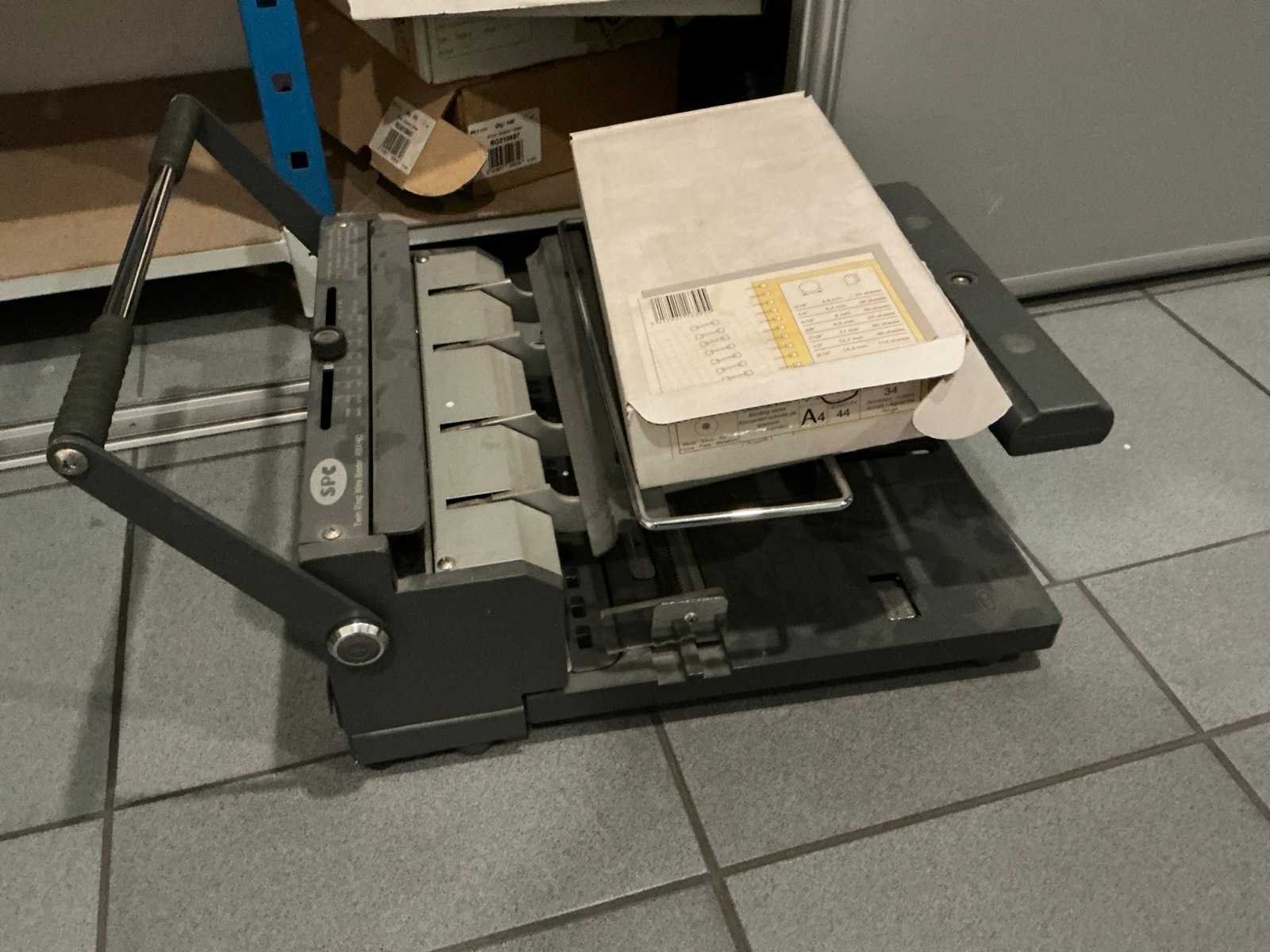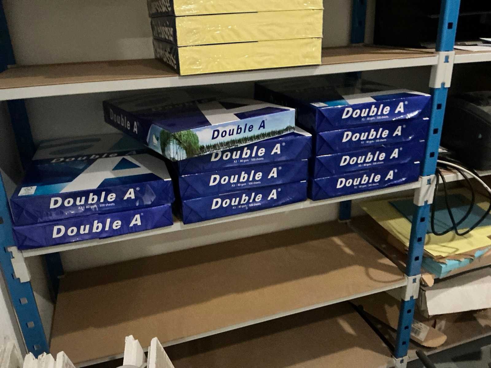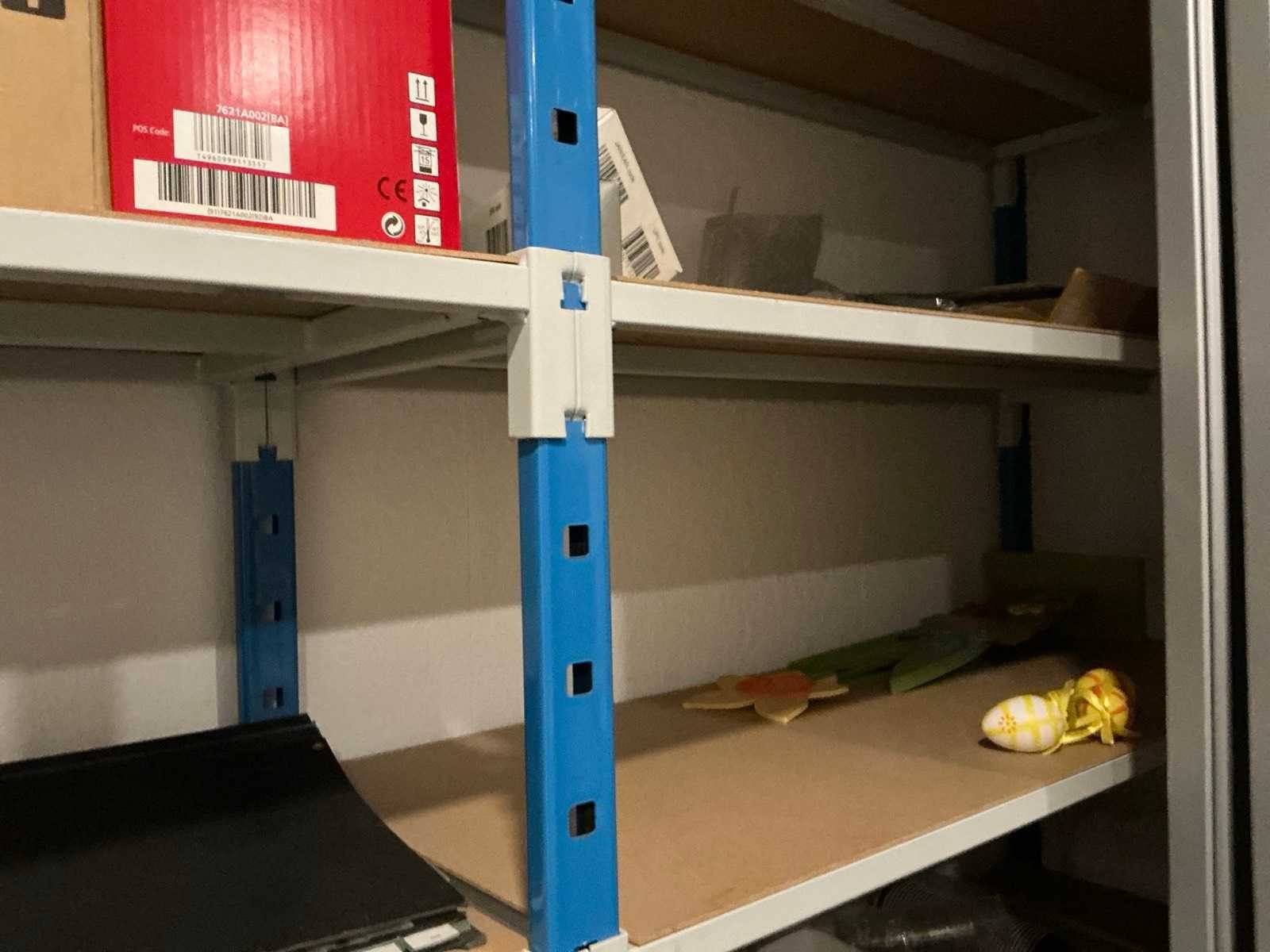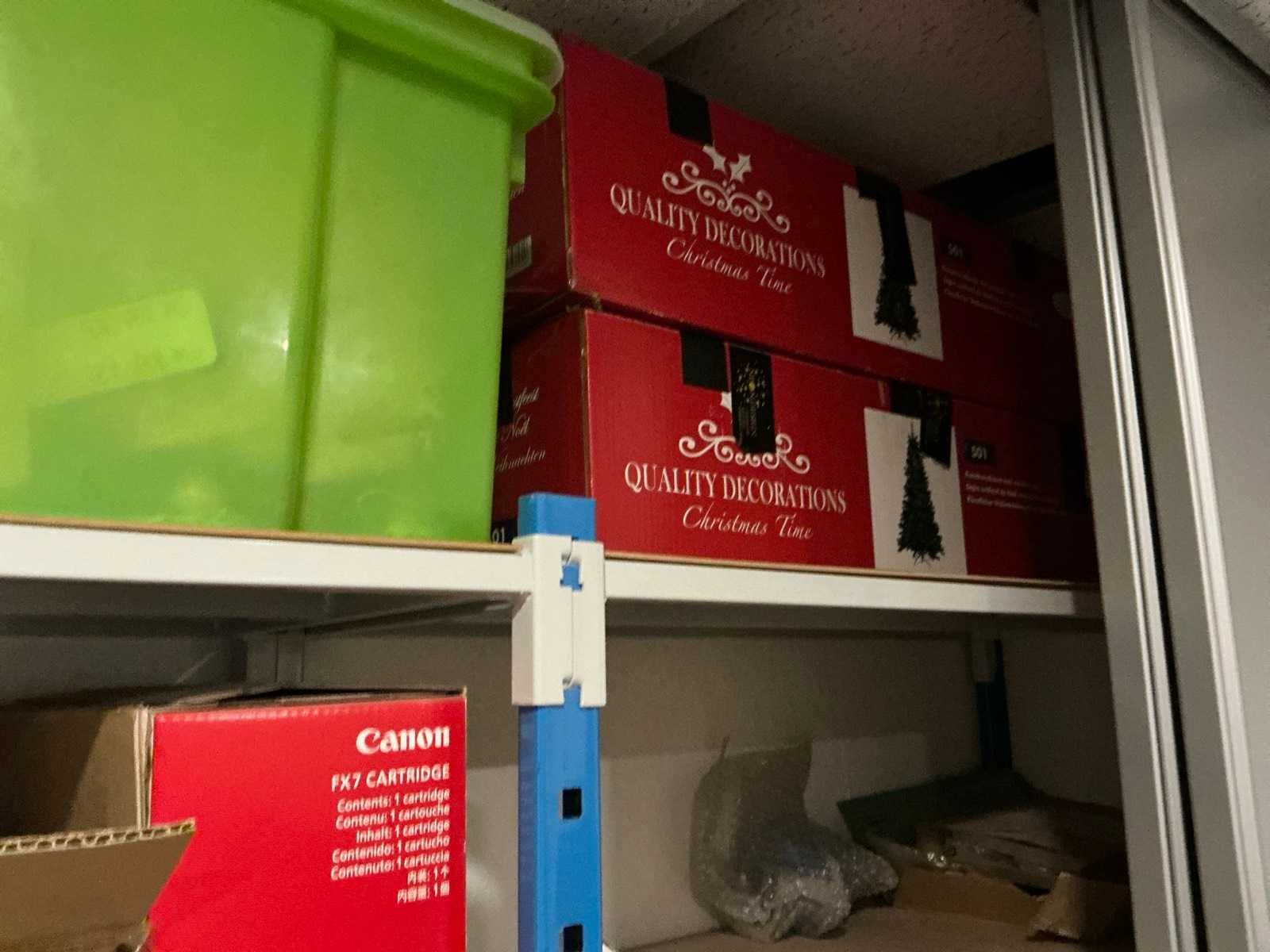 Met afmeting circa 300 x 40 x 200 cm, voorzien van 8 staanders en 27 leggers, compleet met inhoud bestaande uit enig printpapier waaronder A4 en A3, ticketprinter ZEBRA GK420T, inbindtoestel SPC RBX-60, diverse envellopes, 2x koffiezetapparaat PHILIPS, ventilator DOMO, wegwerpbekers, en seizoensgebonden decoratie, enzovoort Nee