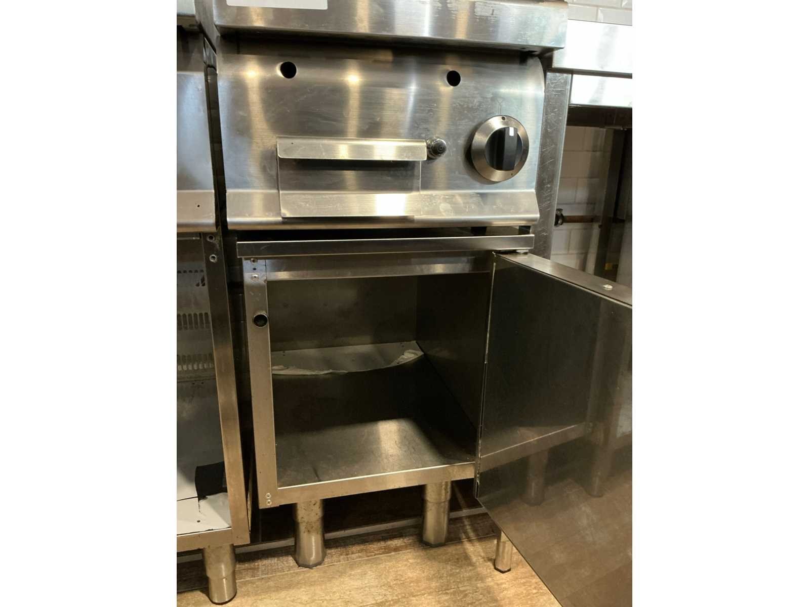 Compleet met RVS onderkast GgmGastro voorzien van 1 deur 40 x 62 x 63cm Nee Merk: Berto’s Gasgestookt: true Totale afmeting L: 400mm Totale afmeting Breedte: 700mm Totale afmeting Hoogte: 400mm