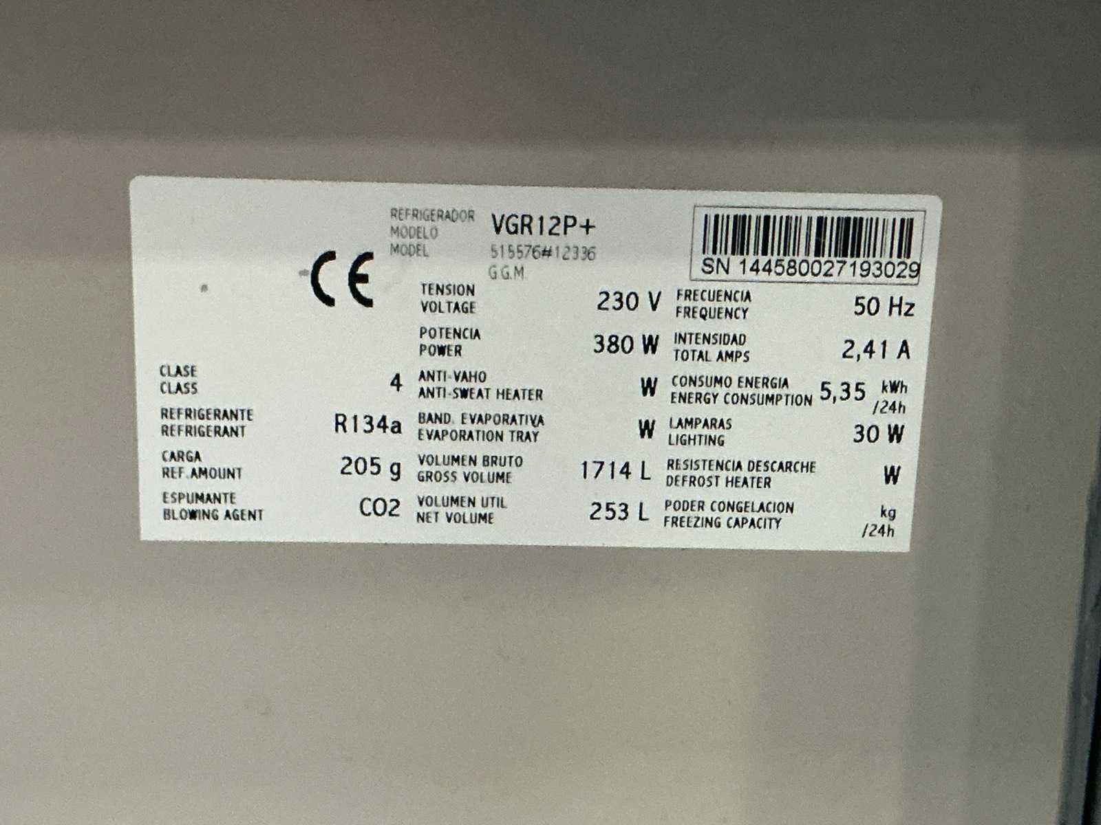 Nee Merk: Infrico Type: VGR12P+ Aansluiting: 230V Digitale uitlezing: true Totale afmeting L: 1310mm Totale afmeting Breedte: 1000mm Totale afmeting Hoogte: 1320mm