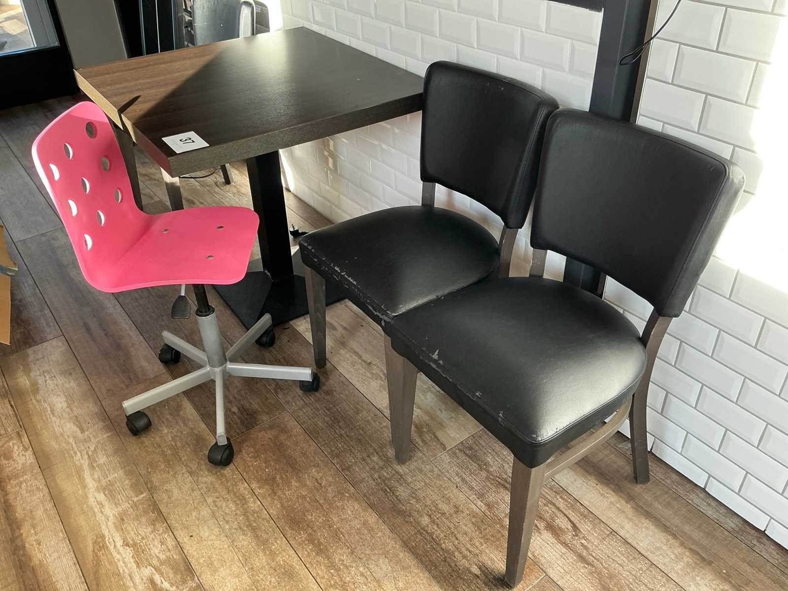 Waaronder bestaande uit: 2 houten bistrotafels voorzien van metalen onderstel 80 x 80cm, 1 dito statafel 80 x 80 x 120cm, 3 houten bijzetstoelen voorzien van kunstlederen bekleding, 1 verrijdbare kinderbureaustoel en 2 diverse metalen barkrukken Nee Type: Partij