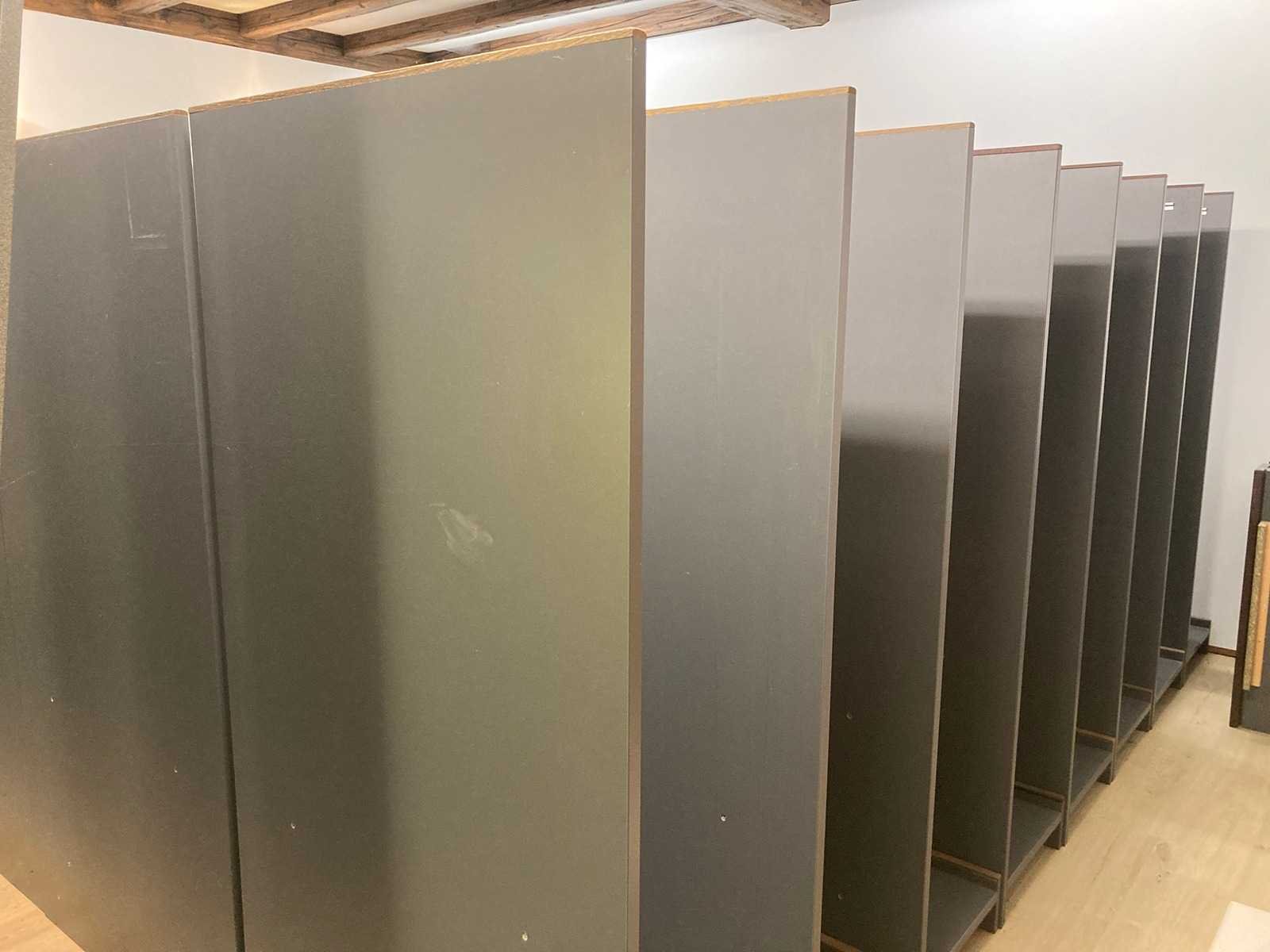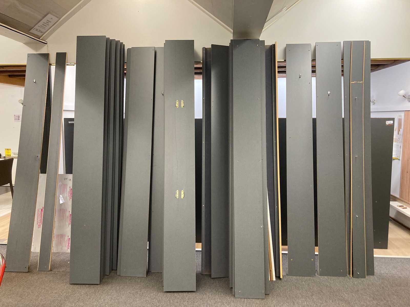 62 presentatie kasten (1 kast = B41xD80xH161cm) + stukken kasten (zie fotos) (zélf te demonteren bij ophaling) Nee
