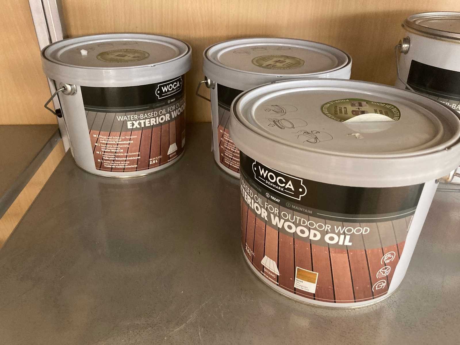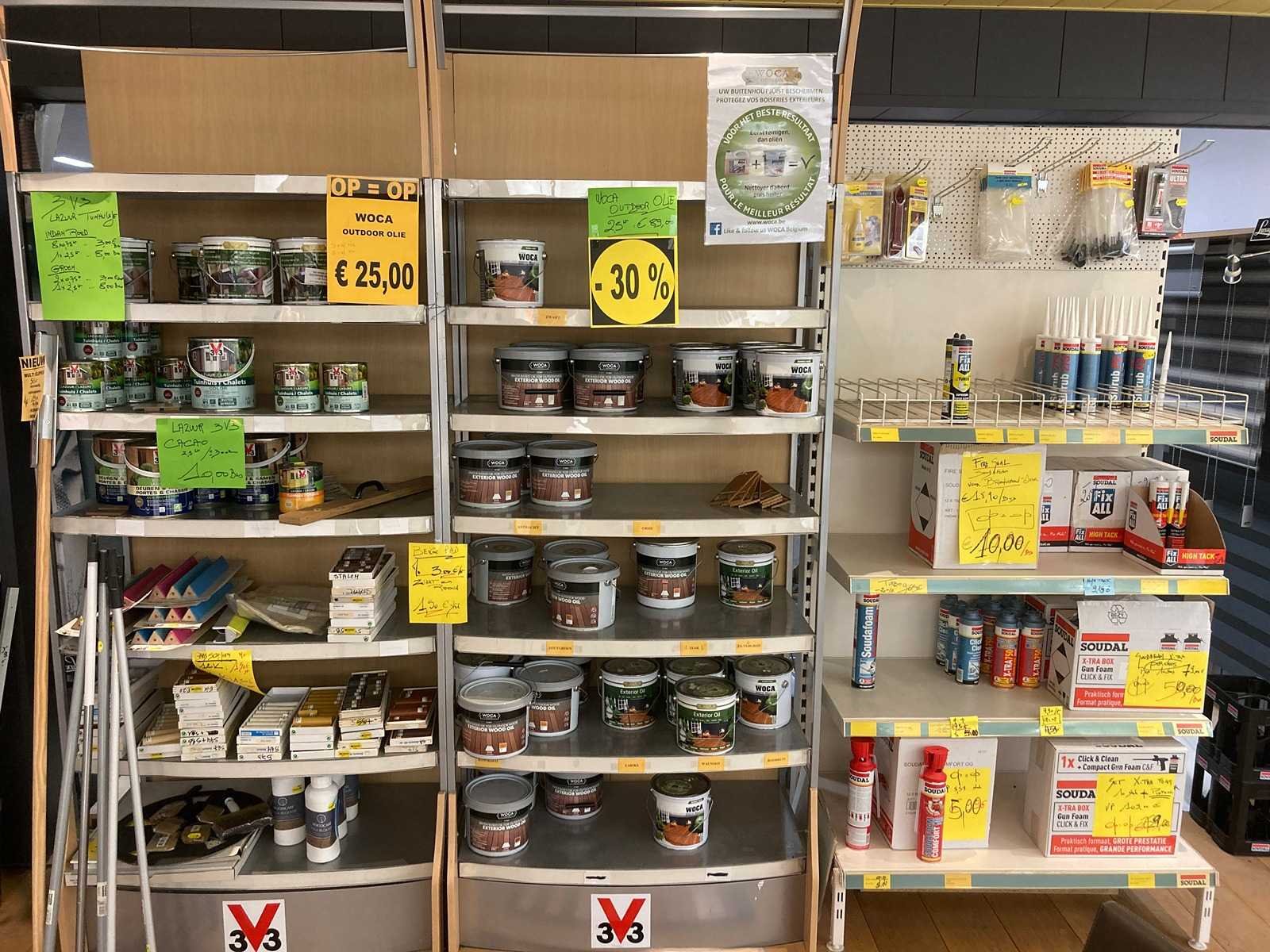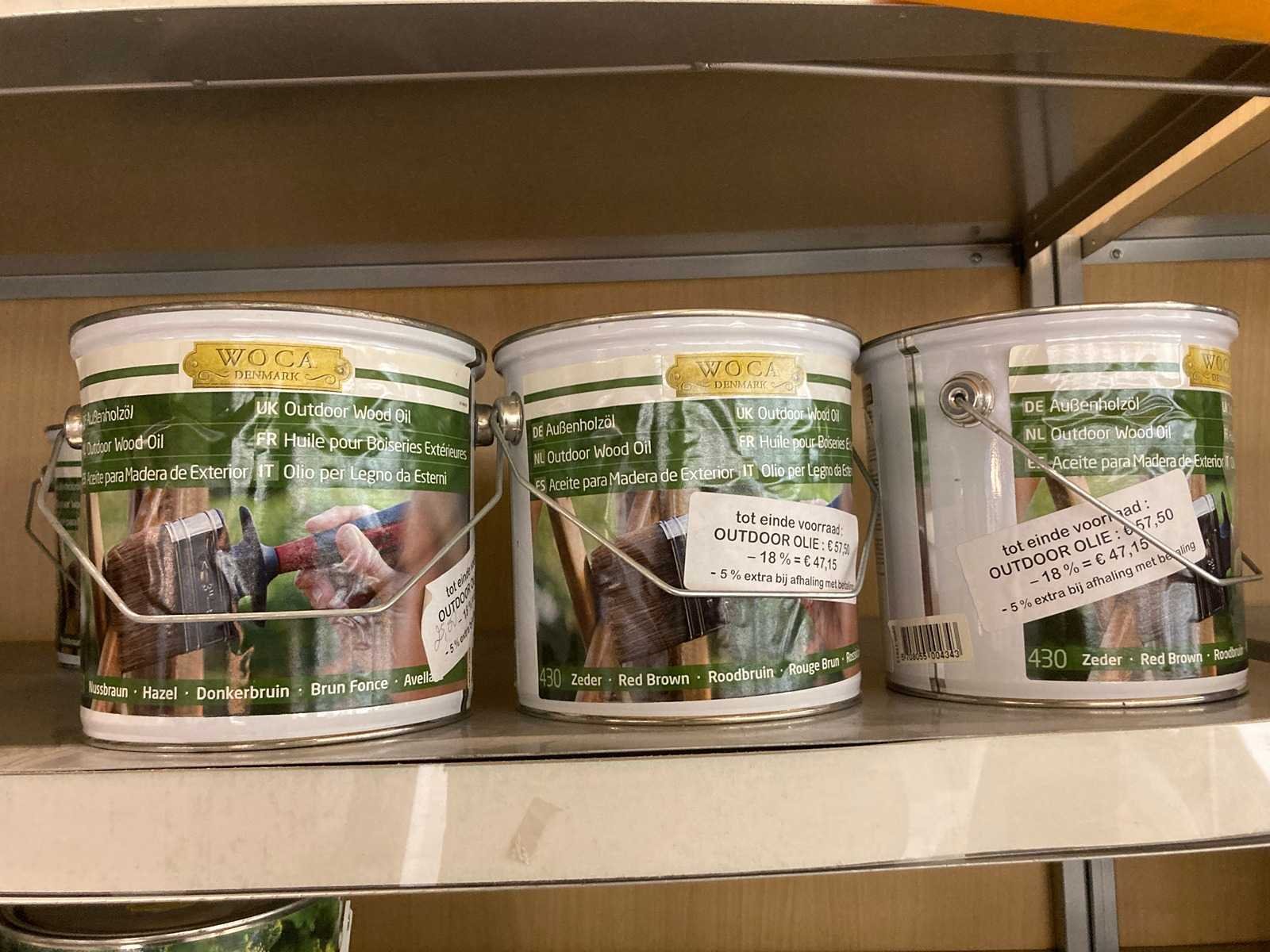 Restpartij hoge kwaliteit onderhoudsproducten : v3v vernissen, wocca olien, wax, sillicone, lijm etc. (zie fotos) Nee
