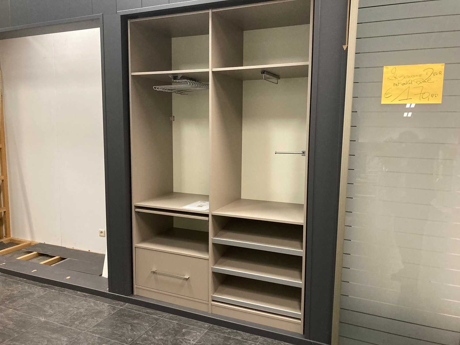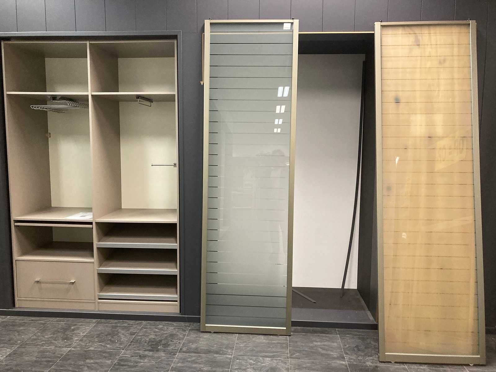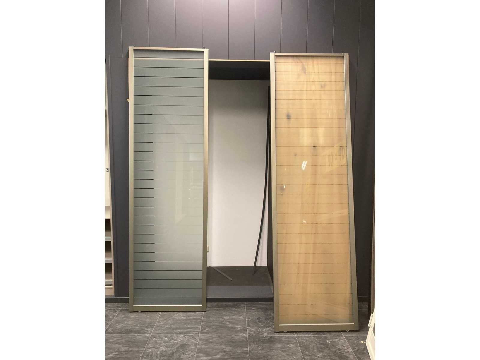 Dressing en 2 glazen separatie deuren. Dressing afmetingen : zie foto. Afmeting per deur : B71,5xH242xD3cm. Dressing zélf te demonteren bij ophaling. Nee