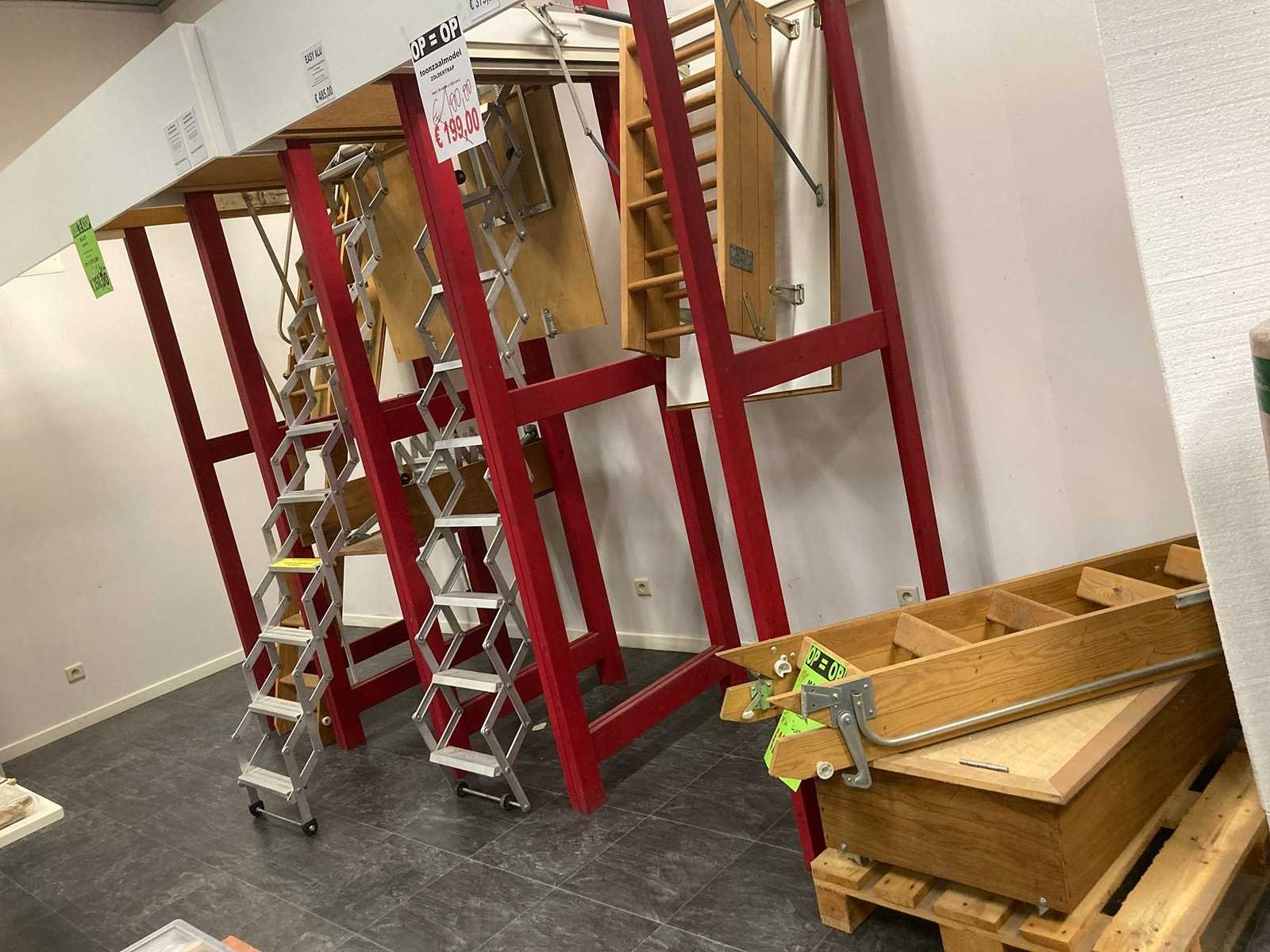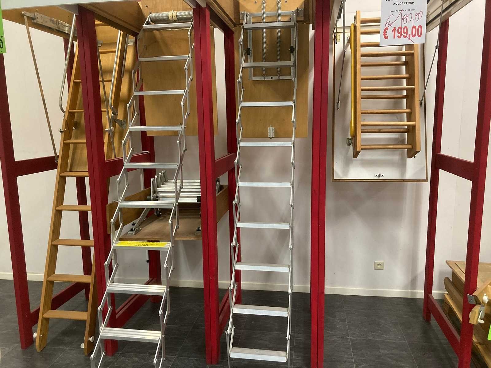 Partij zoldertrappen : 1 nieuw in verpakking en 5 demo modellen (zelf te demonteren bij ophaling) Nee