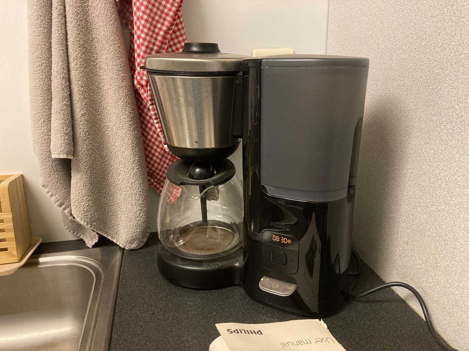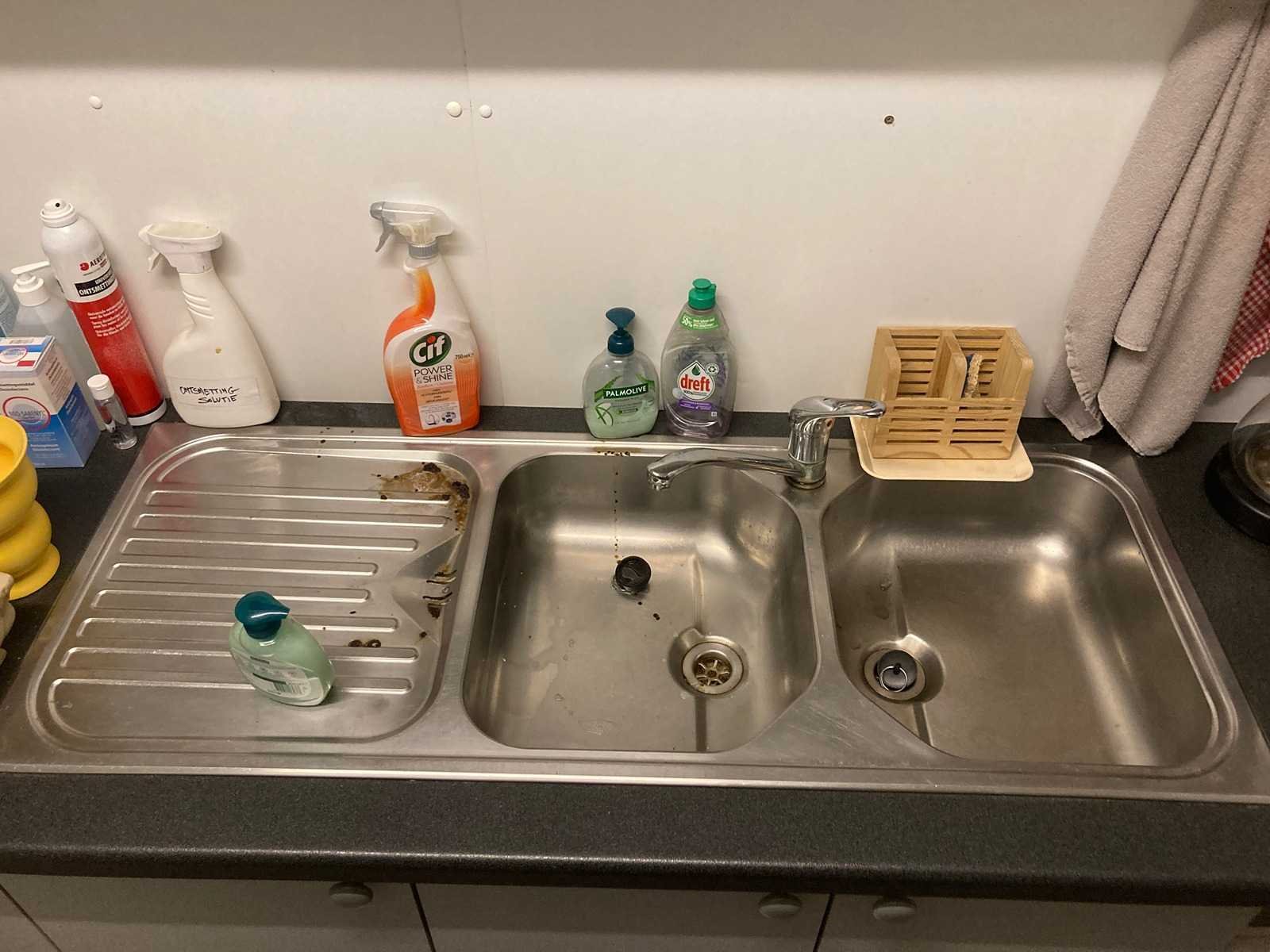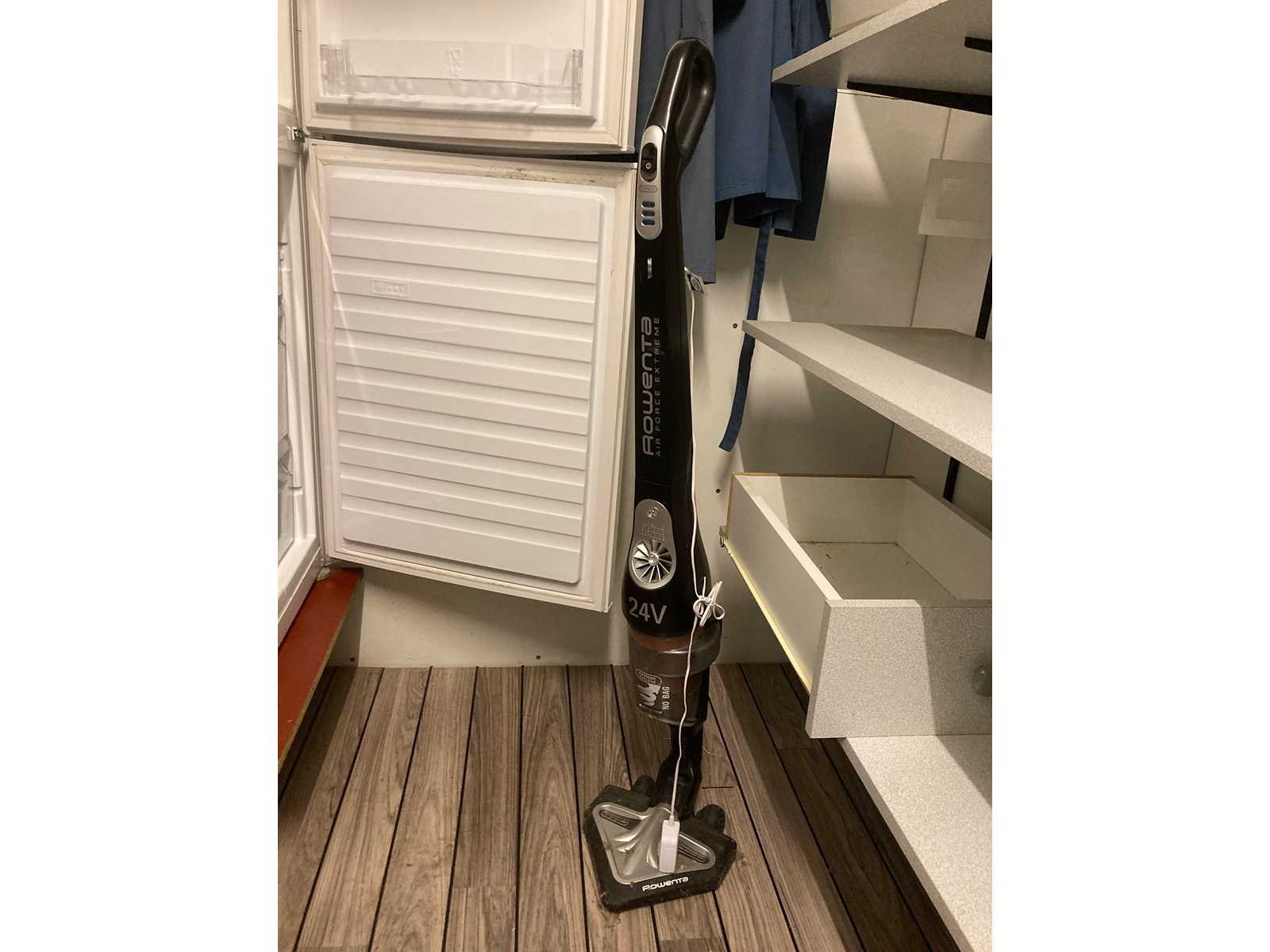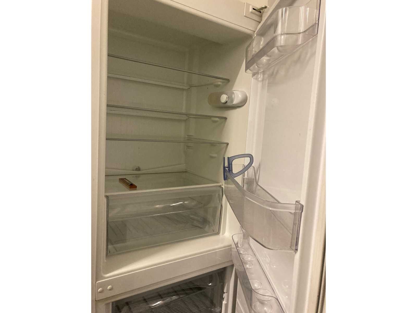 Keukentoebehoren : 1 ijskast met groot diepvries vak, 1 microgolf oven, 1 koffiemachine, thermos, handoeken, glazen en borden, wand opbergsysteem met planken (zelf te demonteren bij ophaling). Wand opbergsysteem : 8 latten om op de muur te bevestigen, 28 plankenhouders, 5 planken van L250xD40cm Nee