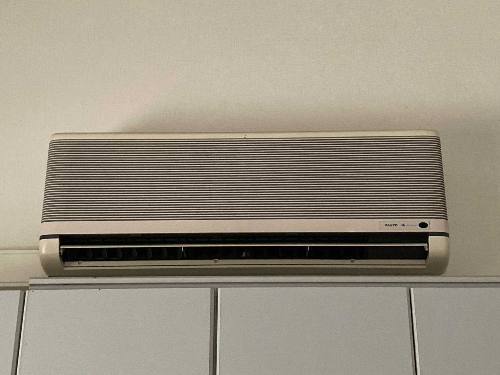 Aircos Sanyo High Efficiency 2x binnen unit => zélf te demonteren bij ophaling, en ze hangen hoog op de muur op het 1ste verdiep van het gebouw. Nee Merk: Sanyo