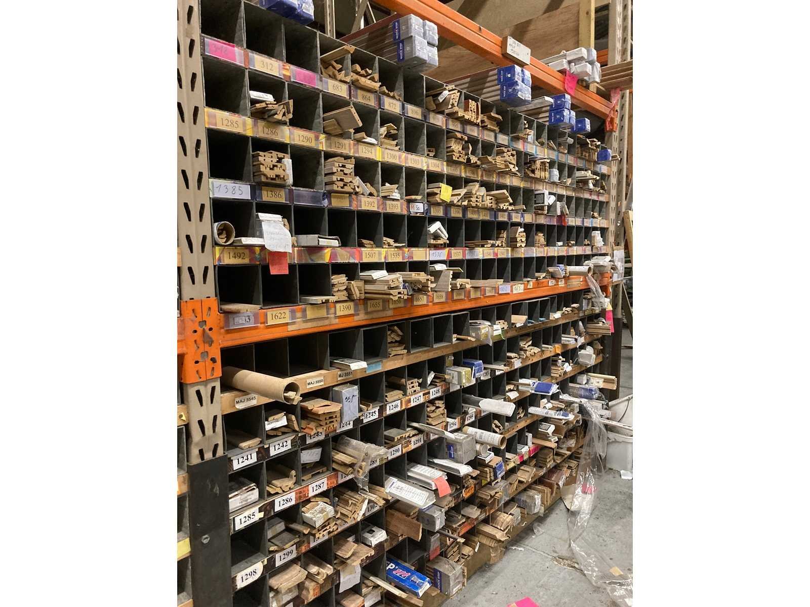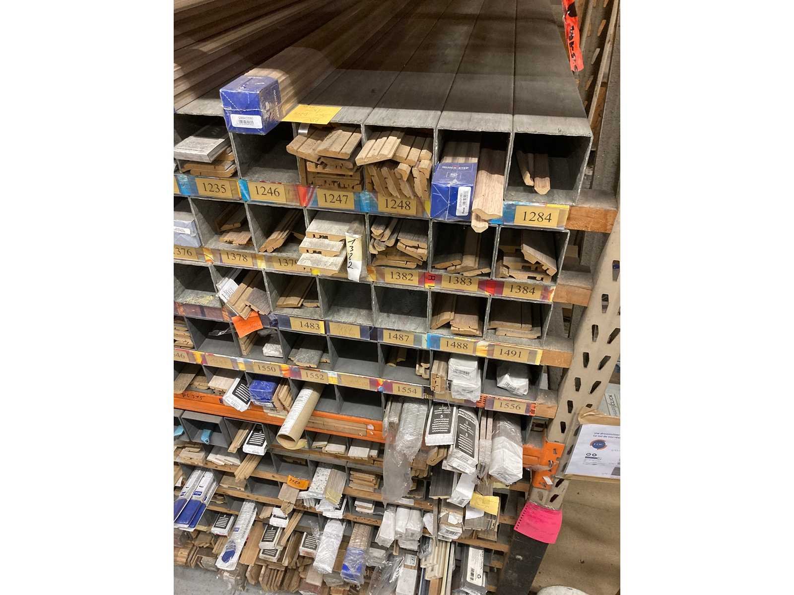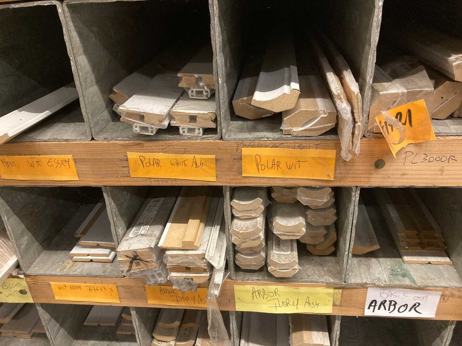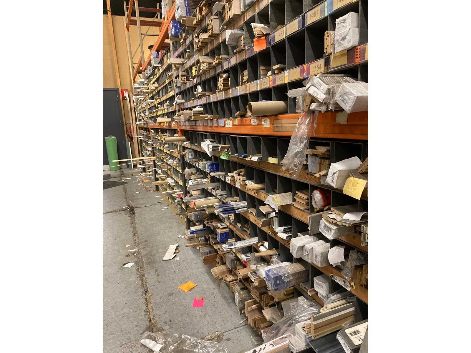 Groot lot profielen en plinten (zie fotos) Met organisatie systeem : 792 pvc kokers van 12x12x250a260cm + 66x PVC kokers van 73x12x12cm (magazijnrek niet inbegrepen, die wordt in een apart lot verkocht) => zélf te demonteren bij ophaling Nee