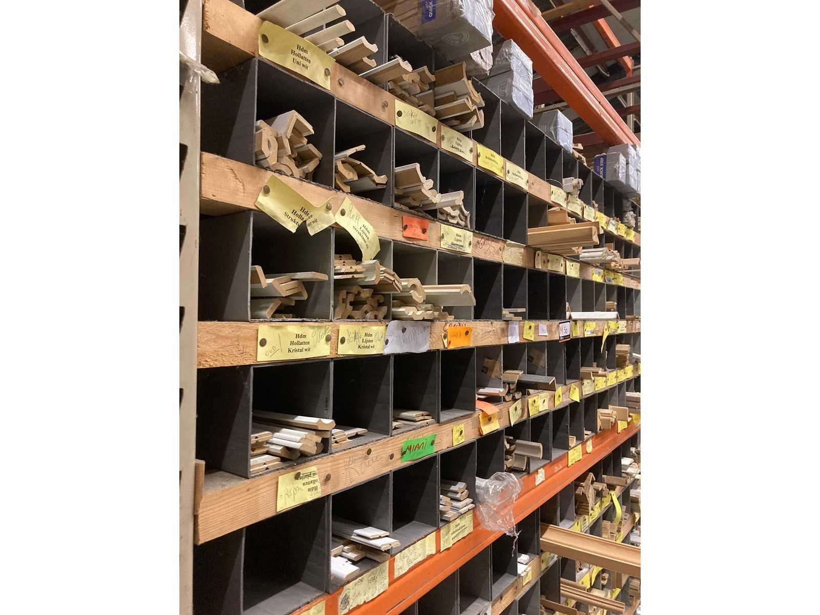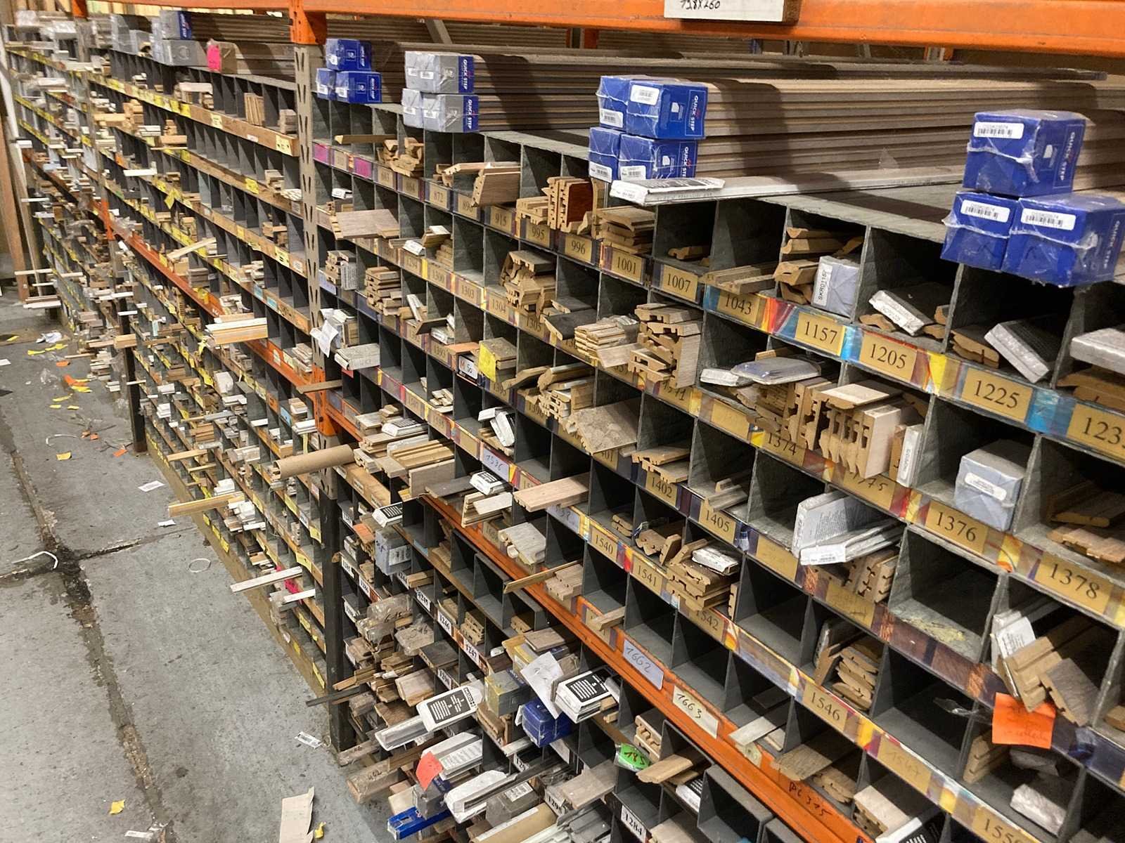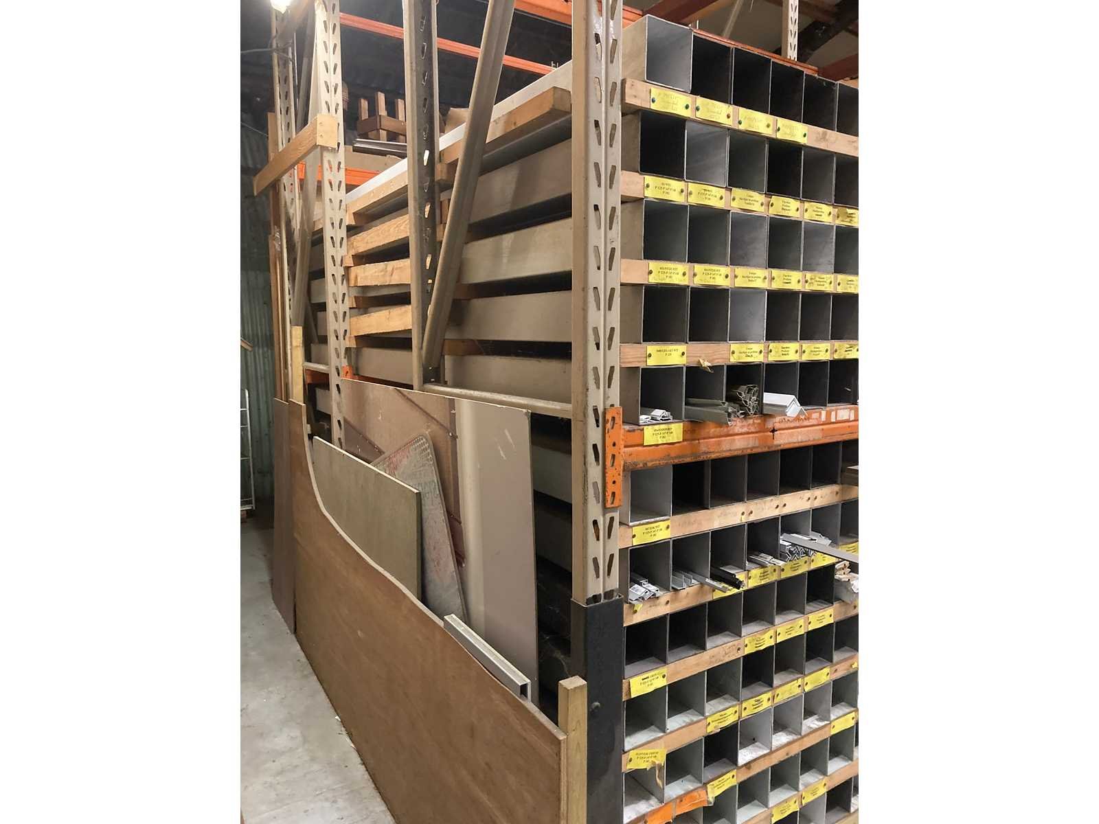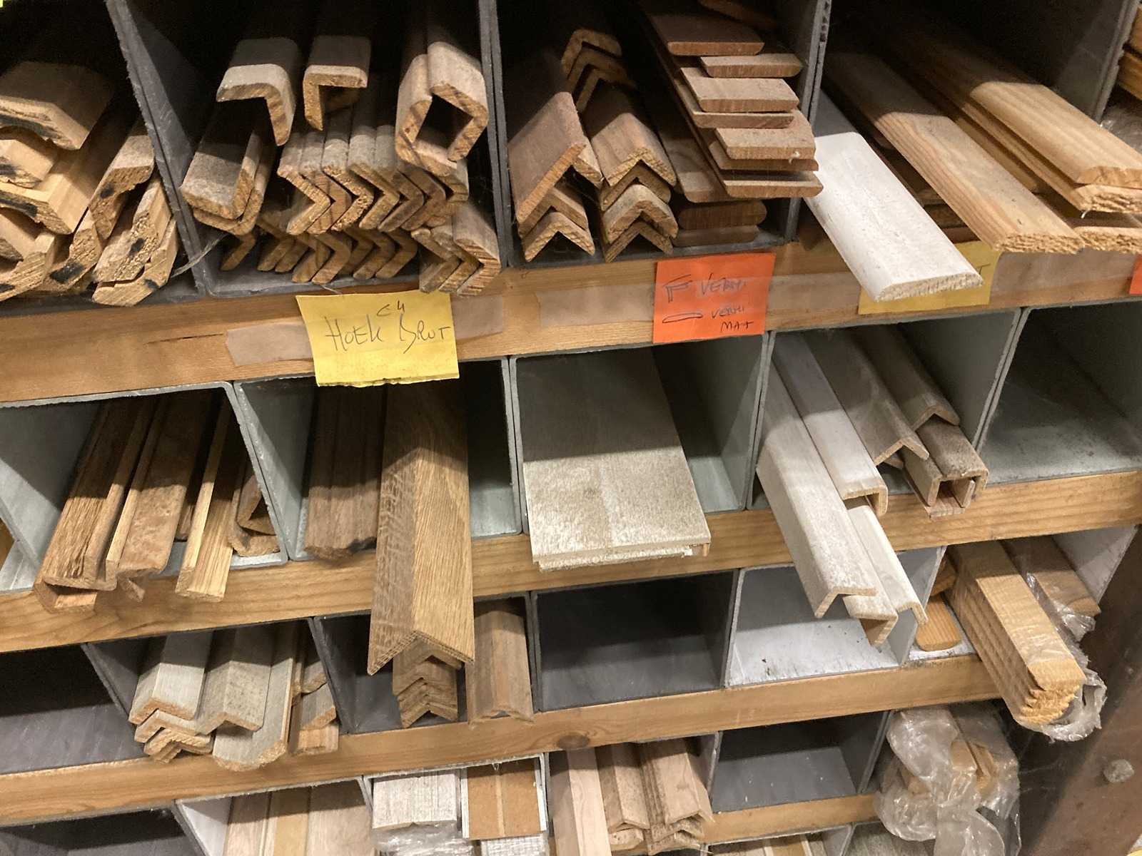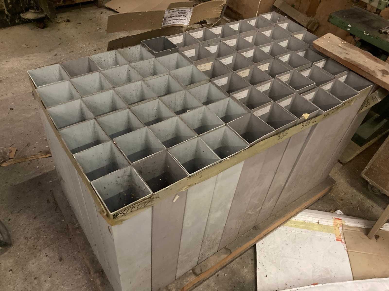 Groot lot profielen en plinten (zie fotos) Met organisatie systeem : 792 pvc kokers van 12x12x250a260cm + 66x PVC kokers van 73x12x12cm (magazijnrek niet inbegrepen, die wordt in een apart lot verkocht) => zélf te demonteren bij ophaling Nee