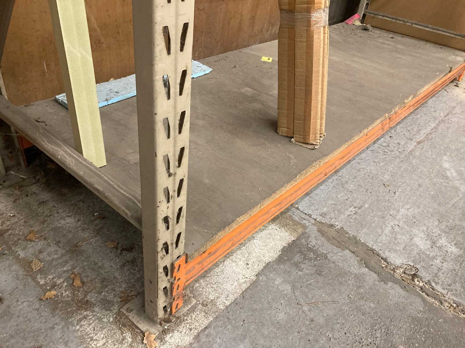 Magazijn rekken : 5 staanders (440x91cm) en 26 liggers (270cm) (inhoud op fotos niet inbegrepen, wordt in apart lot verkocht) => zélf te demonteren bij ophaling. Nee Aantal staanders: 5 Aantal liggers: 26