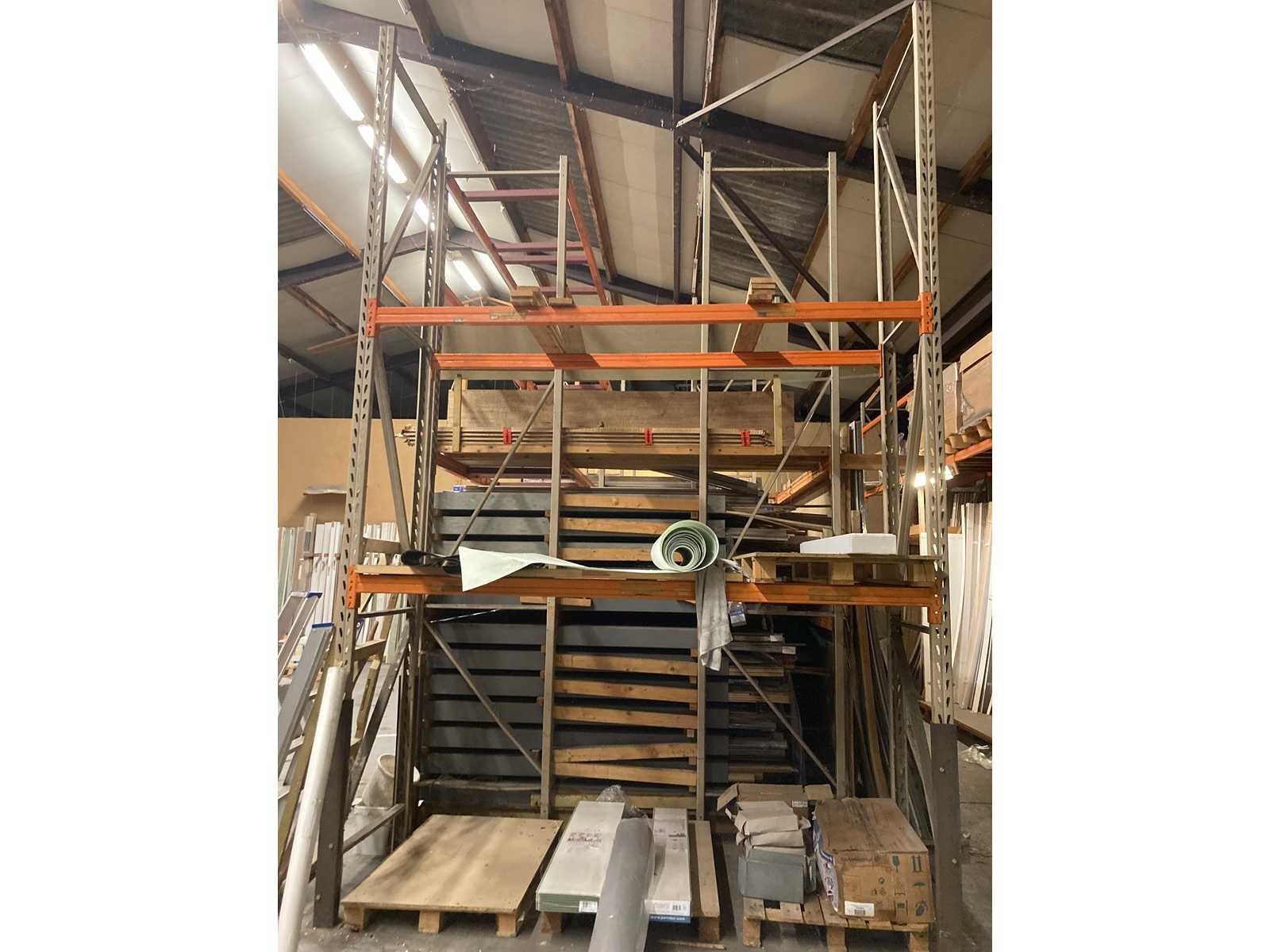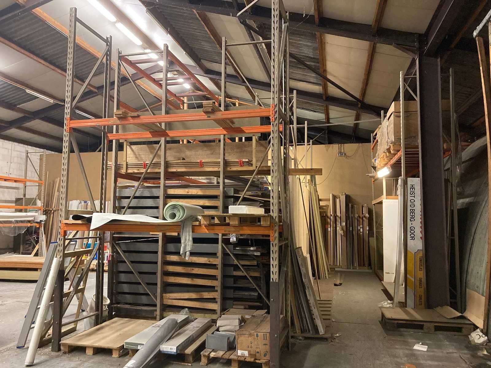 Magazijn rekken : 9 staanders (440x91cm) en 18 liggers (270cm) (inhoud op fotos niet inbegrepen, wordt in apart lot verkocht) => zélf te demonteren bij ophaling. Nee Aantal staanders: 9 Aantal liggers: 18