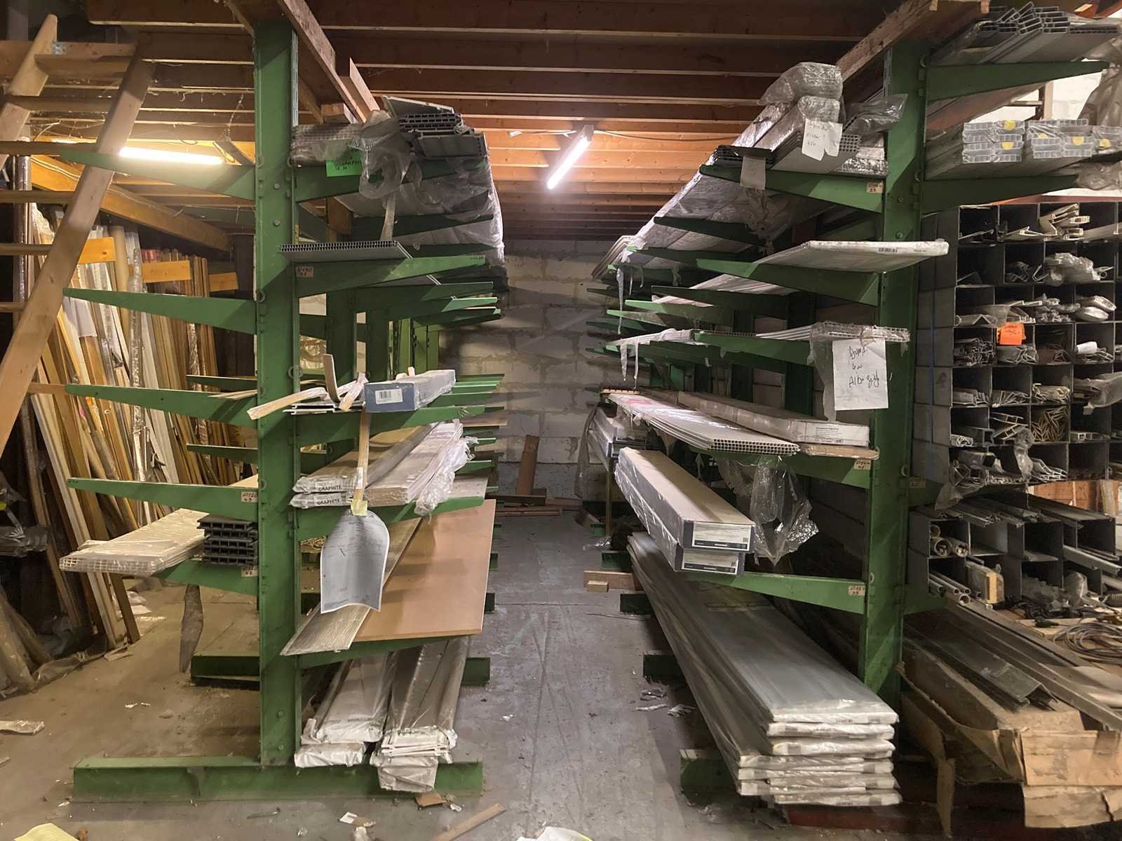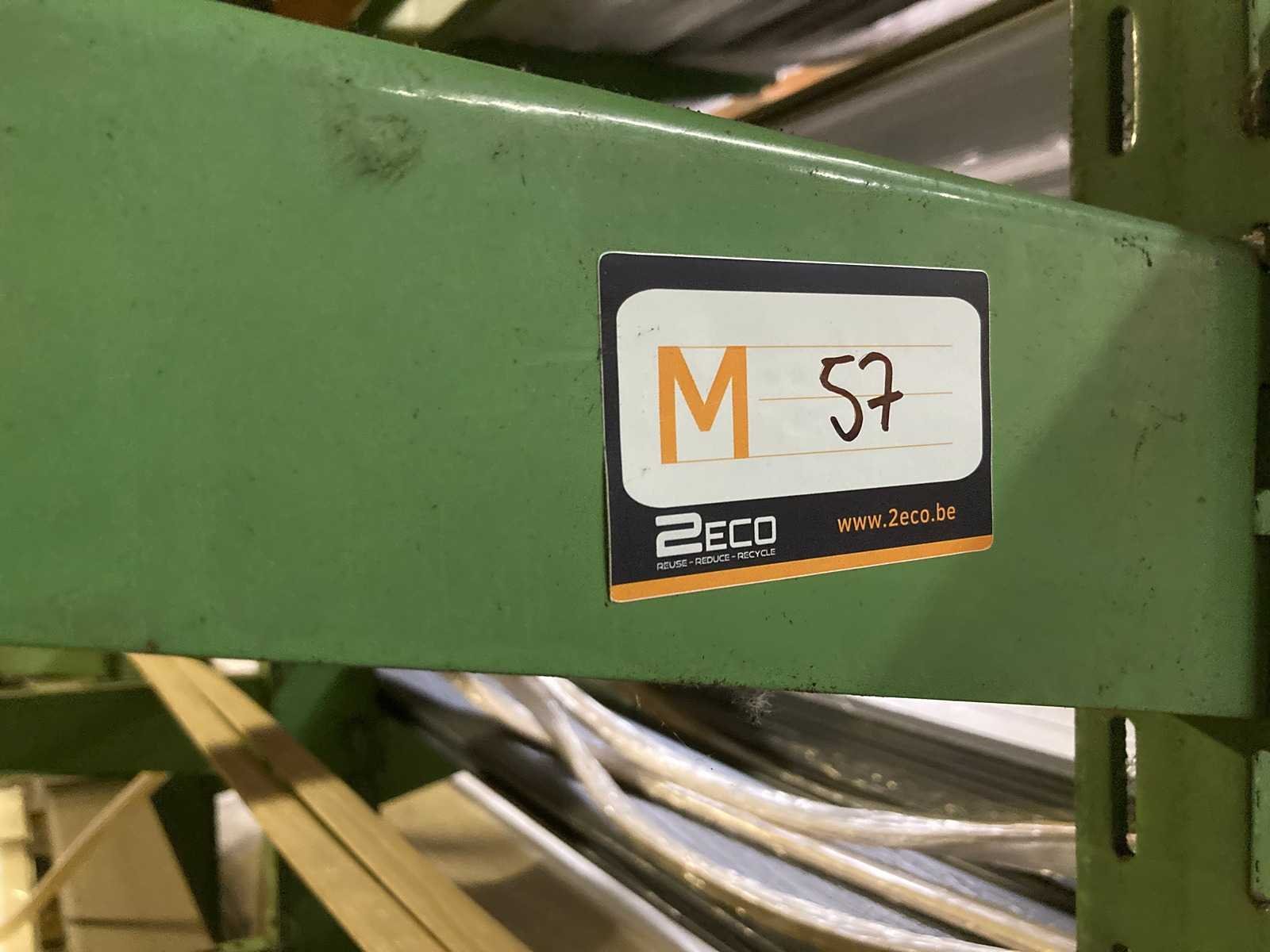 Magazijn rekken voor lange voorwerpen : 12 staanders (248x130cm) en 109 liggers/houders (60cm lang zonder pinnen) - (inhoud op fotos niet inbegrepen) => zélf te demonteren bij ophaling. !! Bij demontage moet de houten mezzanine structuur die op de rekken rust ook afgebroken worden !! Nee Aantal staanders: 12 Aantal liggers: 109