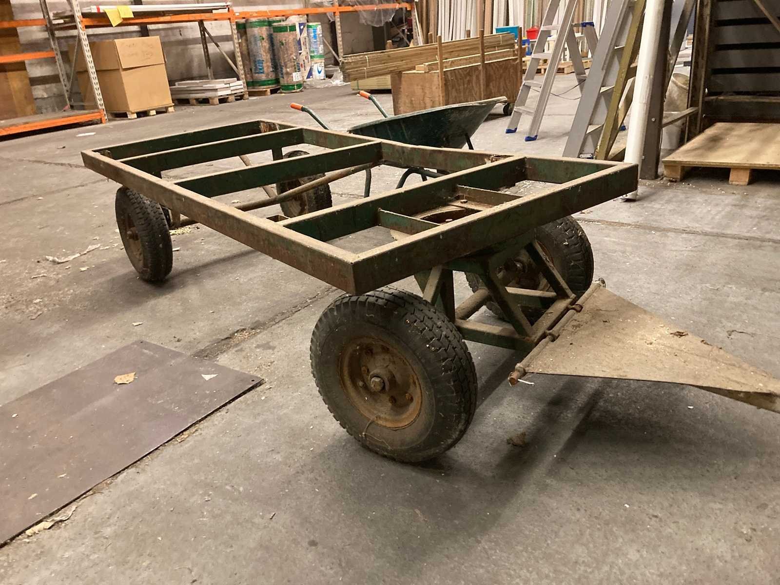 2 metalen aanhangwagens (240x130cm oppervlakte) en 1x kruiwagen Nee