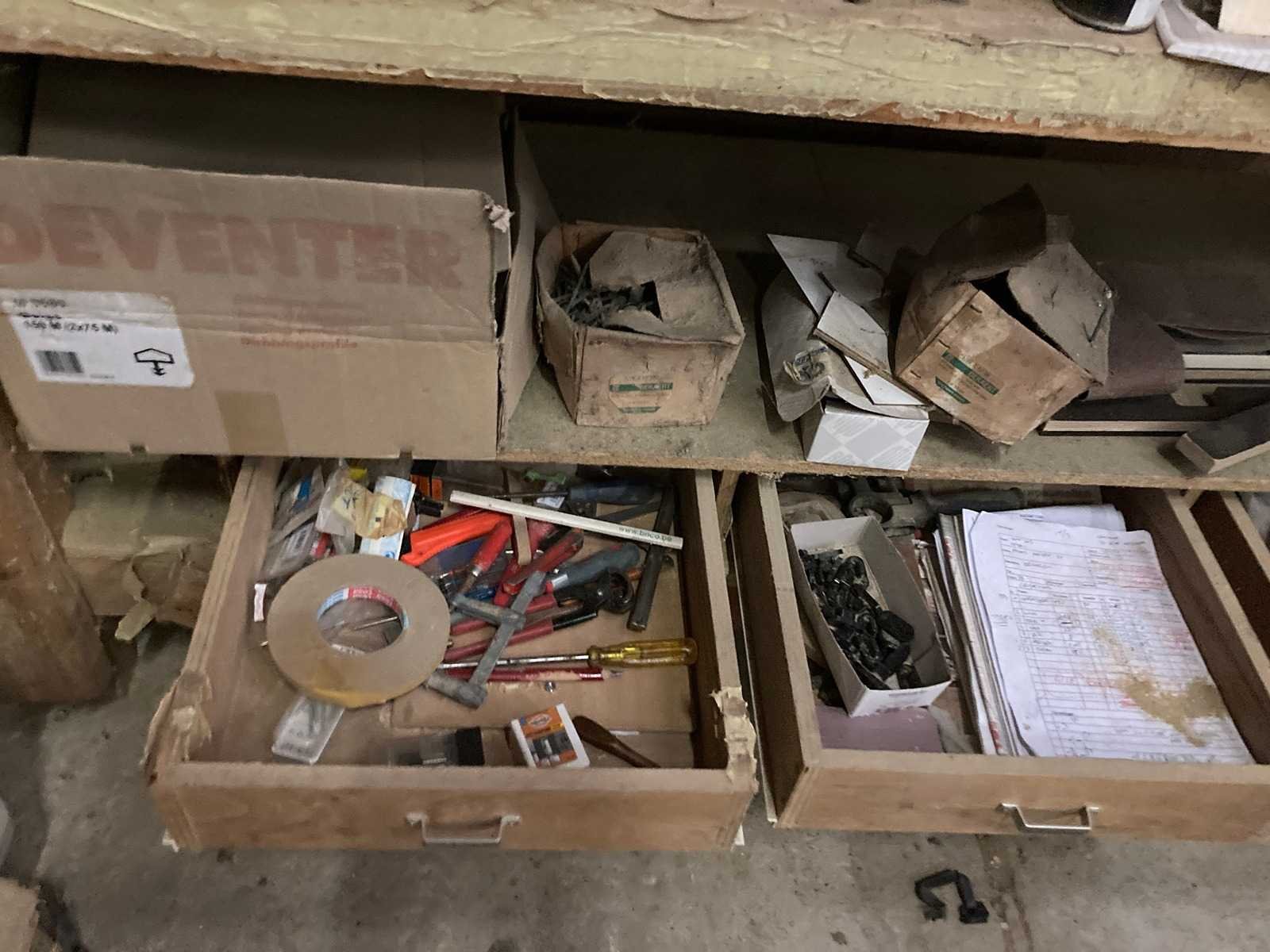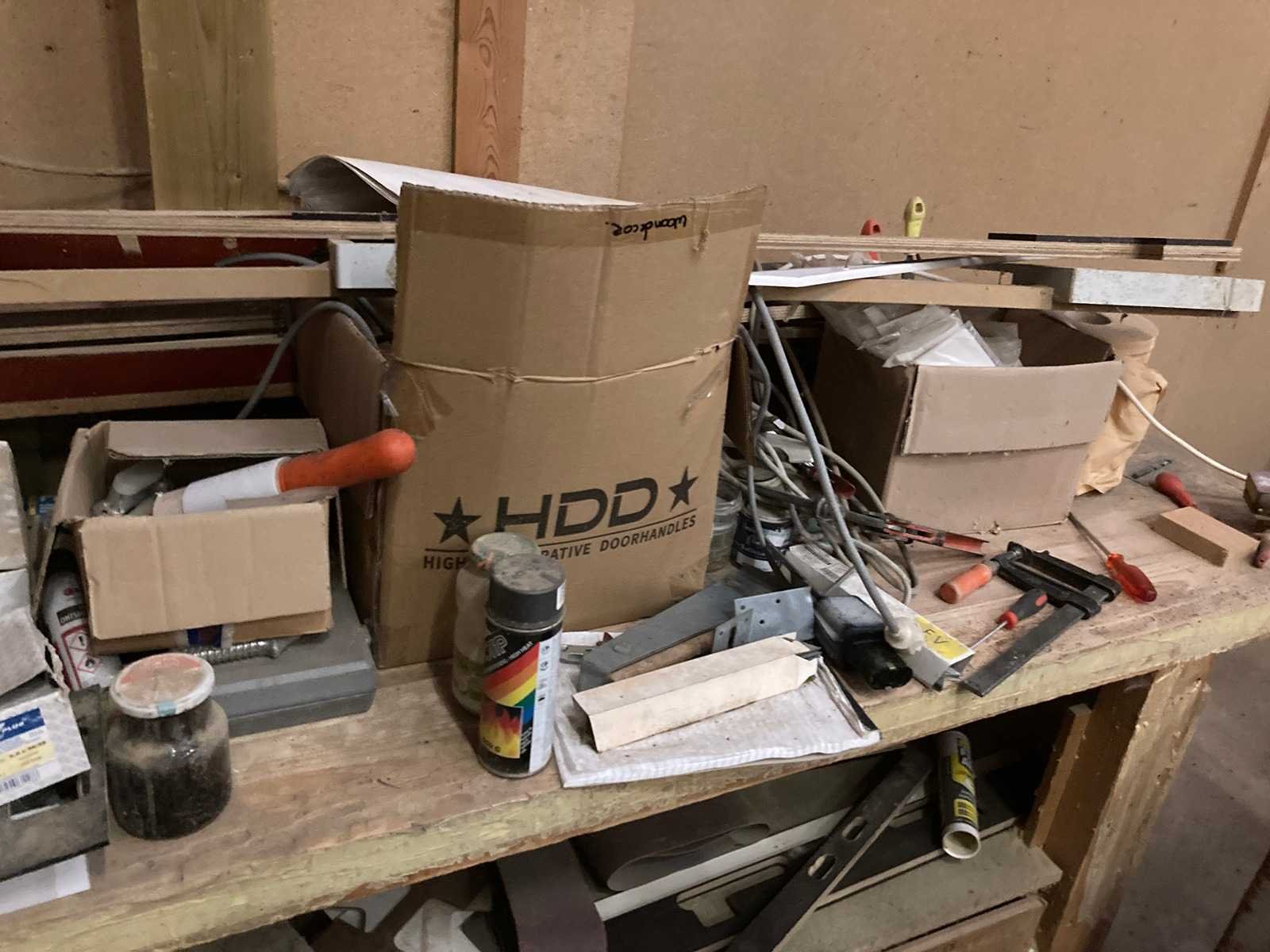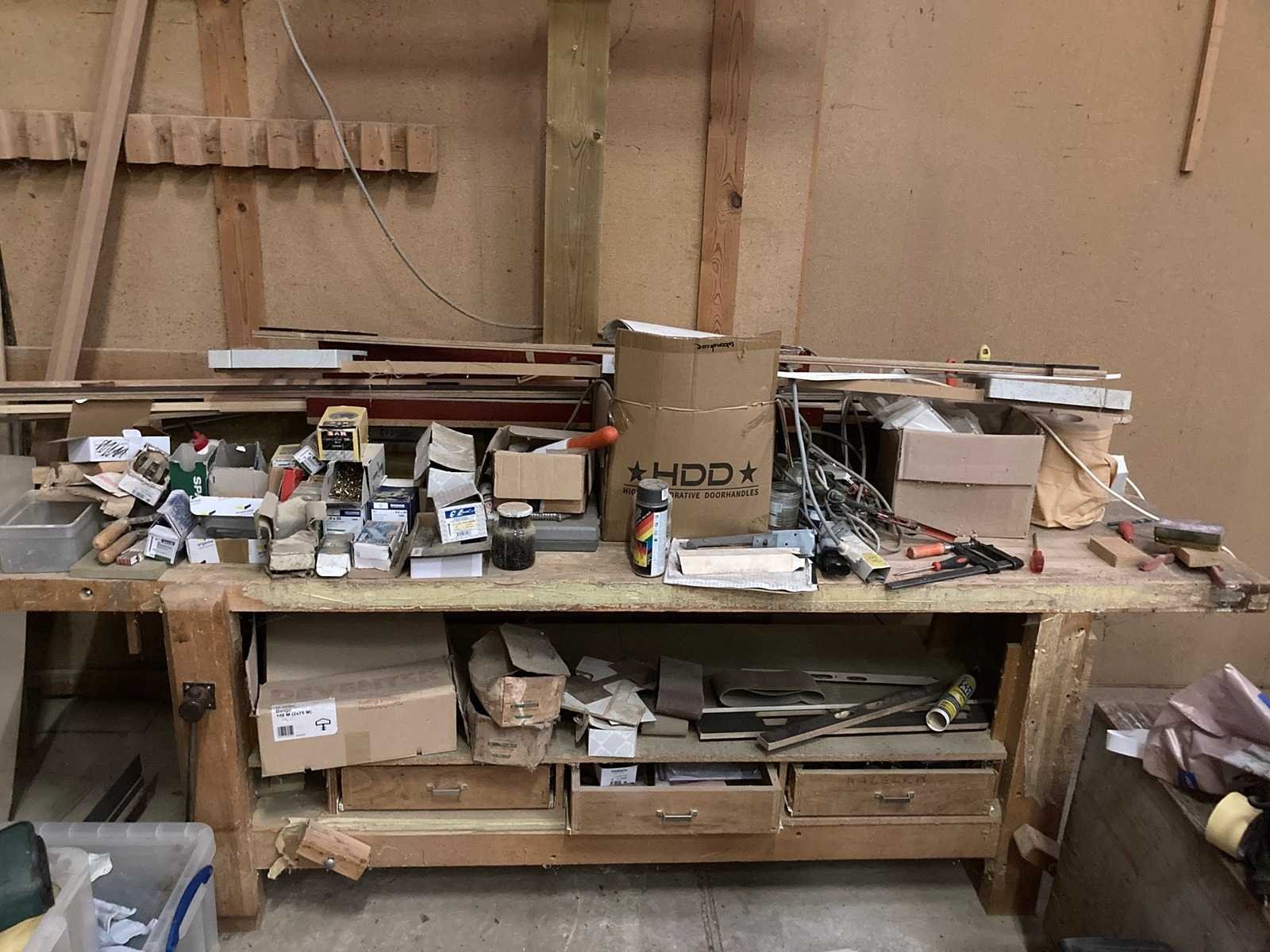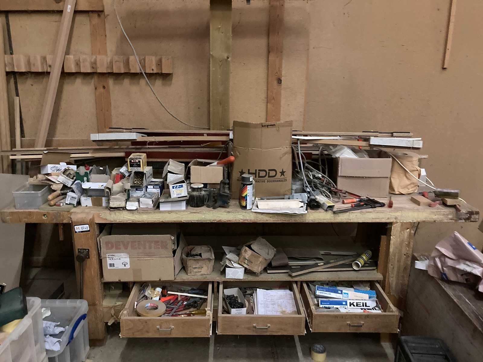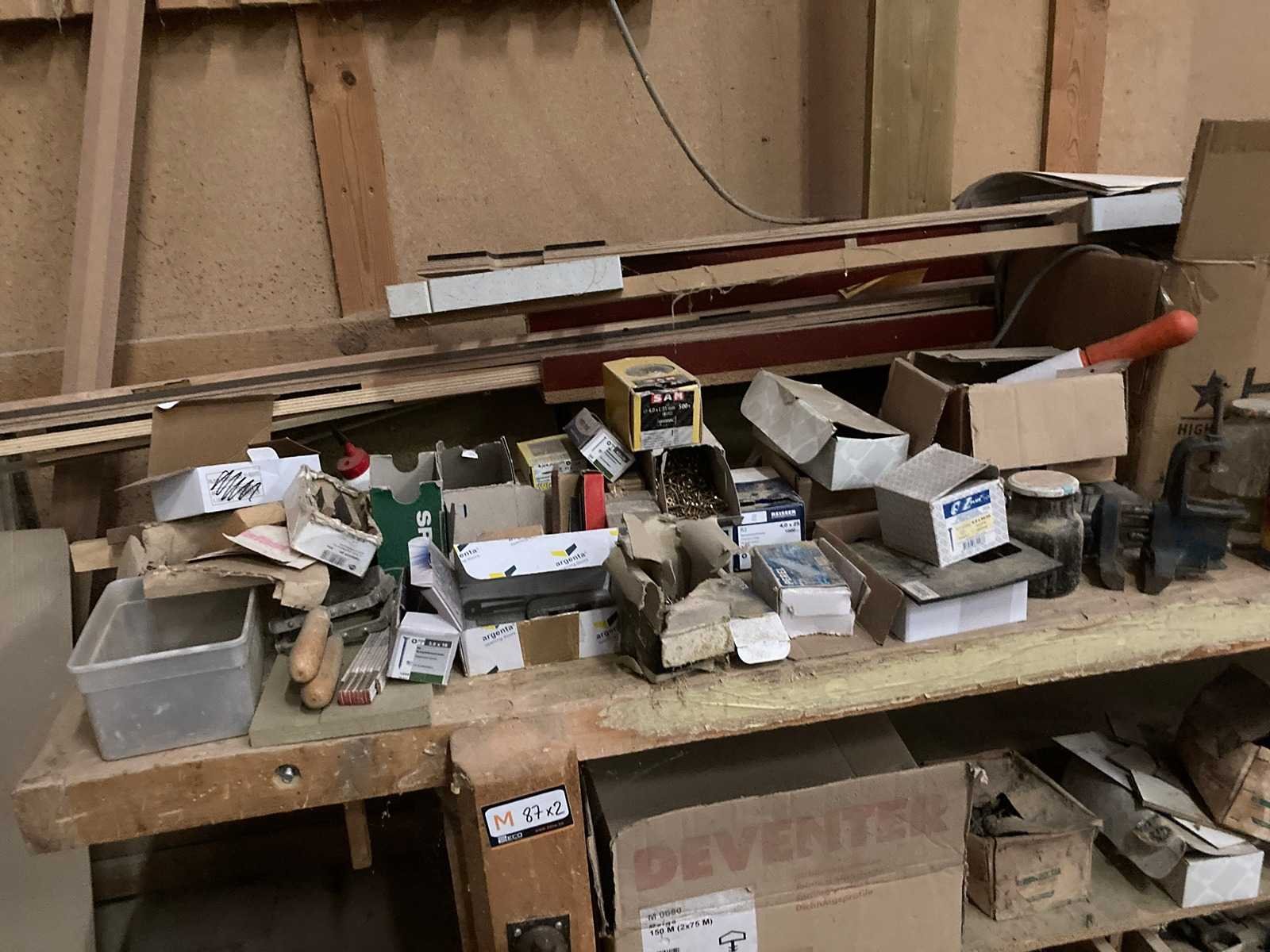 2 werkbanken (inlusief inhoud, zie foto) 266x84x87cm (=> zélf te demonteren bij ophaling) Nee