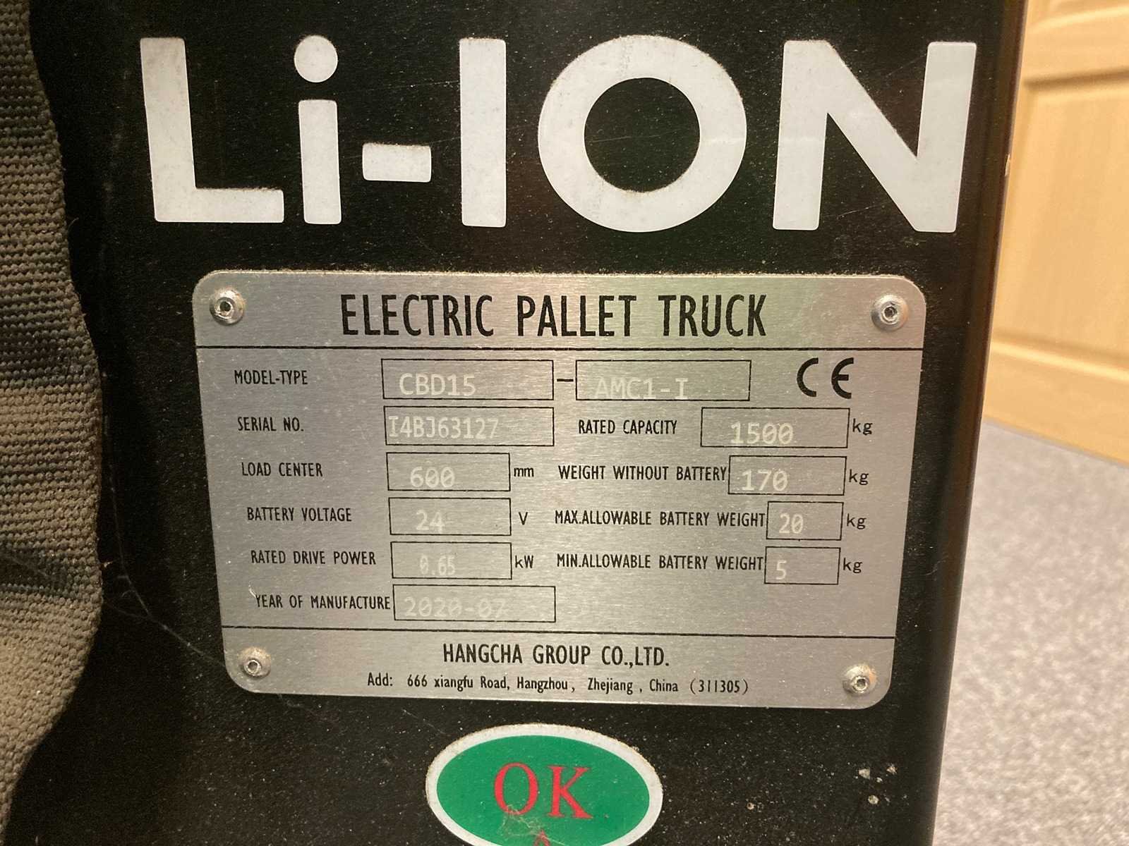Electrische transpallet Hangcha CBD15 (inclusief lader) – load center 600mm – battery 24V – drive power 0,65 kW – rated capacity 1500kg Nee Merk: Hangcha Type: CBD15