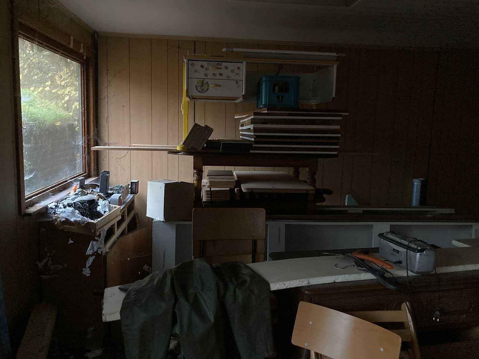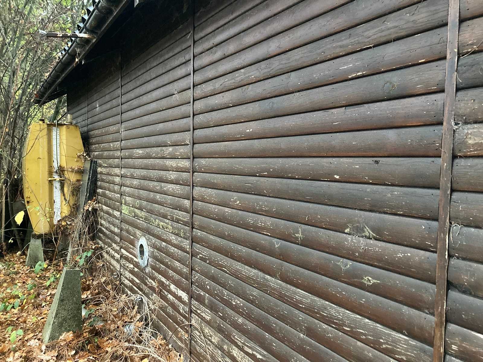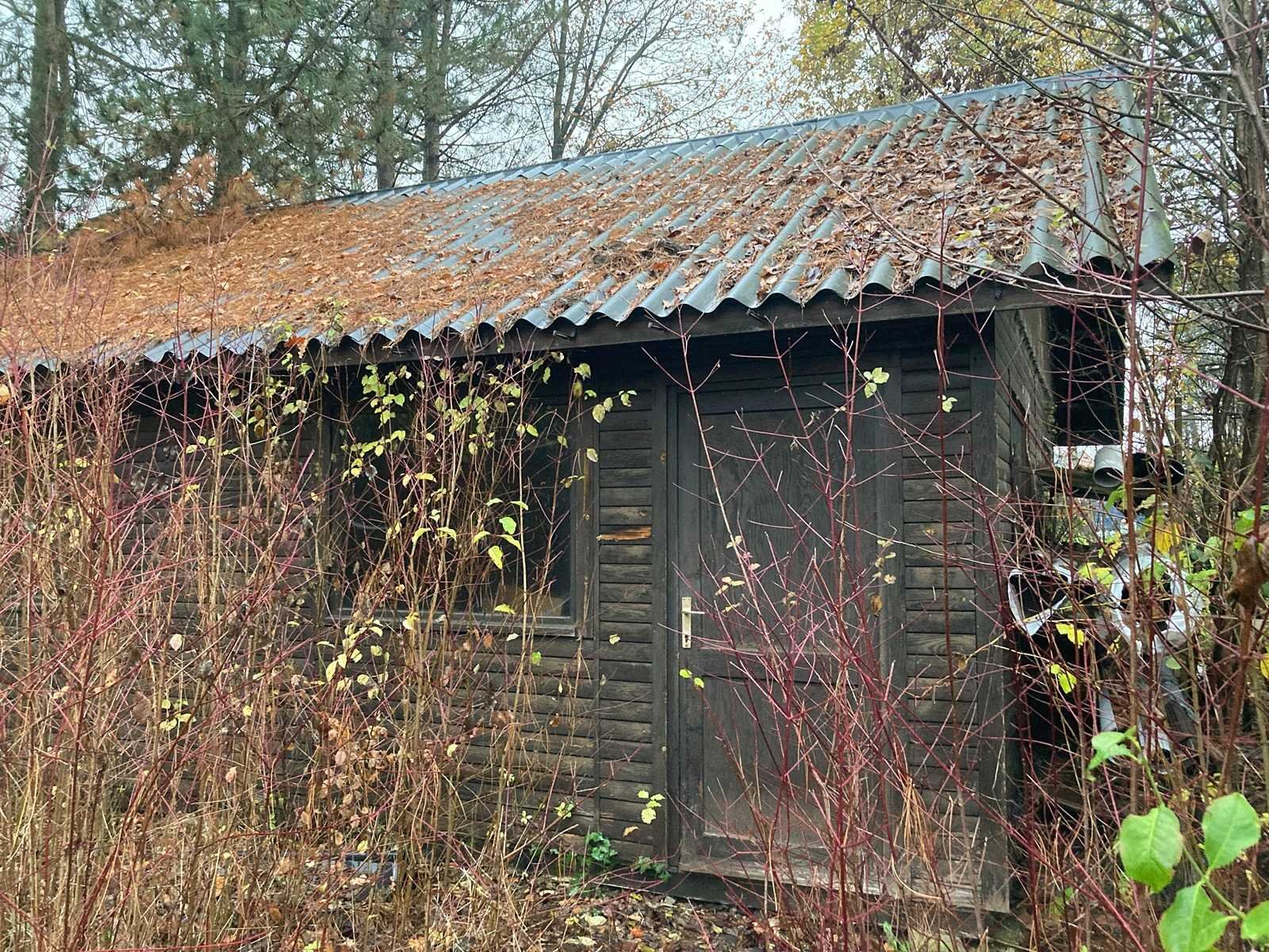 Houten tuinhuis/chalet => Zelf te demonteren bij afhaling lengte muren 815 + 60cm afdak aan beide kanten Breedte muren 604 +40cm overhang dak aan beide kanten Hoogte 420-260cm Nee