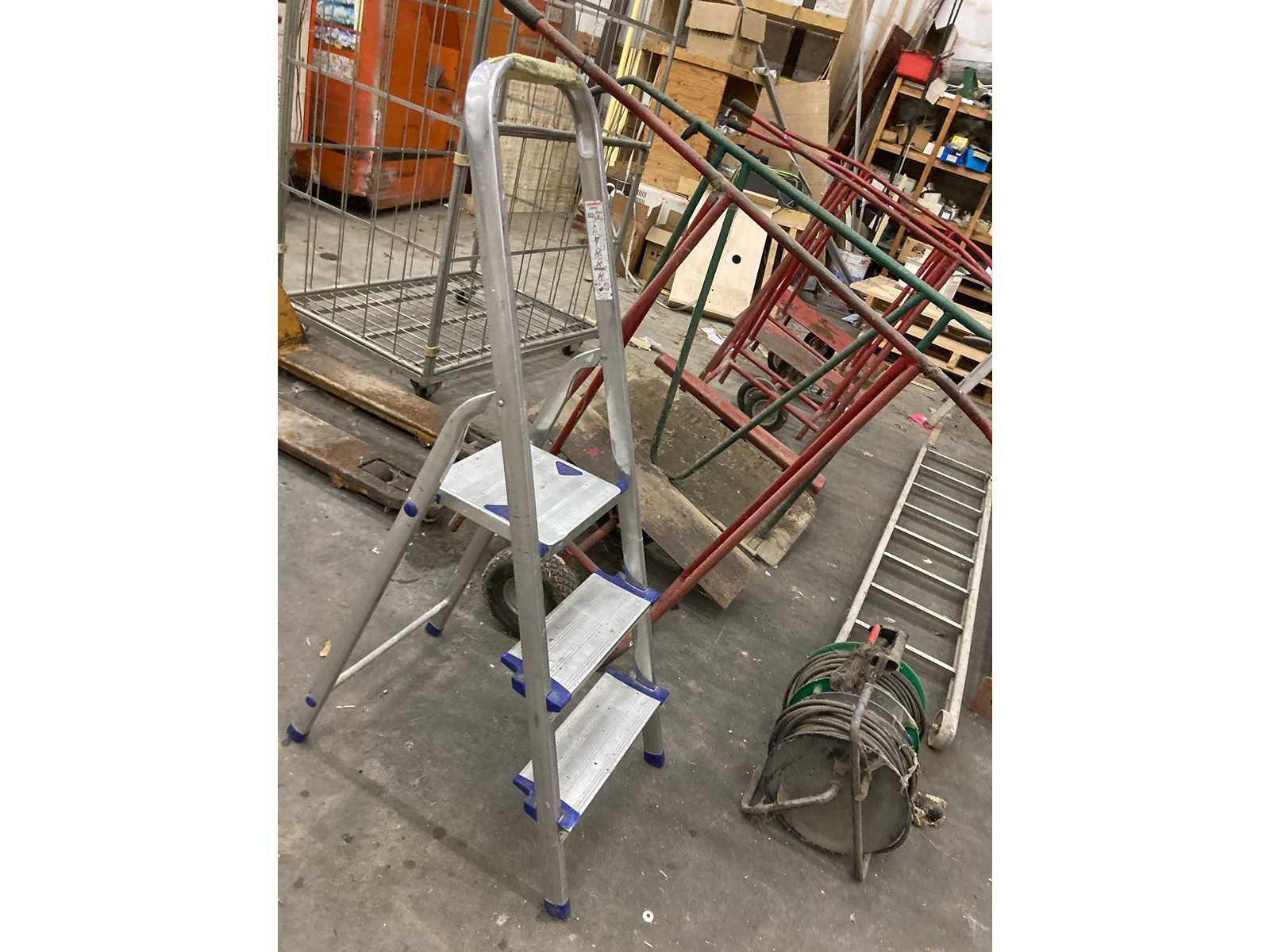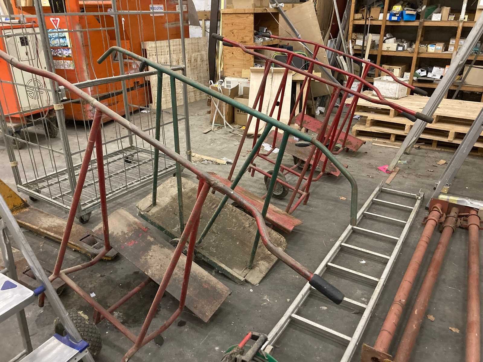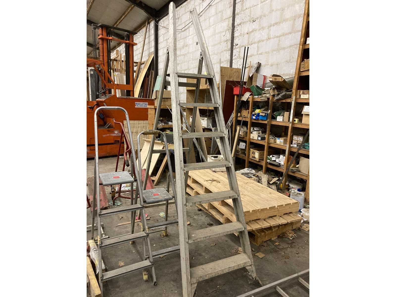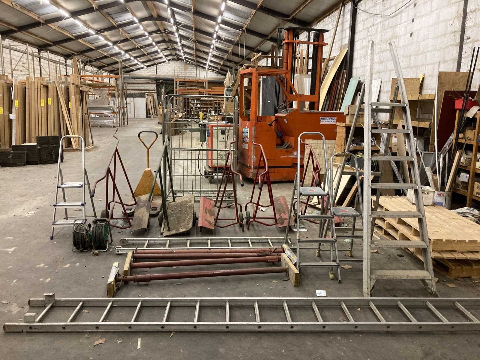 1x transpallet 5x panelen car 1x rolkar 2x kleine ladders 1x op zichzelf staande ladder 1x lange ladder (niet op zichzelf staande) 4x stutpalen 2x verlengkabels Nee