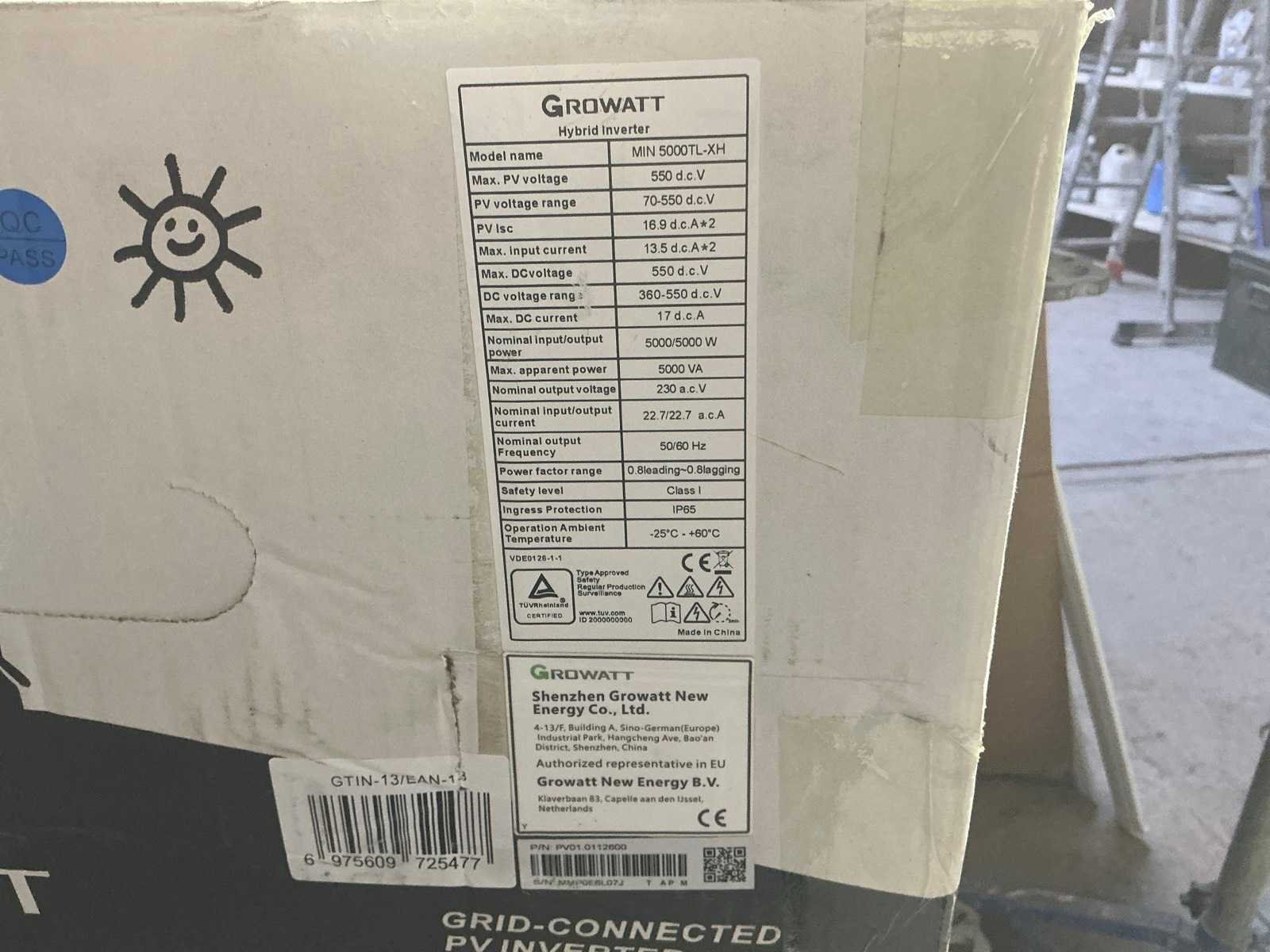 Waaronder Growatt MIN 5000TL-XH, Growat ARK2.5H-A1 en Growat ARK high voltage battery system Nee Merk: Growatt