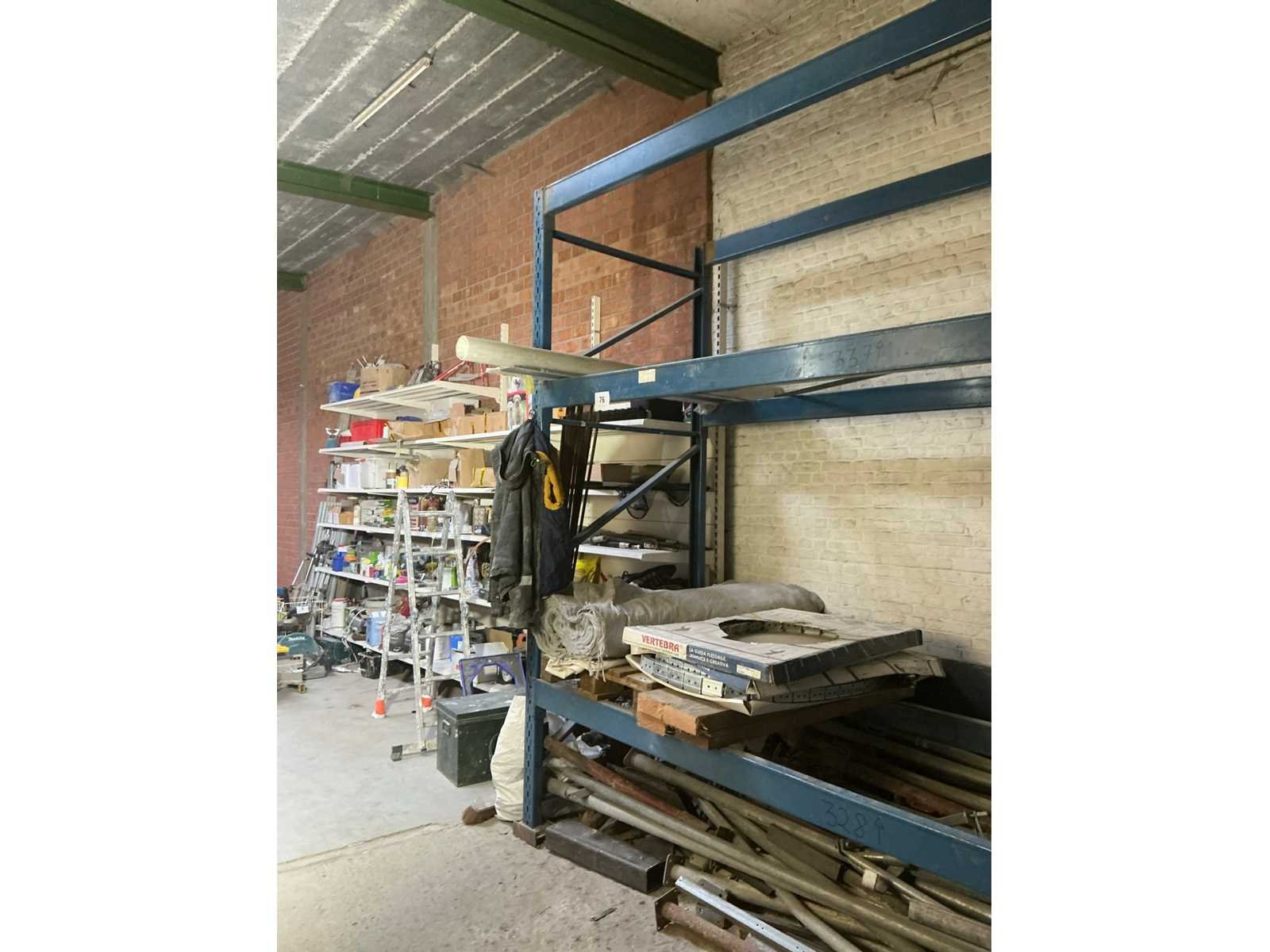 Door koper te demonteren. Met inhoud, in uitzondering van lot 70. Nee Aantal staanders: 2 Aantal liggers: 6 Lengte: 360cm Breedte: 120cm Hoogte: 305cm