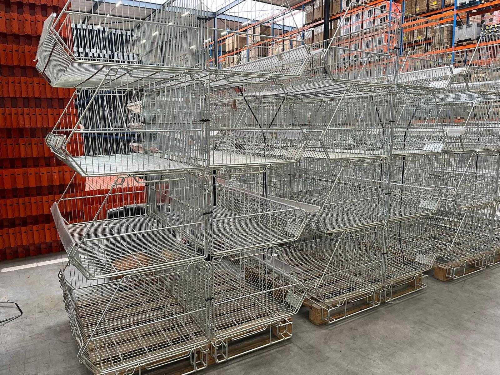 Draadmanden zijn stapelbaar; staal; let op; tussenschotjes kunnen ontbreken bij draadmand; er staan 8 draadmanden op 1 pallet; 8047 Nee Totale afmeting L: 680mm Totale afmeting Breedte: 1160mm Totale afmeting Hoogte: 480mm