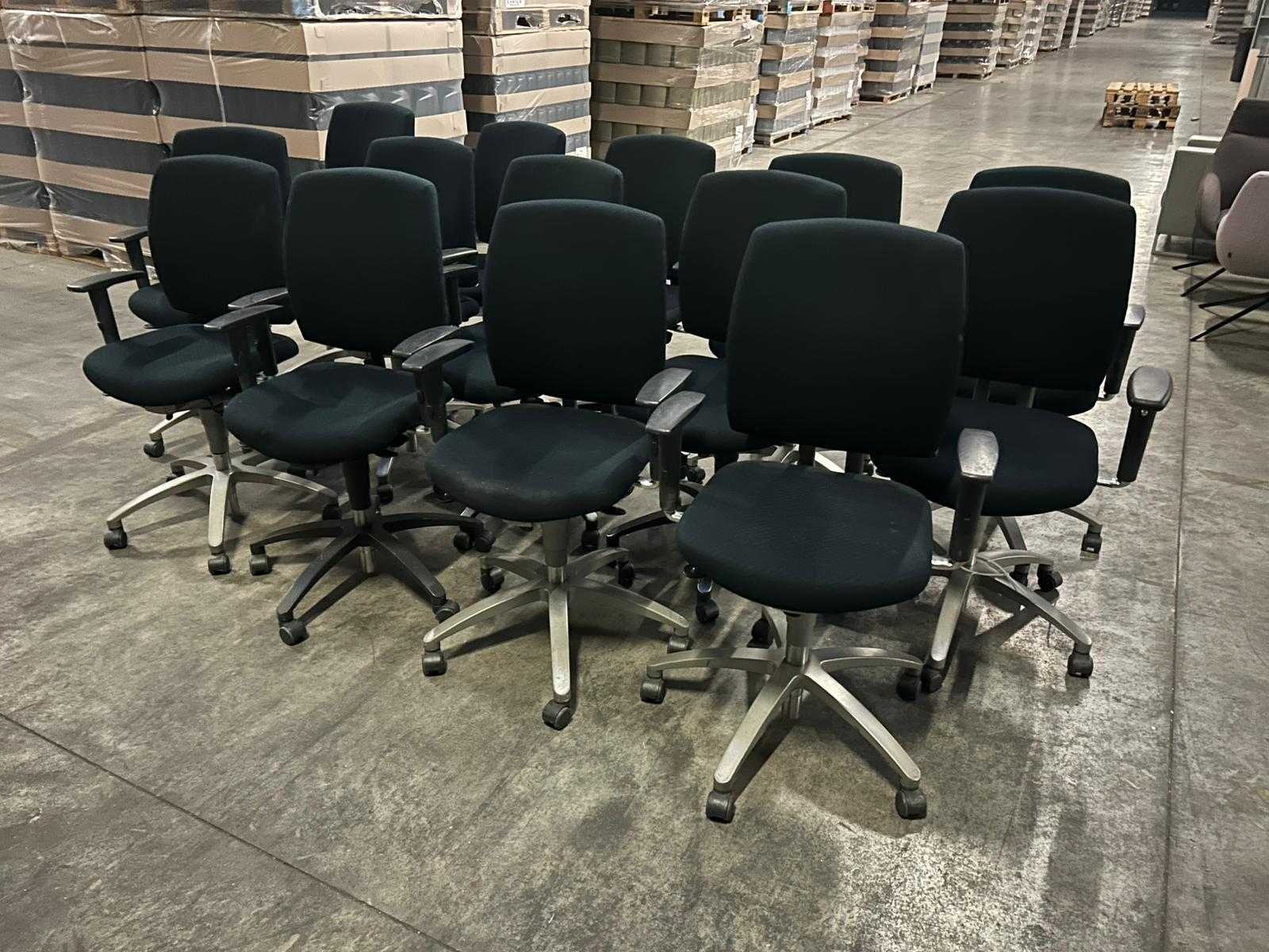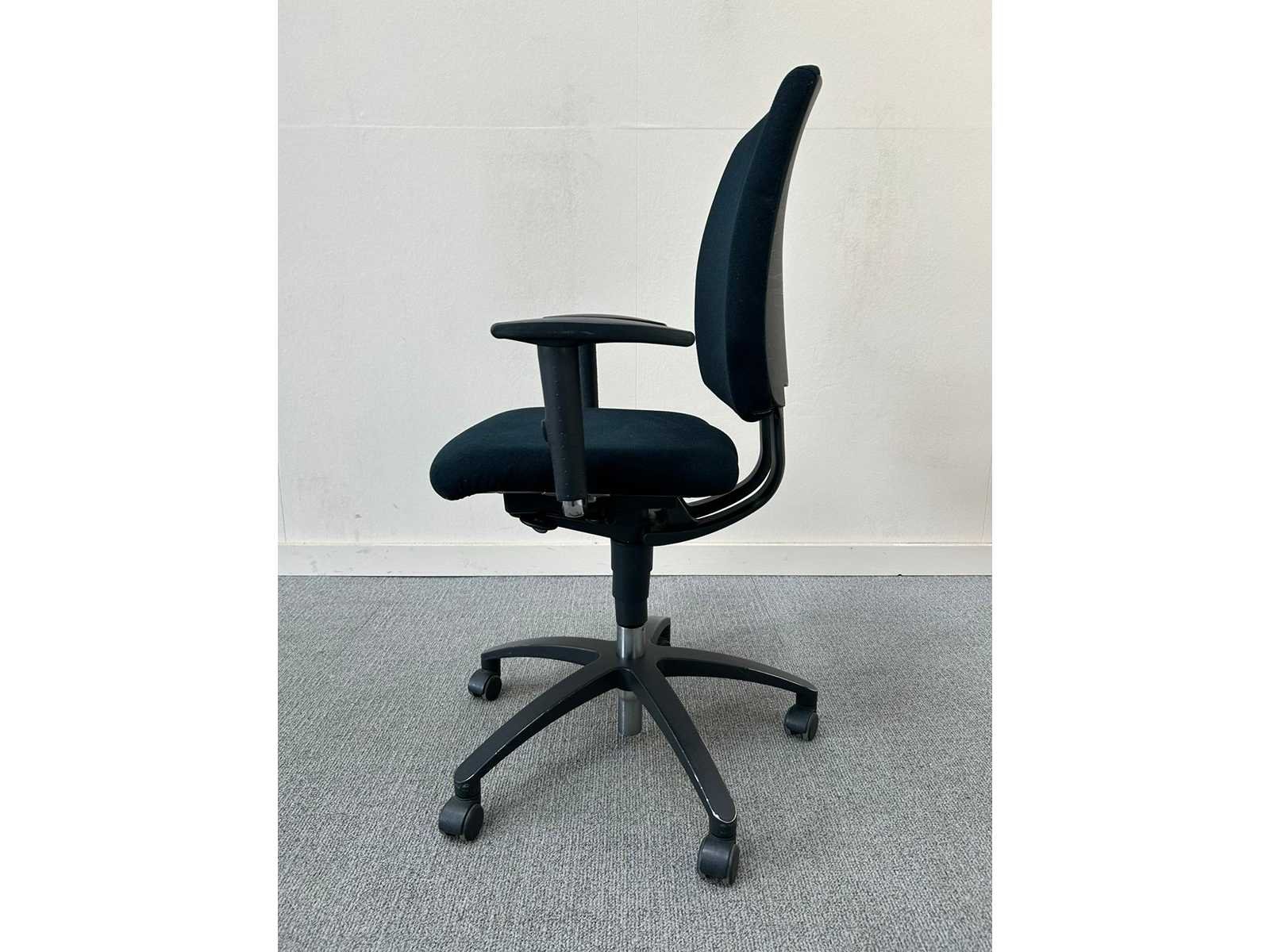 Kenmerk Omschrijving Type stoel Ergonomische bureaustoel met verstelbare armleuningen Zitting Stoffen bekleding, hoogteverstelbaar Rugleuning Gebogen ergonomische rug, kantelbaar, met kunststof achterzijde Armleuningen In hoogte verstelbaar Mechaniek Synchroonmechanisme met gewichtsregeling Onderstel 5-teens stervoet met wielen Wielen Dubbele softwielen geschikt voor tapijt of harde vloeren Hoogte stoel ca. 90–110 cm (instelbaar) Zithoogte ca. 42–55 cm Breedte ca. 65 cm Diepte ca. 65 cm Gewicht ±15 kg Gebruikte staat met gebruikssporen. Op de achterzijde van de rugleuning zijn enkele krassen zichtbaar (zie foto). Mechaniek functioneel, wielen en gasveer werken normaal. Nee Merk: DRABERT Type: Entrada Kleur: donker groen Gewicht: 20kg Materiaal: textiel