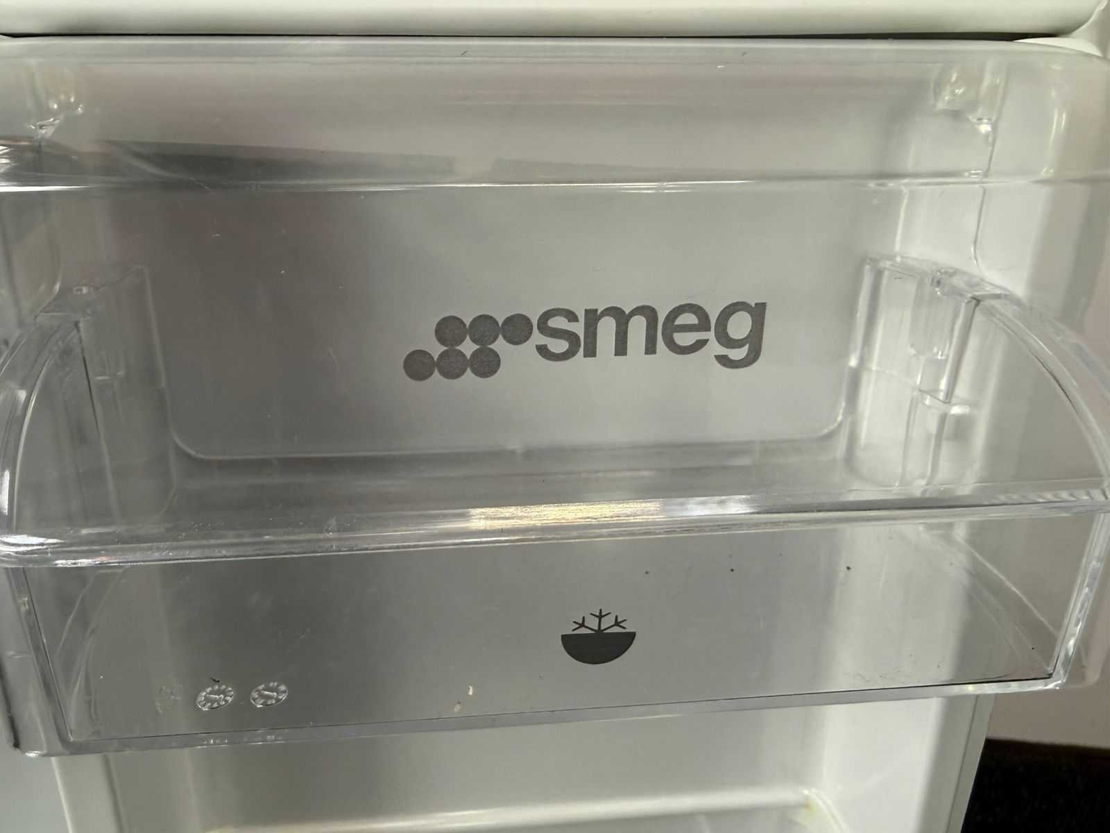 Compacte koelkast van het merk SMEG, uitgevoerd in wit. Geschikt als tafelmodel of voor plaatsing onder werkblad. Voorzien van glazen legplanken, groentelade en meerdere deurvakken. Ideaal voor kantoor, kitchenette, atelier of bijkeuken. Nee Merk: SMEG Model: tafelmodel Deur opent naar: rechts Lengte: 53cm Breedte: 53cm Hoogte: 87cm