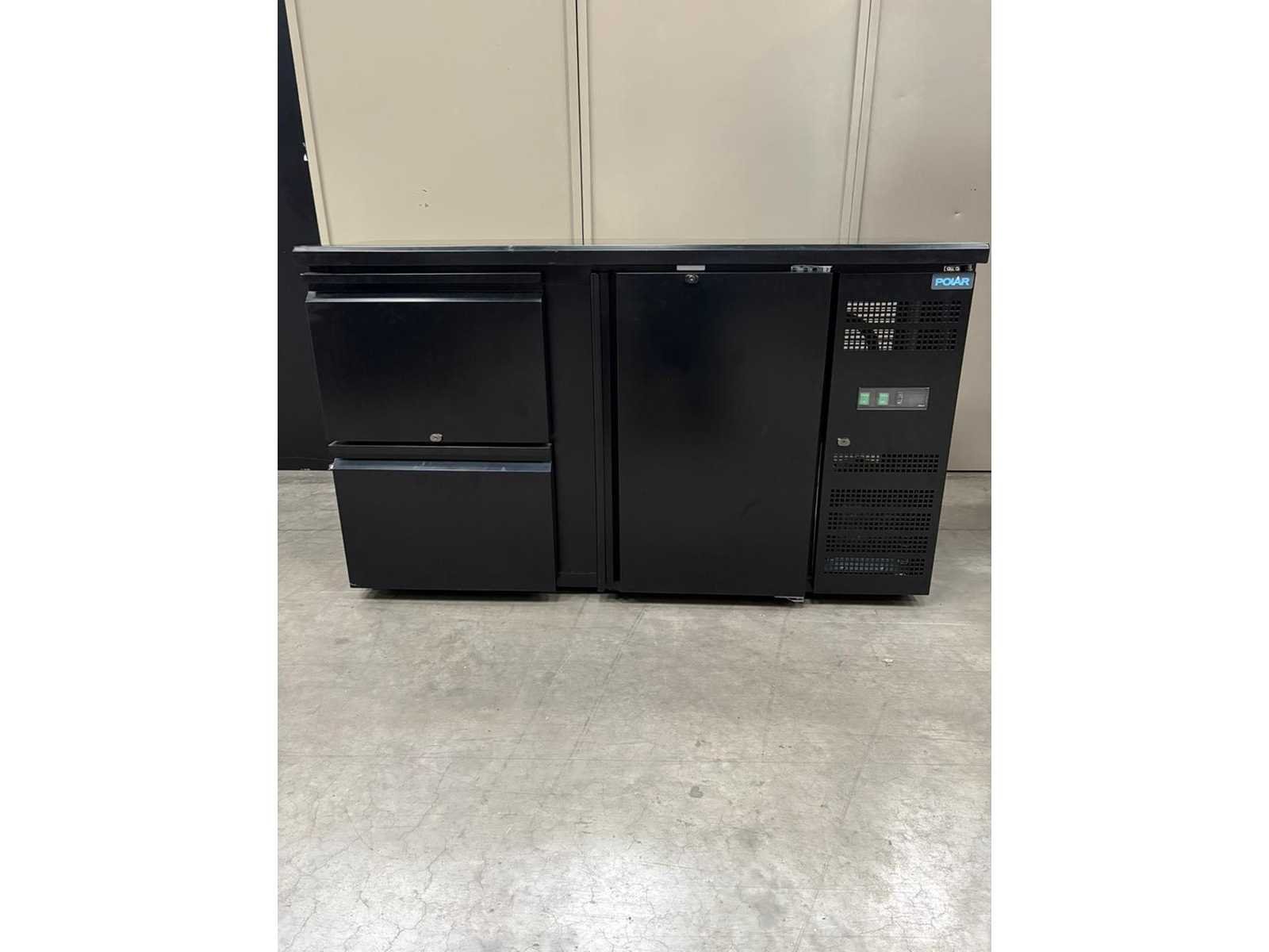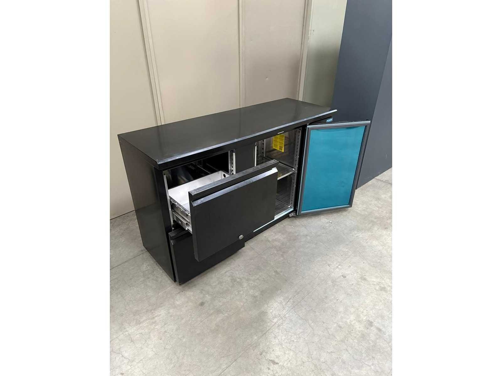 Professionele gekoelde werkbank van het merk POLAR, uitgevoerd in een zwarte behuizing met inox binnenzijde. De werkbank is voorzien van twee gekoelde lades, één gekoelde deur en een geïntegreerde koelunit aan de rechterzijde. Geschikt voor horeca- en bargebruik (voorbereiding en gekoelde opslag). Nee Merk: POLAR Type: GL186-E Lengte: 146cm Gewicht: 80 Breedte: 51cm Hoogte: 88cm