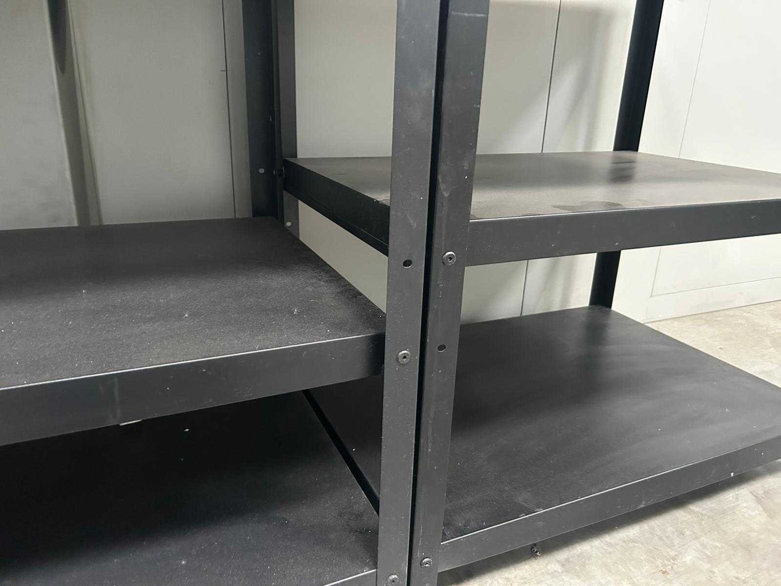 Set van 3 modulaire keukeneilanden in metalen frame-uitvoering met open legplanken. Eén module is uitgerust met een ingebouwde kraan en spoelgedeelte. (Afmetingen is per eiland), Met gebruikssporen, staat kan variëren per item. Nee Product type: Modulair keukeneiland Kleur: Zwart / Metaal Gewicht: 95kg Lengte: 61cm Breedte: 86cm Hoogte: 92cm Materiaal: Zwart Metaal