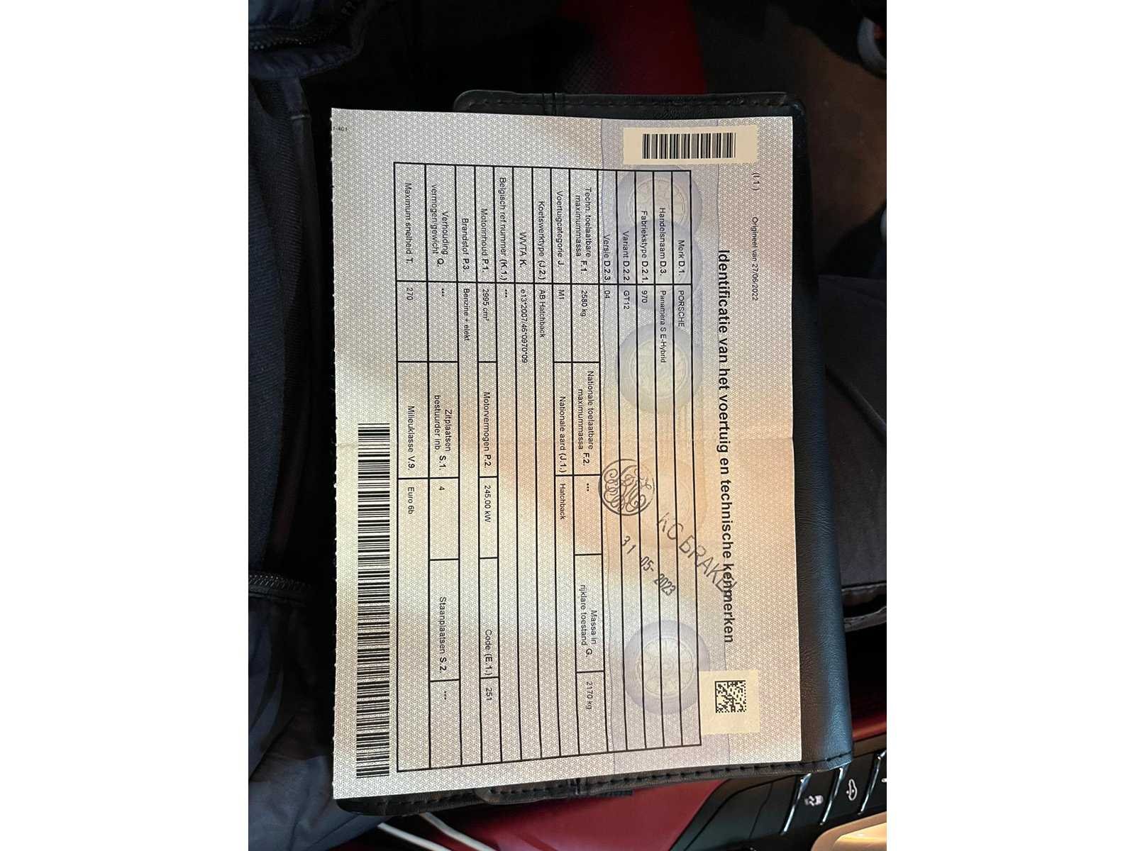 PORSCHE PANAMERA S * E-HYBRID (BENZINE + elektrische ) * 2995 cc 245 Kw 333 Cv (Thermique) * bouwjaar.: 01/2014 * 152491Kms Nee Merk: PORSCHE PANAMERA S Model: Panamera S Type: E-HYBRID Bouwjaar: 2014 Afgelezen kilometerstand: 152491km Cilinderinhoud: 2995cc Vermogen (kW): 245kW Brandstof: Benzine + elektrisch (plug-in hybrid) Chassisnummer: WP0JXGAA5EL5538101 Datum eerste toelating: 31-05-2013 Vermogen (pk): 333hp Aantal zitplaatsen: 4 Emissieklasse: 6b Aantal deuren: 5 Ledig gewicht: 2170kg Vavato voert geen technische keuring uit.: true Airconditioning: true Navigatie: true Xenon verlichting: true