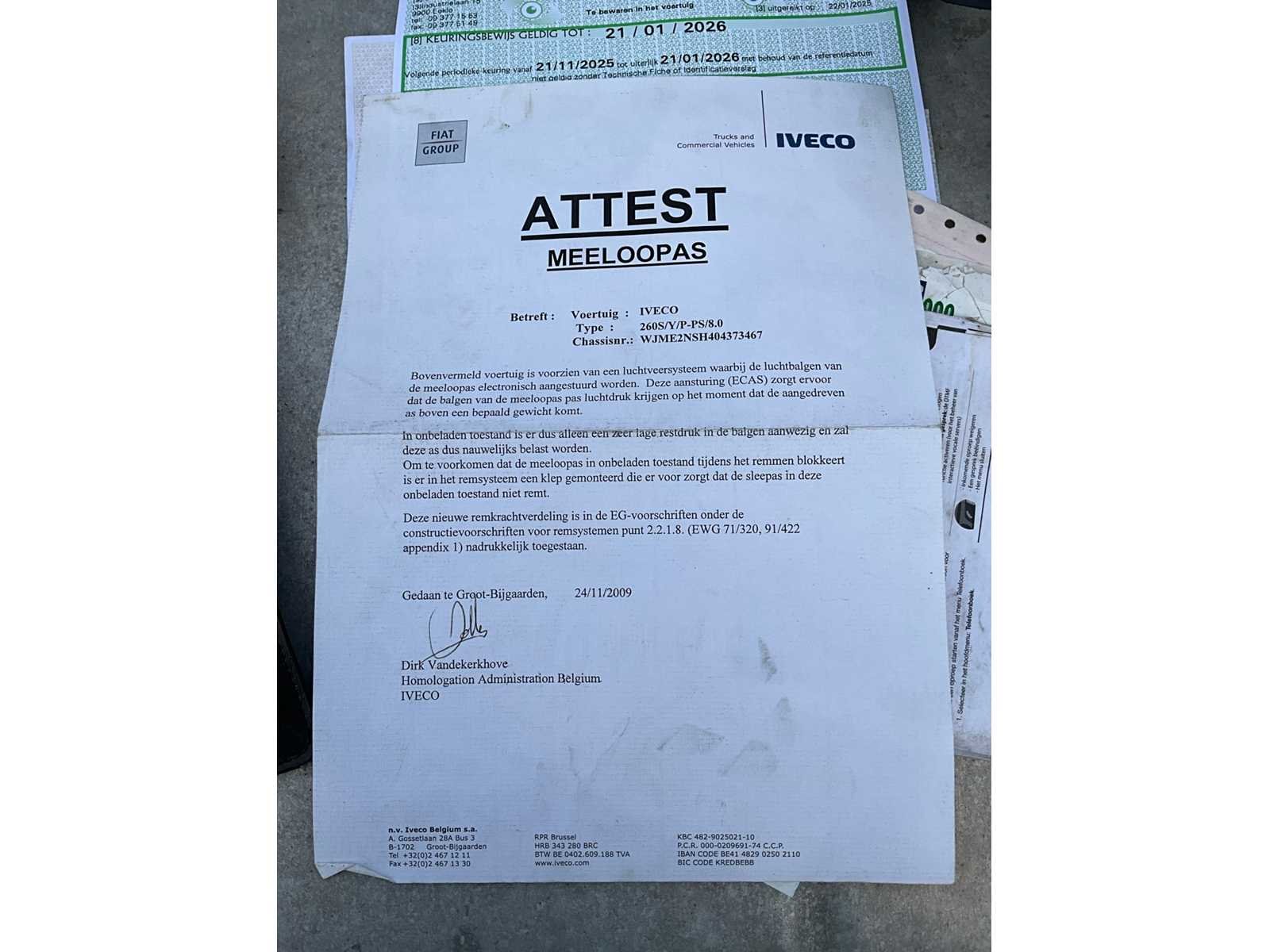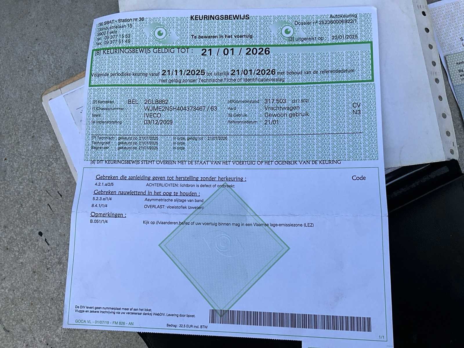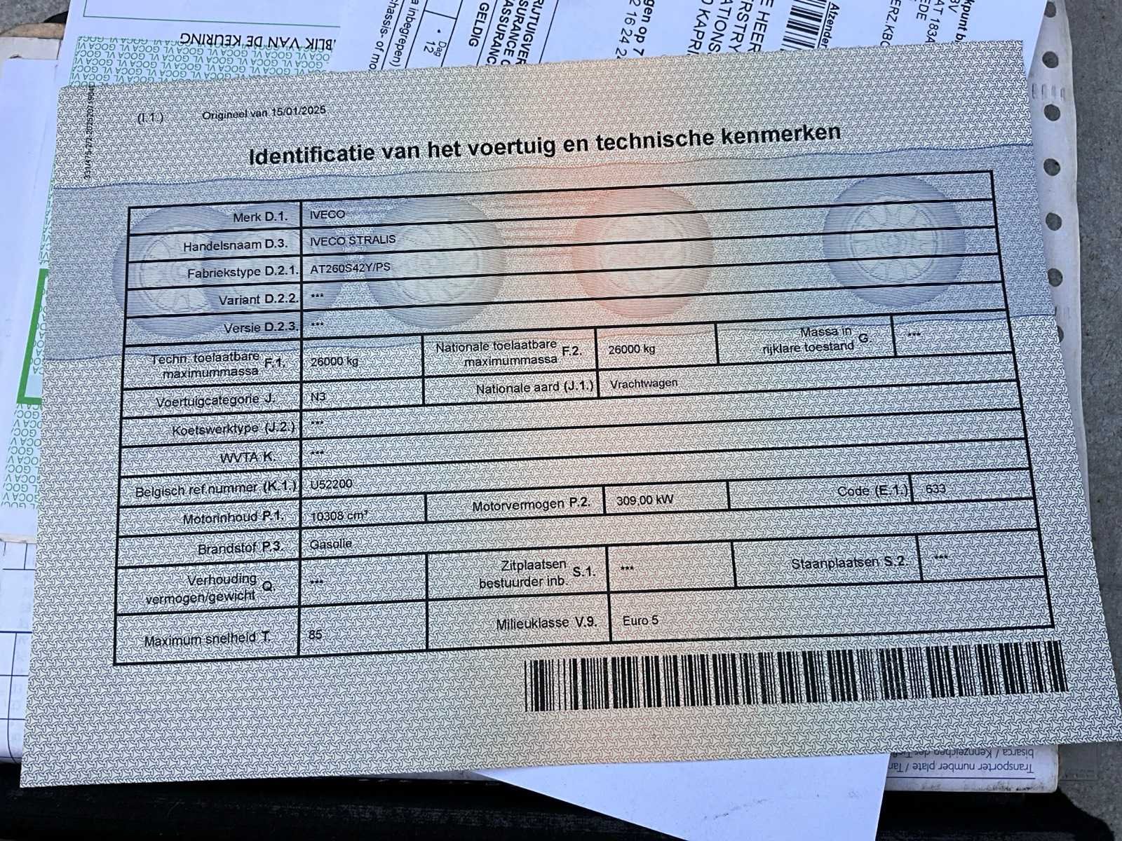 Mag 26 ton wegen. Alles in werkende staat. Cruise control, vertrager. Nee Merk: Iveco Type: Stralis Bouwjaar: 2009 Chassisnummer VIN: WJME2NSH404373467 Cilinderinhoud: 10308cc Kilometerstand bij opname: 322854km Datum eerste toelating: 03/12/2009 Startinformatie: Start en rijdt Afgelezen kilometerstand: 322852km Nationaliteit documenten: Belgisch