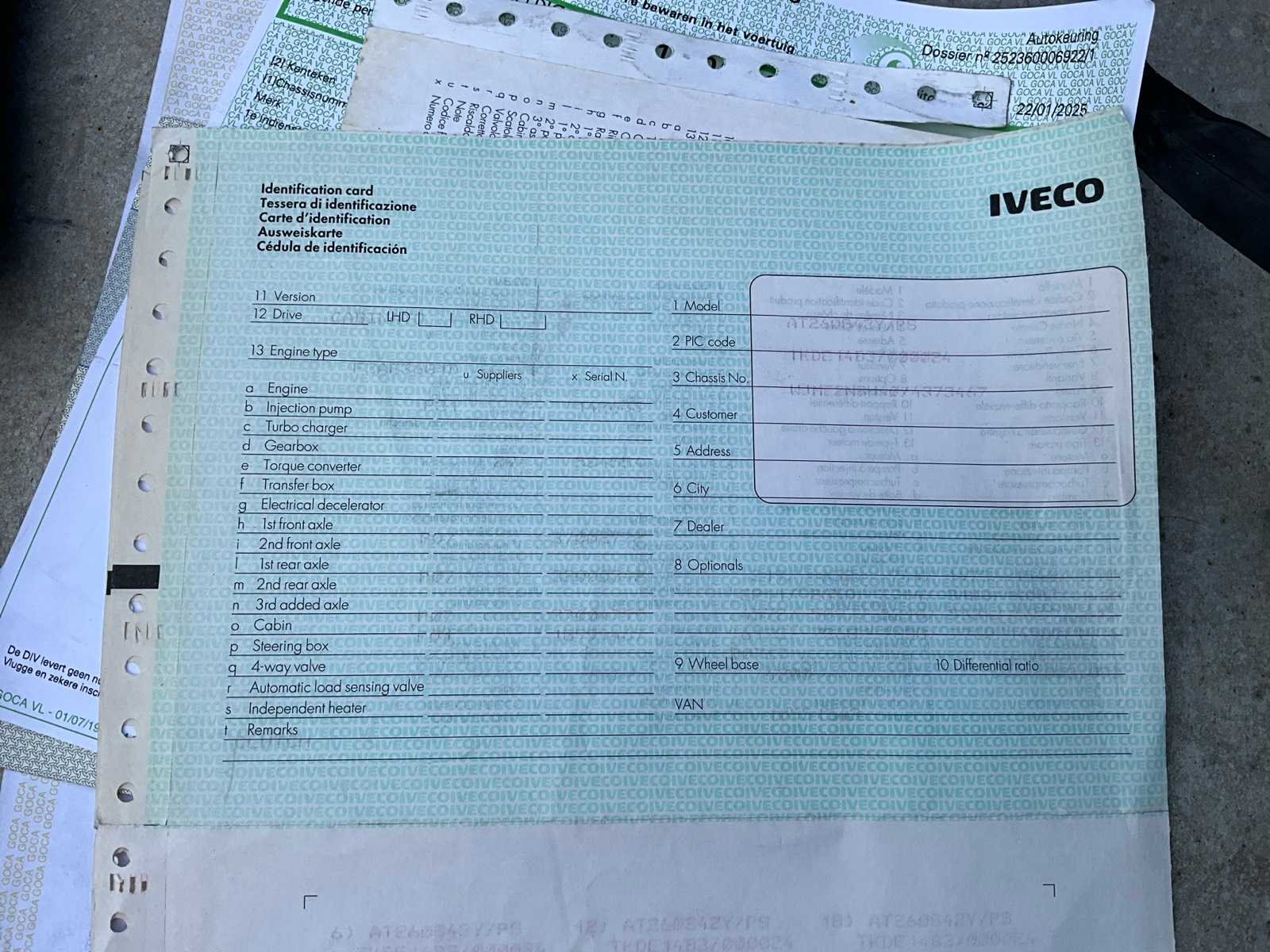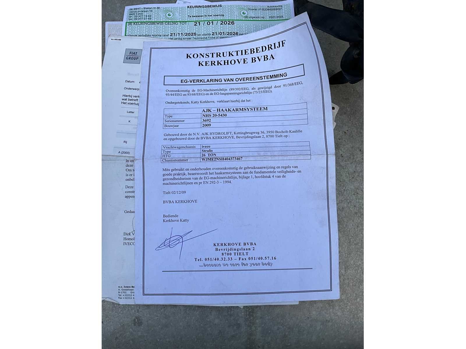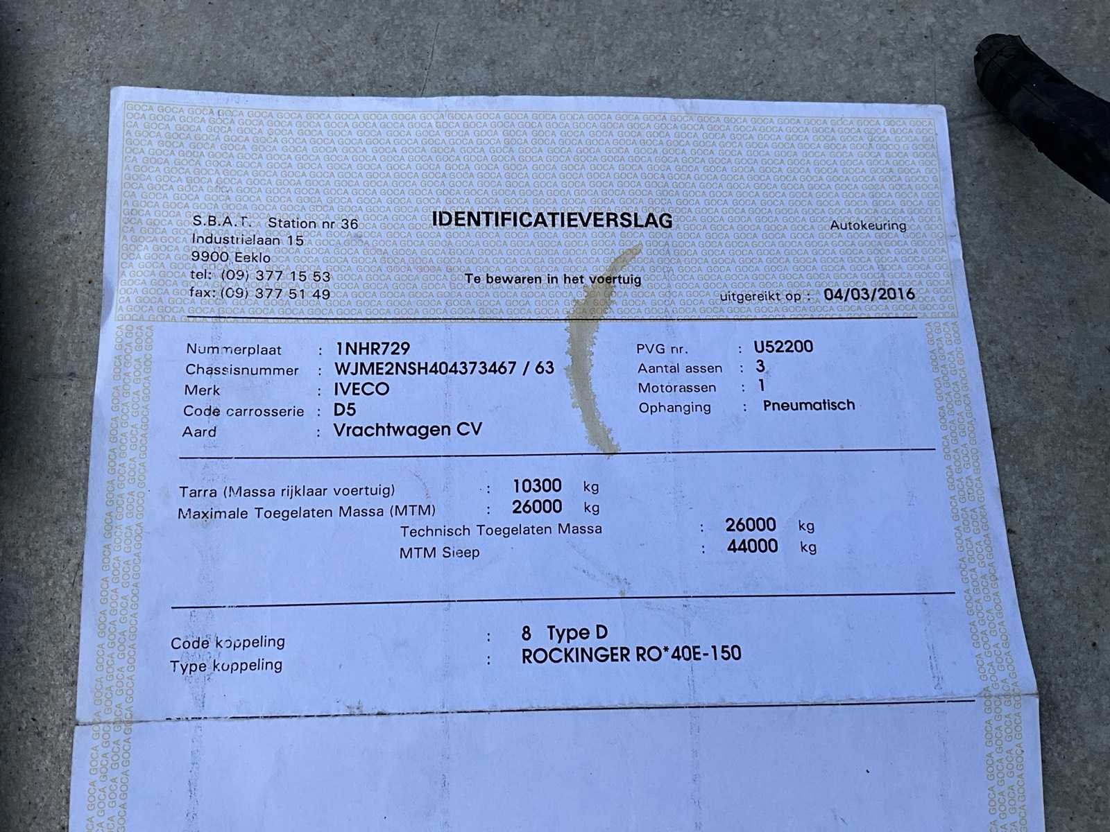 Mag 26 ton wegen. Alles in werkende staat. Cruise control, vertrager. Nee Merk: Iveco Type: Stralis Bouwjaar: 2009 Chassisnummer VIN: WJME2NSH404373467 Cilinderinhoud: 10308cc Kilometerstand bij opname: 322854km Datum eerste toelating: 03/12/2009 Startinformatie: Start en rijdt Afgelezen kilometerstand: 322852km Nationaliteit documenten: Belgisch