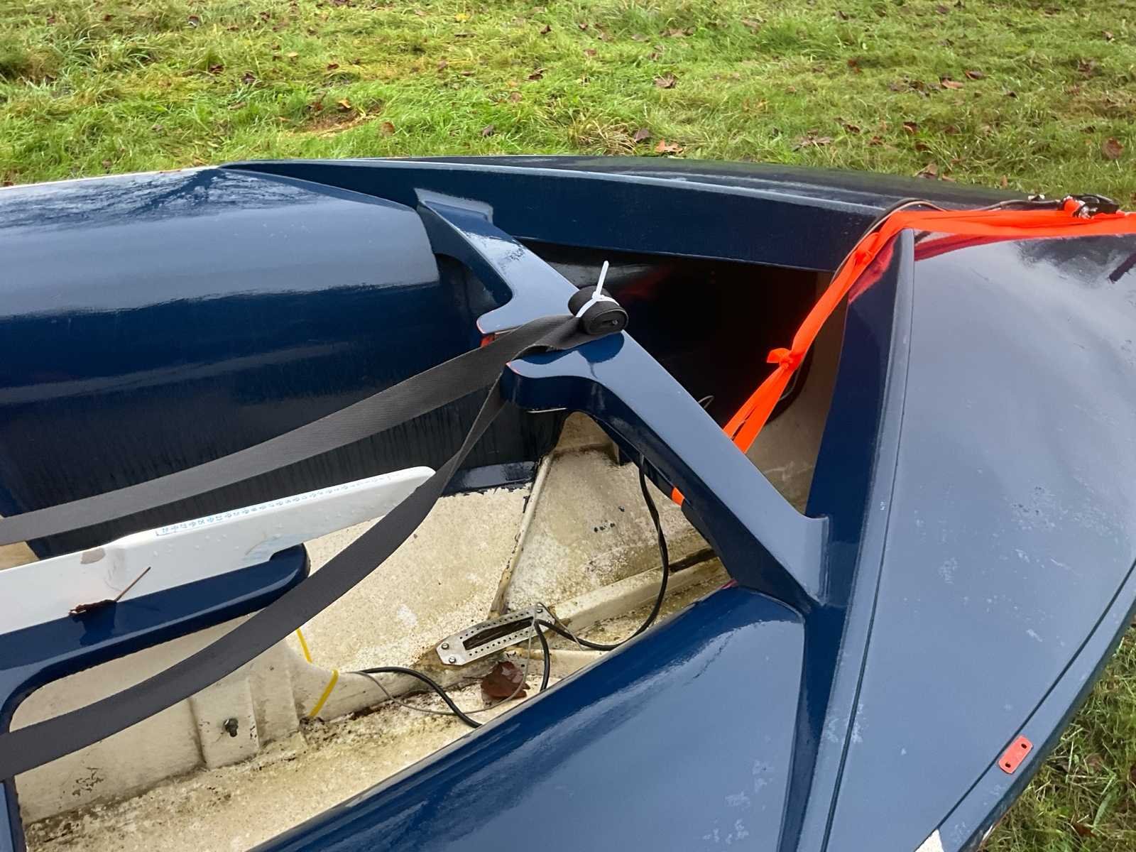 BOOT — TECHNISCHE INFO (geschat op basis van foto’s) • Type: Kleine zeilboot / polyester open zeilboot • Kleur: Wit met blauw dek • Lengte: ± 4,5 – 5,0 meter • Breedte: ± 1,5 meter • Materiaal: Polyester • Staat: • Romp volledig aanwezig • Enkele krassen / gelcoat schade zichtbaar • Geen zichtbare scheuren in romp • Oppervlakkige verwering door buitenstaan • Binnenkant algemeen oké No