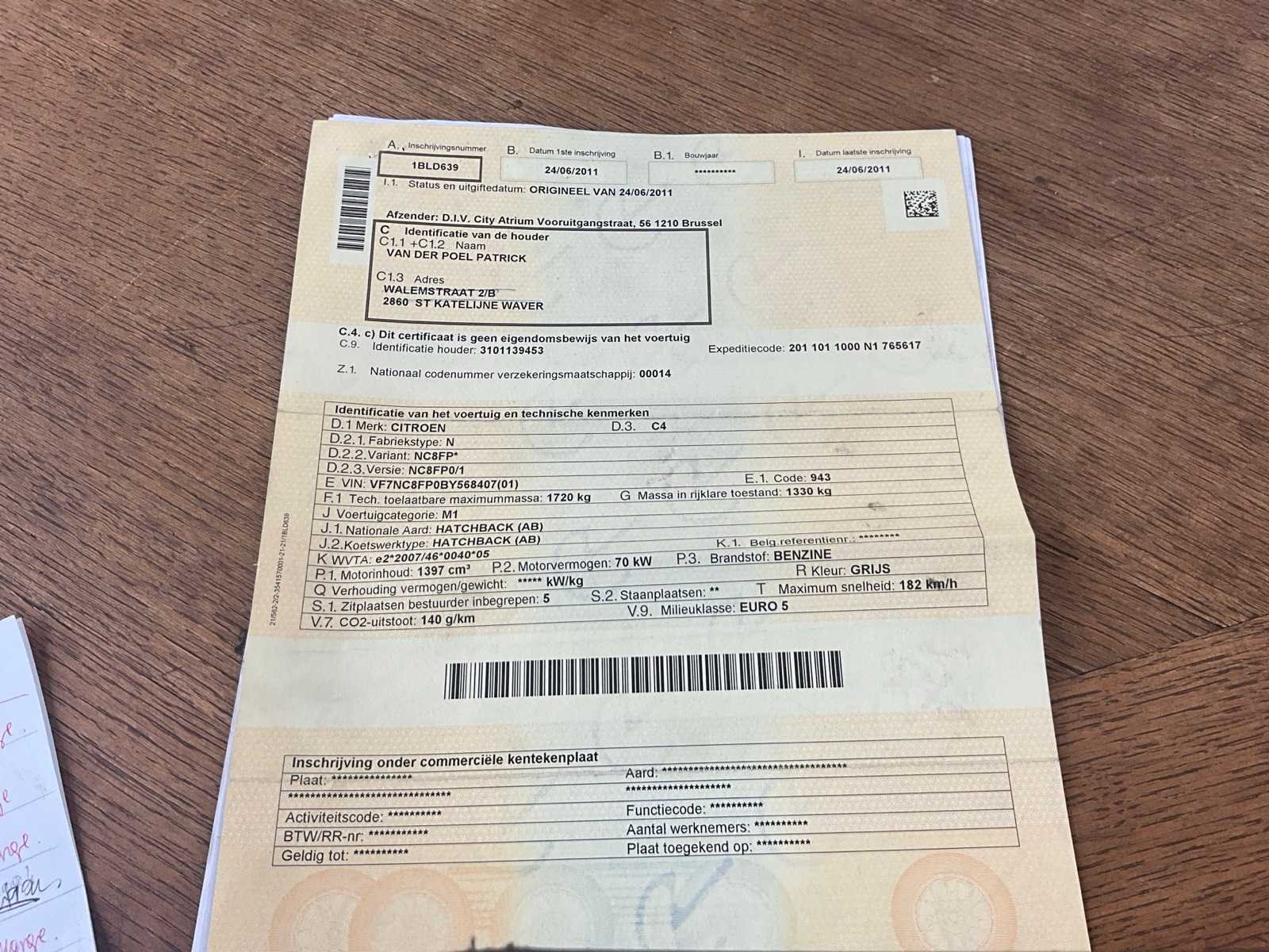 No Merk: Citroën Model: C4 Bouwjaar: 2011 Chassisnummer: 568407