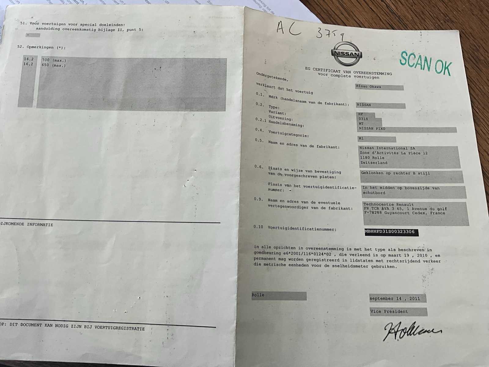 Nee Merk: Nissan Model: Pixo Bouwjaar: 2011 Chassisnummer: 323306