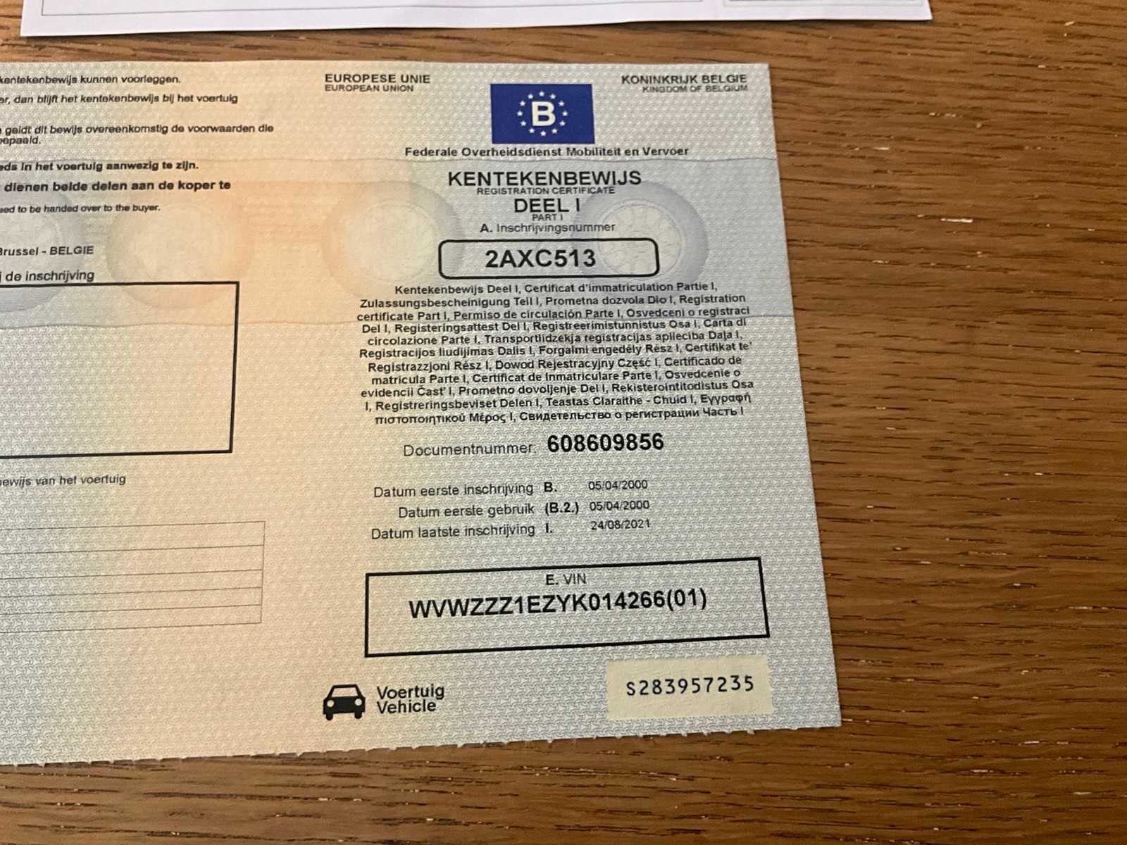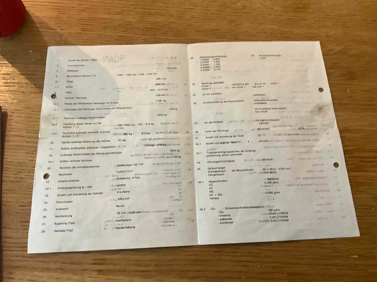 ⚙️ Technische gegevens: Merk: Volkswagen Model: Golf Koetswerktype: Cabriolet Brandstof: Benzine Motorinhoud: 1781 cc Vermogen: 55 kW (75 pk) Euronorm: Euro 4 Bouwjaar: 2000 Datum eerste inschrijving: 05/04/2000 Chassisnummer (VIN): WVWZZZ1EZYK014266 Inschrijvingsnummer: 2AXC513 Aantal zitplaatsen: 4 Kleur: Donkergroen (af fabriek Gölf Cabriolet) Documenten aanwezig: ✅ Inschrijvingsbewijs ✅ Identificatiebewijs ✅ Gelijkvormigheidsattest (origineel Volkswagen AG) No Merk: Volkswagen Model: Golf Type: Cabriolet Bouwjaar: 2000 Vermogen (kW): 55kW Brandstof: benzine Chassisnummer: WVWZZZ1EZYK014266 Vermogen (pk): 75hp Aantal zitplaatsen: 4 Transmissie: manueel Stuurwiel: links Emissieklasse: 4 Aantal deuren: 3 Aantal sleutels: 1 Start en rijdt: ja Vavato voert geen technische keuring uit.: true Inschrijvingsbewijs - deel 1 : Aanwezig Inschrijvingsbewijs - deel 2: Aanwezig