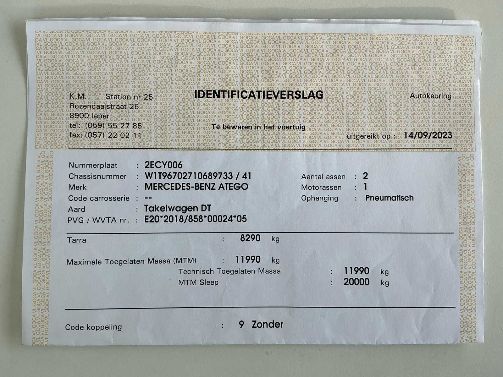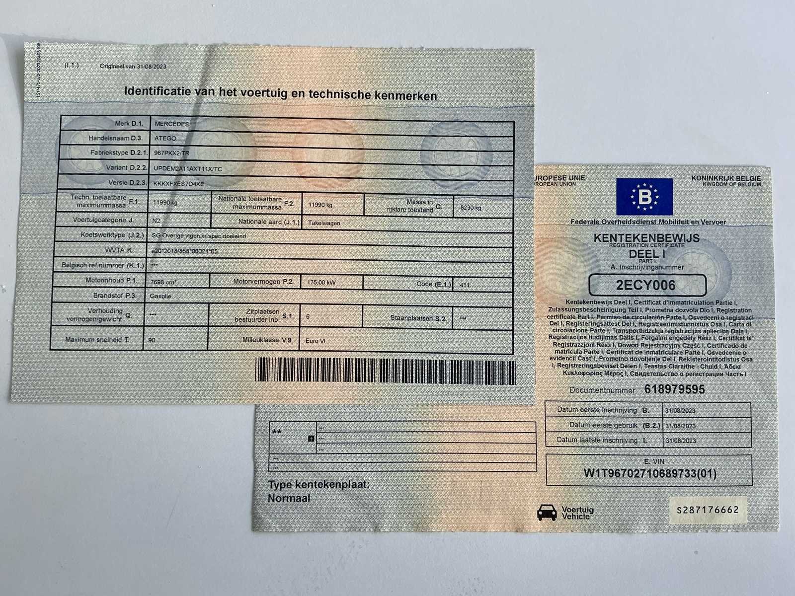- 6 persoons cabine! - Luchtvering achteraan - 2digitale sleutels aanwezig + Add blue sleutelset + handmatige sleutelset No Merk: Mercedes Type: Atego Bouwjaar: 2023 Chassisnummer VIN: W1T96702710689733 Cilinderinhoud: 7698cc Kilometerstand bij opname: 117700km Datum eerste toelating: 31/08/2023 Type transmissie: Automatisch Aantal assen: 1 Fuel Type: Diesel Laadvermogen: 3700kg Aantal sleutels: 2 Emissieklasse: Euro 6 Eigen gewicht: 8290kg Startinformatie: Start, rijdt, remt Afgelezen kilometerstand: 117700km Nationaliteit documenten: BE Kentekenpapieren compleet?: true Aantal zitplaatsen: 6 Automaat: true Diesel: true